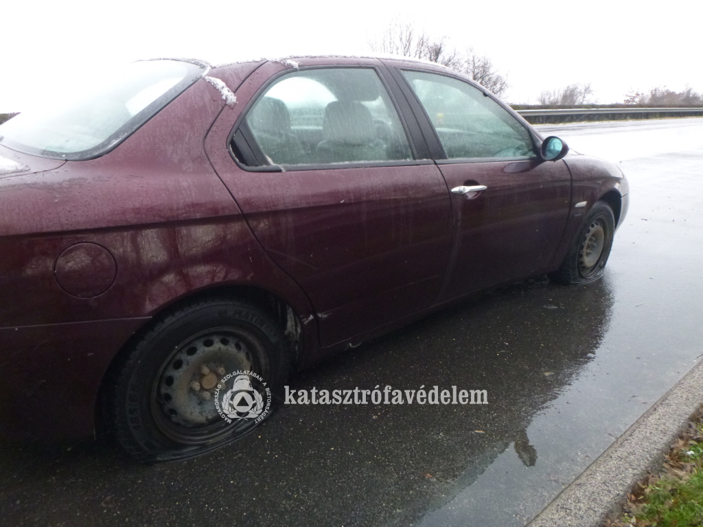 Árokba csapódott egy személyautó péntek este a 65-ös főúton, Ádándnál. A baleset helyszínén négy kamion elakadt és mintegy negyven személyautó feltorlódott. A siófoki hivatásos tűzoltók az út szélén elhelyezett érdesítőanyagot az úttestre szórták, közreműködésükkel a legtöbb jármű folytatni tudta az útját. Egy élőállatokat szállító kamion azonban lesodródott az útról, így annak mentése kéziszerszámokkal lehetetlen volt. Kamionmentő segítségét kellett igénybe venni, amely kivontatta a szerelvényt az árok széléről, megszüntetve ezzel a forgalmi akadályt. Eközben az árokba csúszott személyautót is sikerült a hó fogságából kiszabadítani. Senki sem sérült meg az eset során.