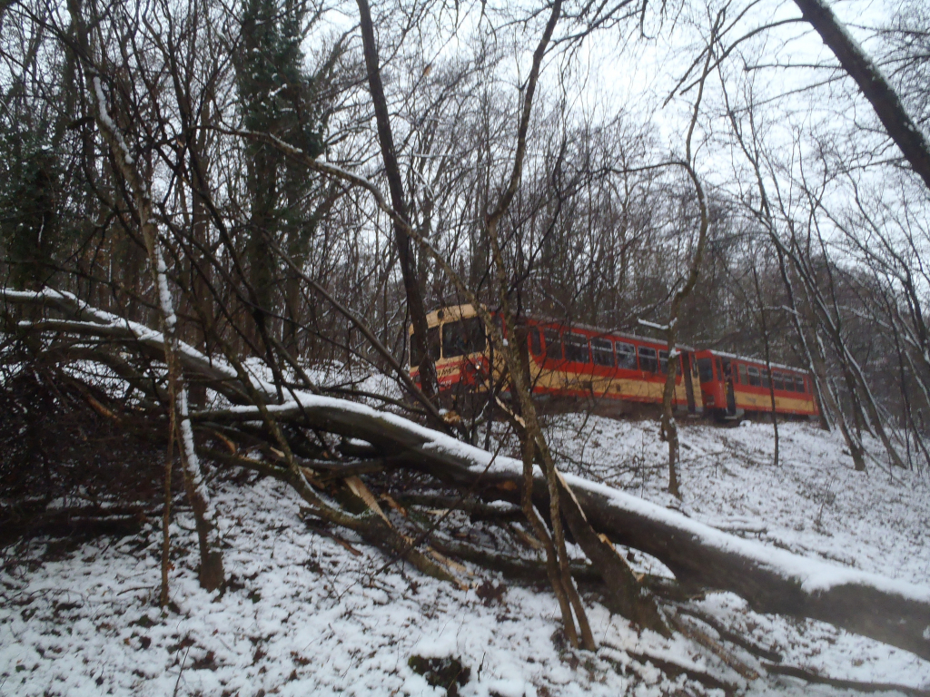 Az eddei elágazásnál egy menetrend szerint közlekedő autóbusz fordult keresztbe vasárnap reggel. A KÖTÉL Egyesület tűzoltói csörlővel mentették ki a járművet a hó fogságából, az utasokat pedig mentesítő járat szállította tovább.