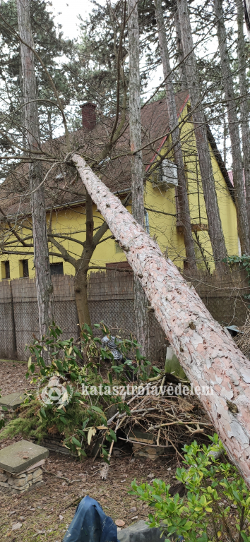 Háztetőre dőlt egy fenyő péntek délelőtt Siófok, Ady Endre utcájában. A város hivatásos tűzoltóinak segítségét kérték a fa eltávolításához. Az egység motorfűrésszel rövid idő alatt ledarabolta a tizenkét méter magas fenyőt, amely tenyérnyi sérüléseket okozott a tetőn.