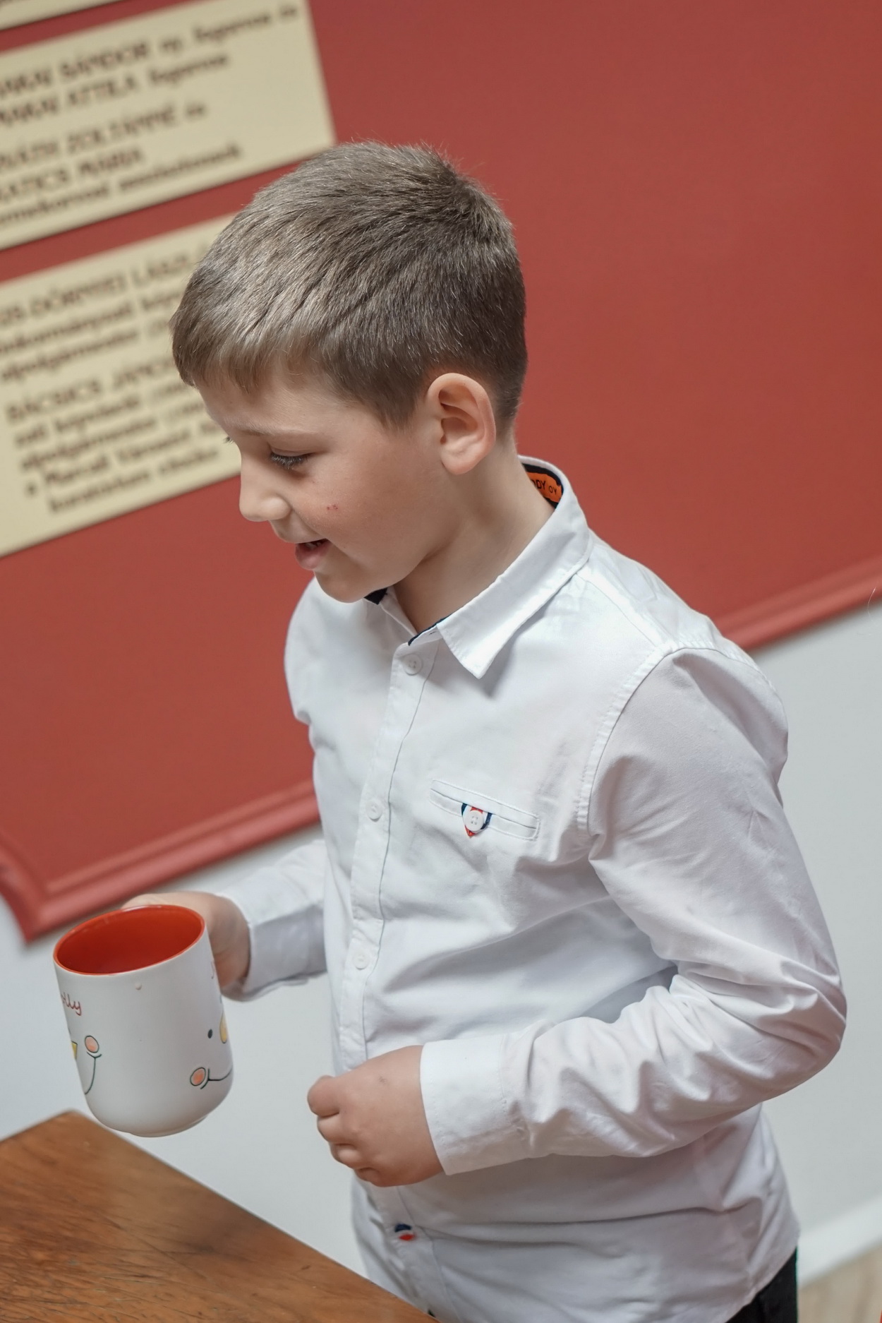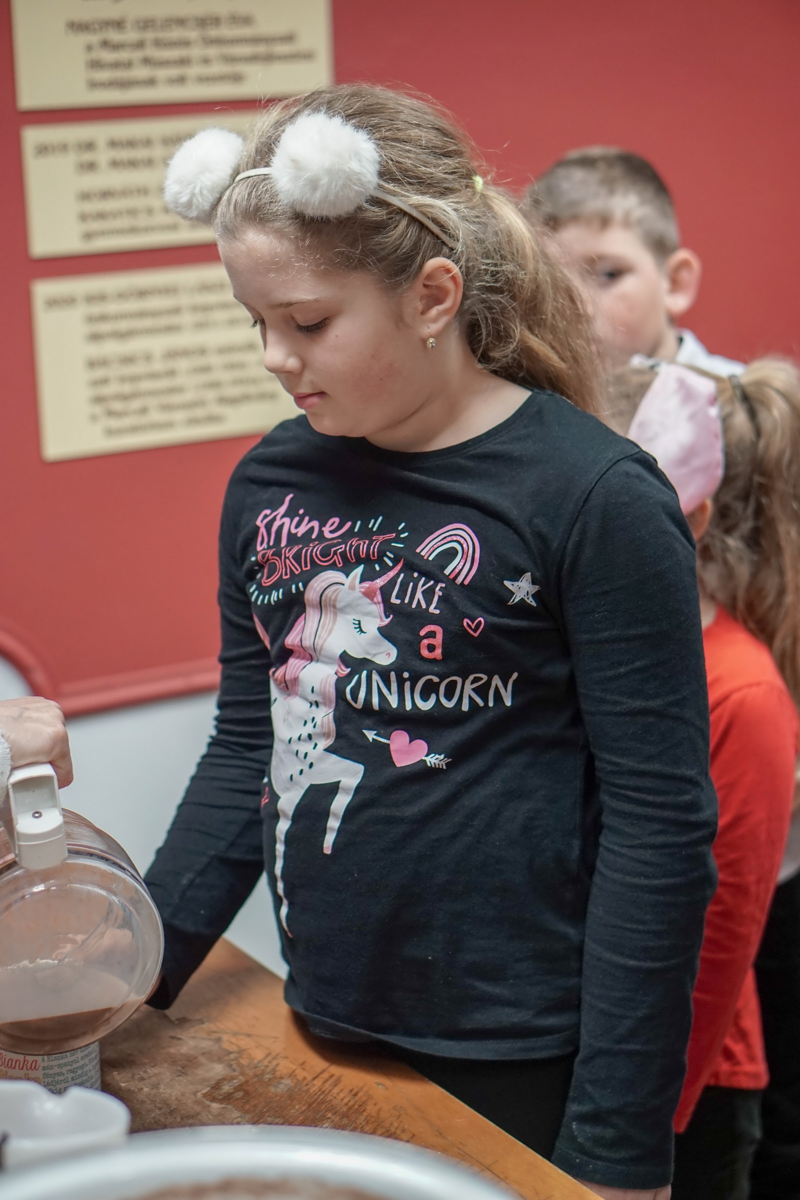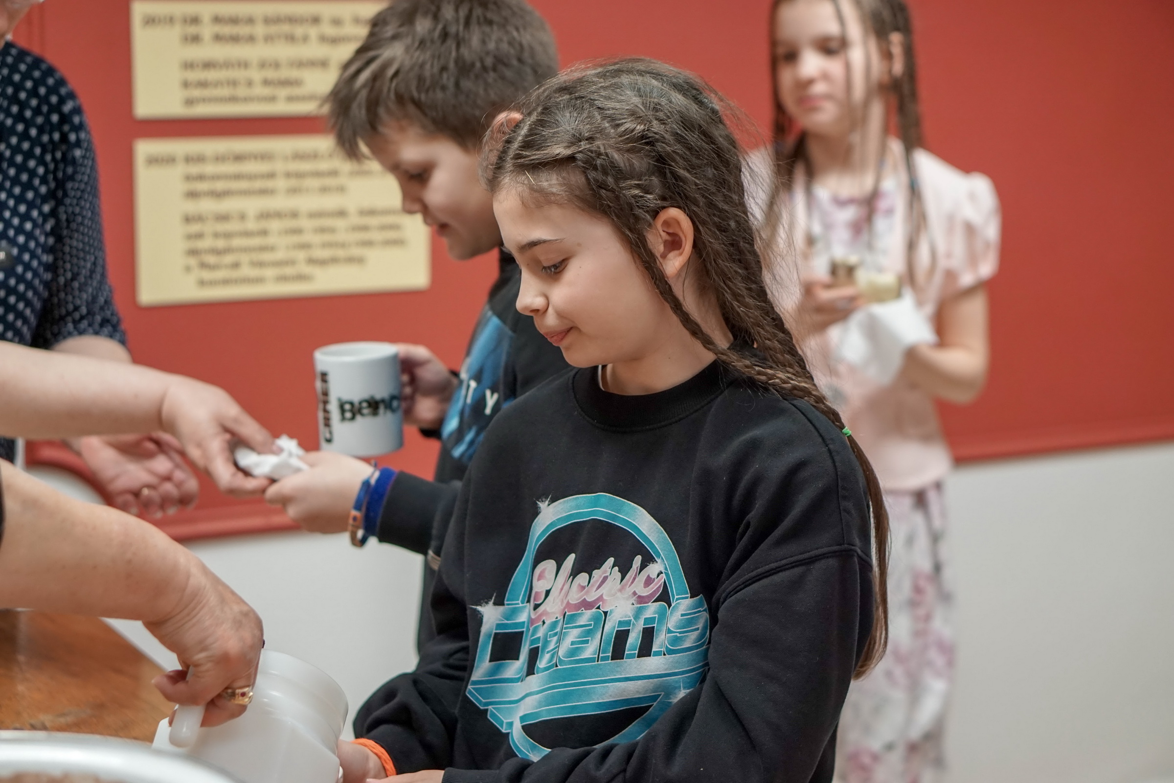 A rövid hangszerbemutató után hagyományosan kakaóval és kaláccsal vendégelték meg az érdeklődő gyermekeket.