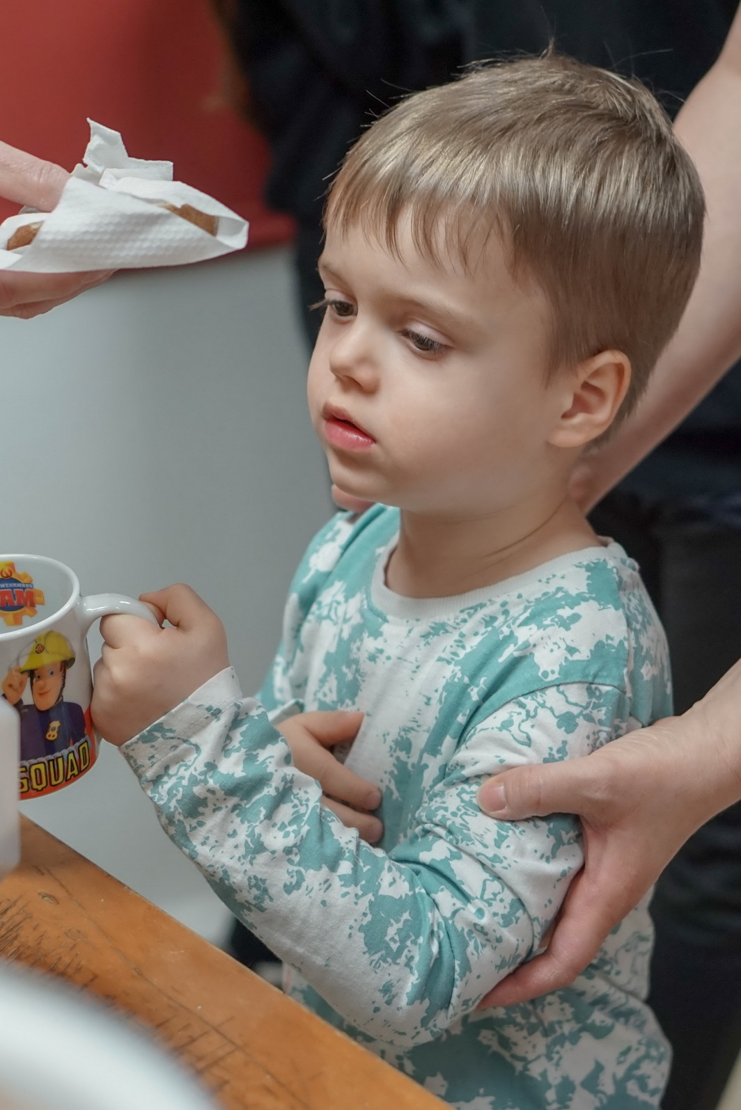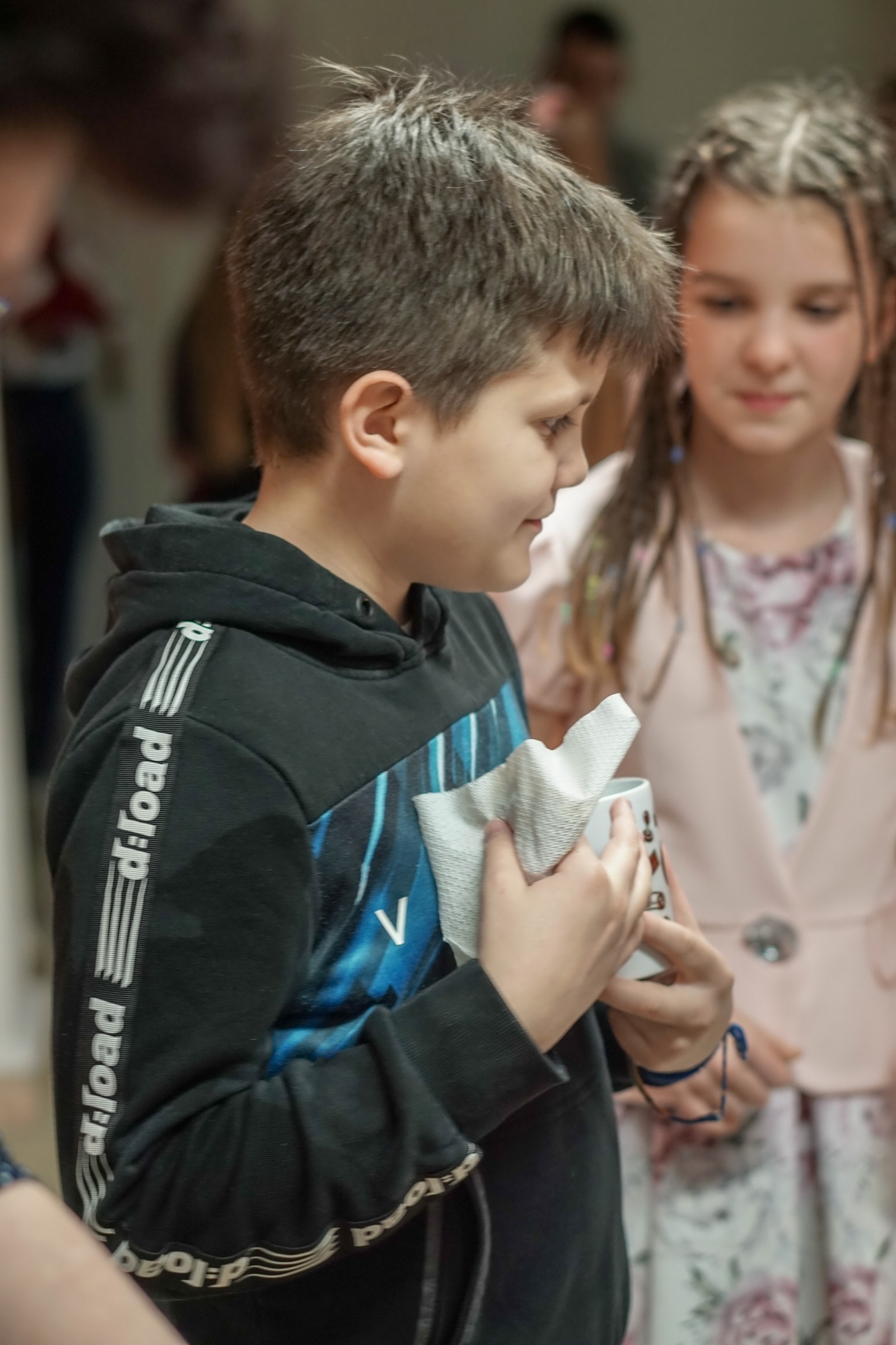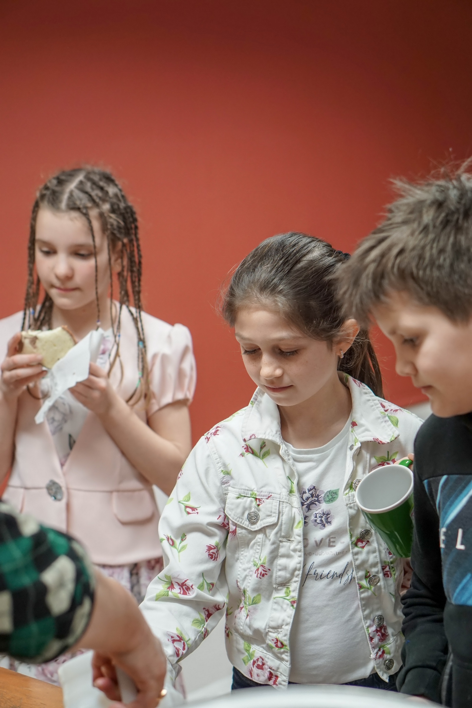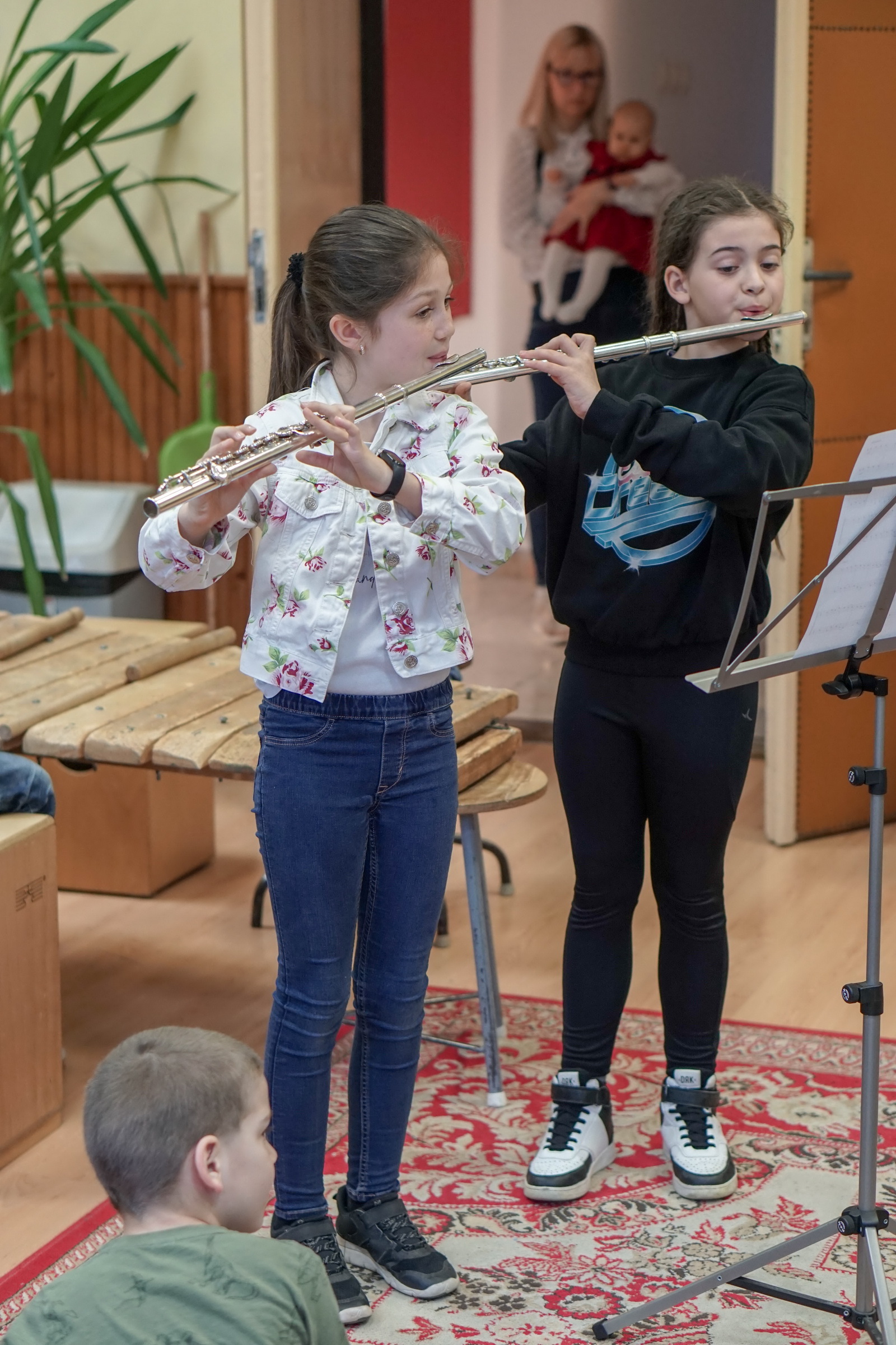 A rövid hangszerbemutató után hagyományosan kakaóval és kaláccsal vendégelték meg az érdeklődő gyermekeket.