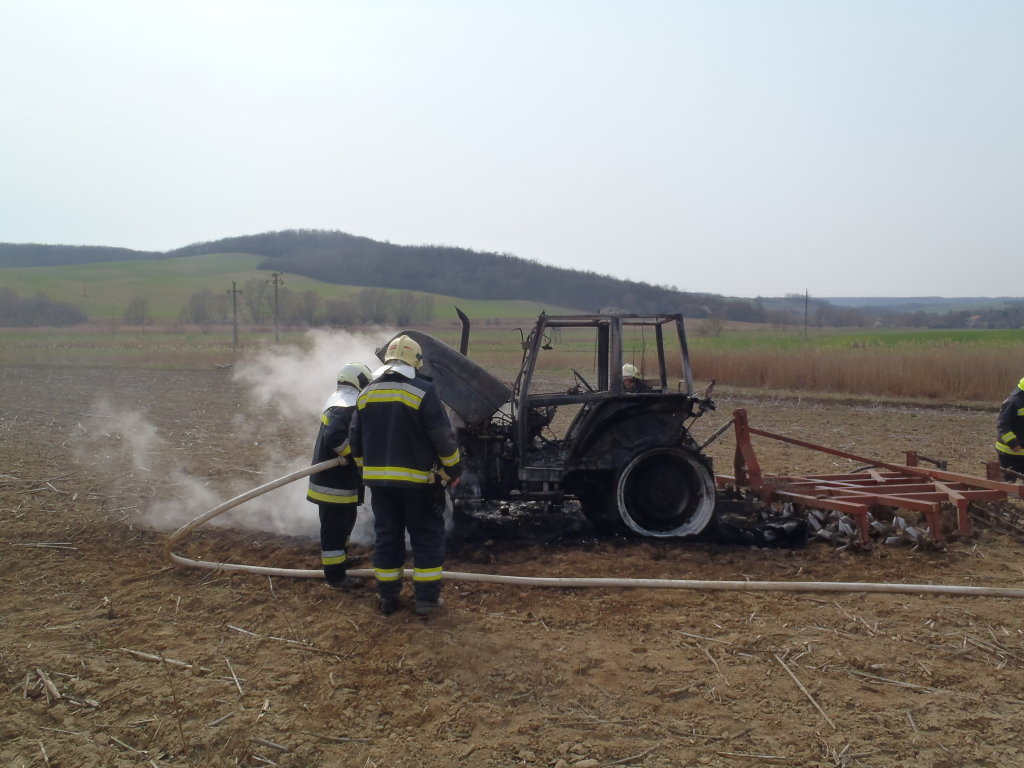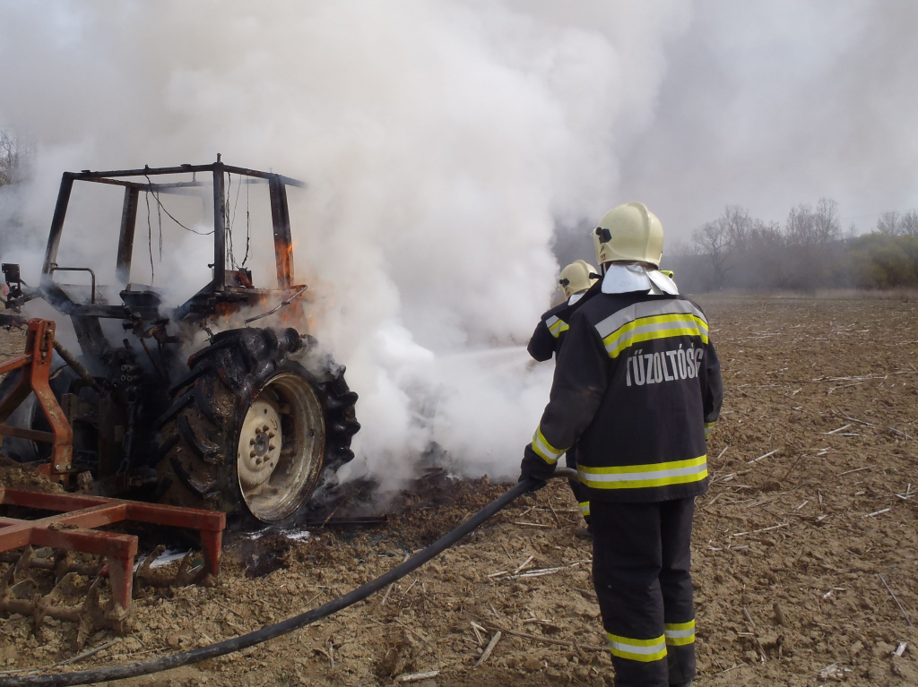 Kigyulladt egy traktor Somogyacsán
