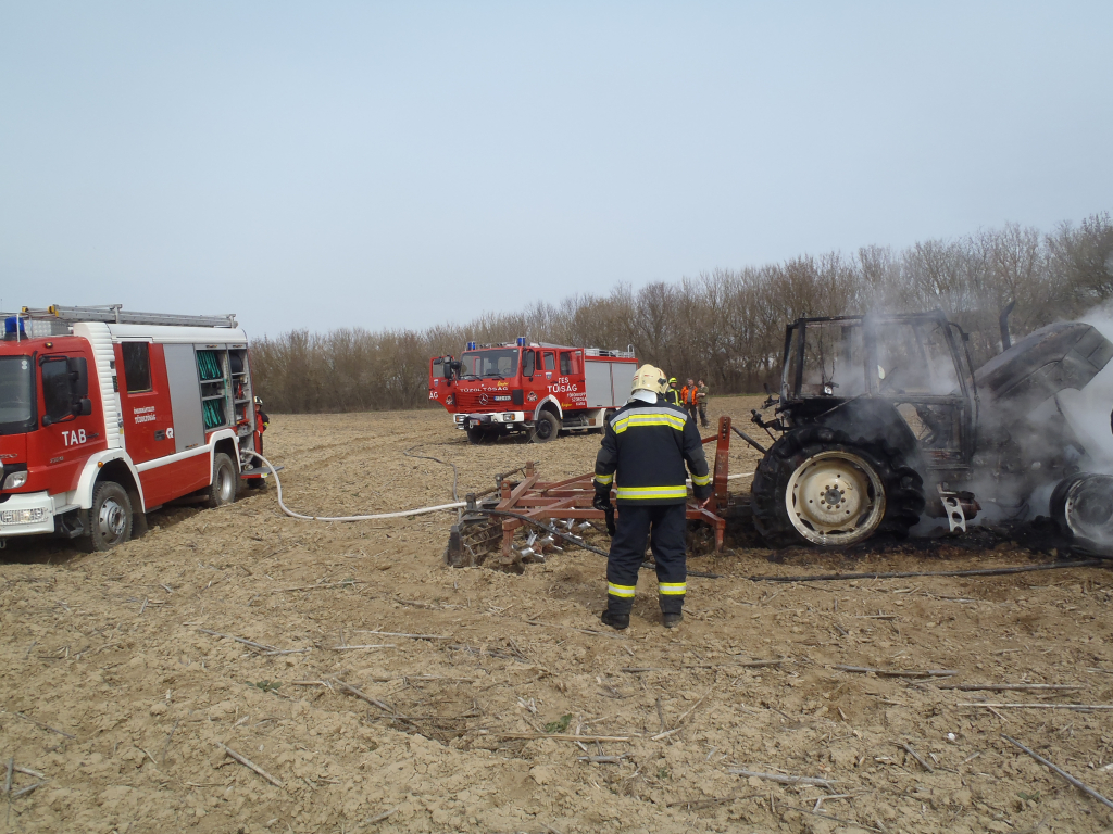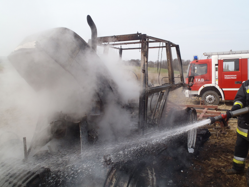 Munkavégzés közben gyulladt ki a jármű. Amikor ezt észlelte a sofőr, azonnal elhagyta a munkagépet, így nem sérült meg. A tabi önkormányzati és a törökkoppányi önkéntes tűzoltók fojtották el a lángokat, majd visszahűtötték a felhevült alkatrészeket. A gép teljesen kiégett.