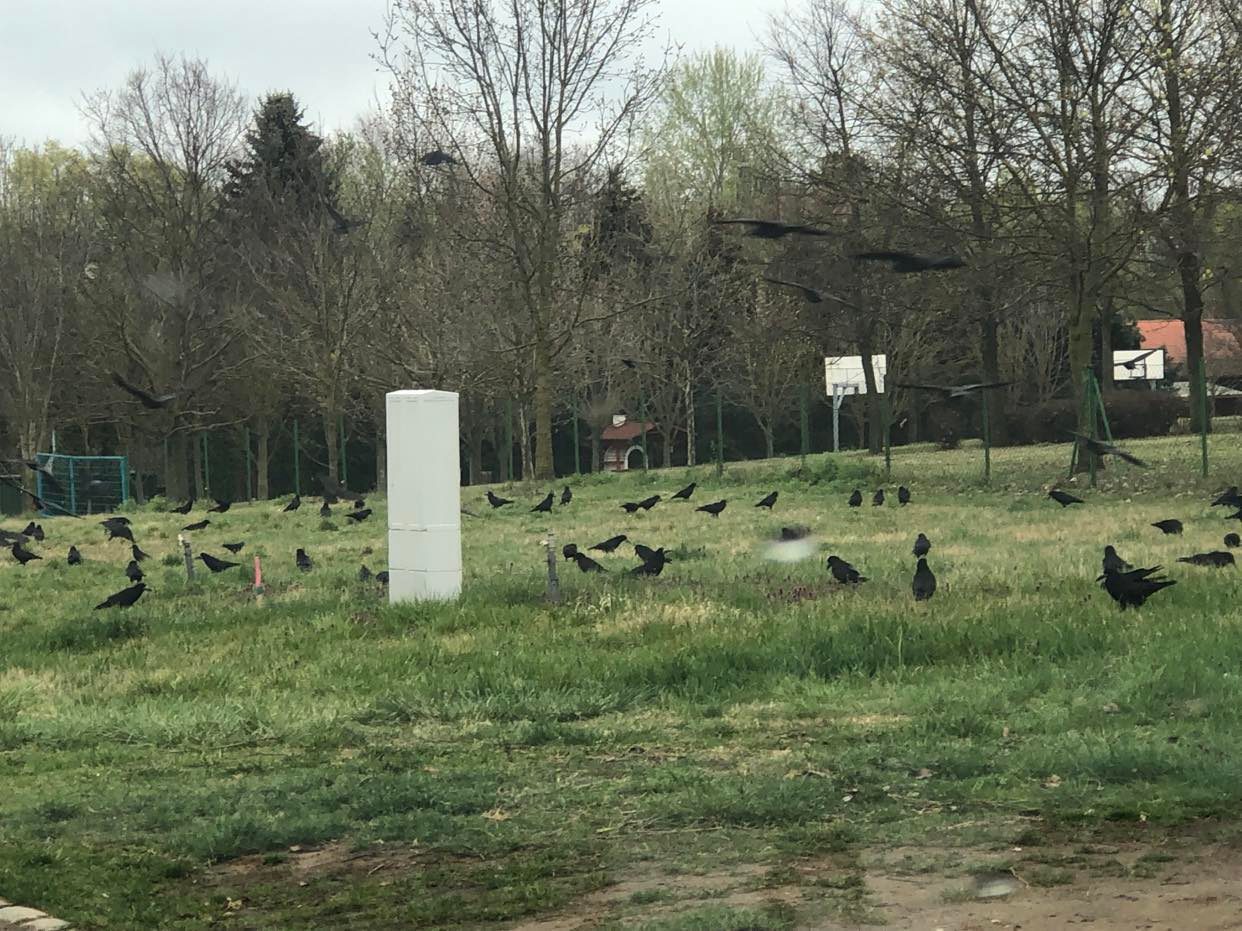 A lakótelepi madarak ellepték a fürdő környékét, nem kis riadalmat keltve az arra járóknak.