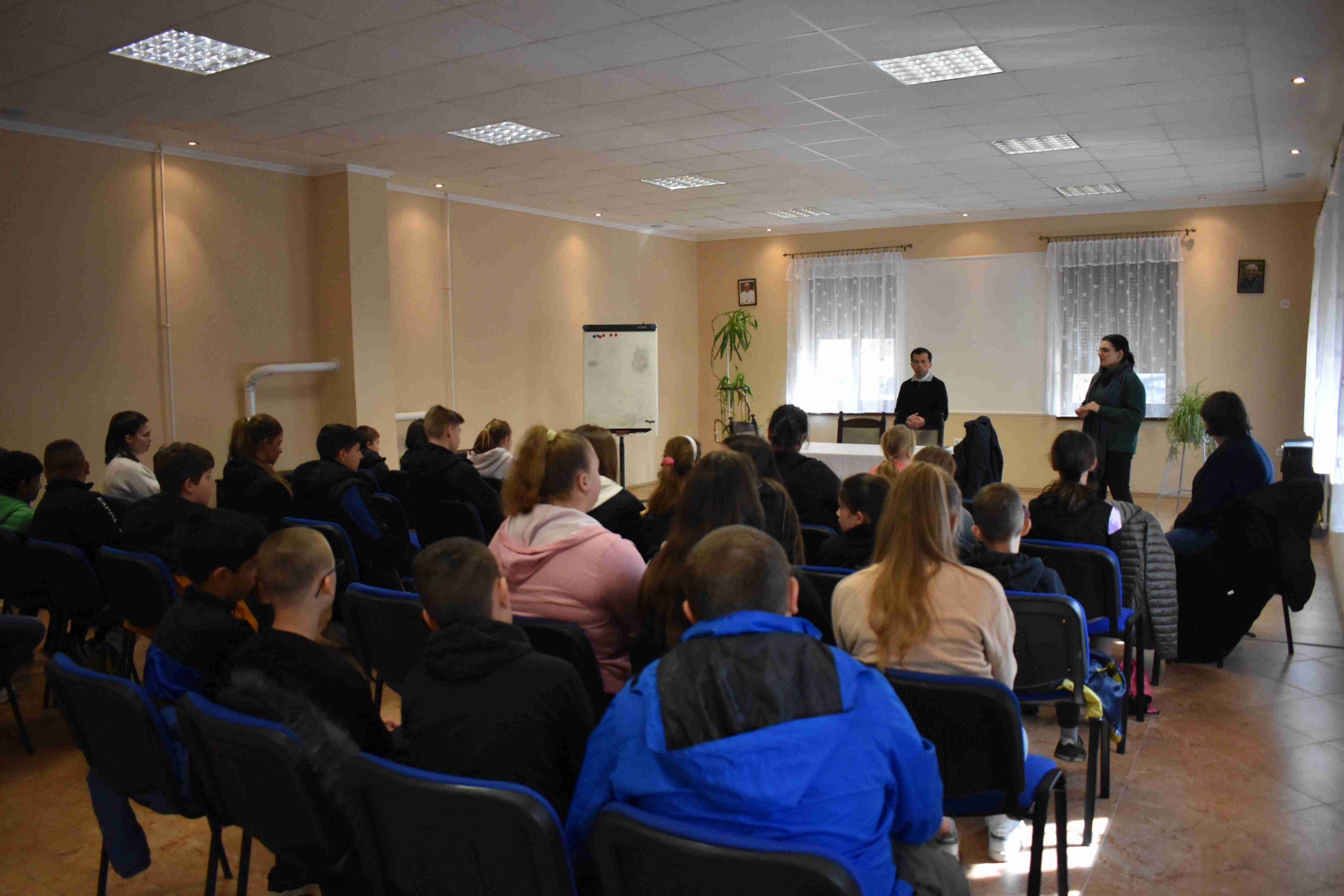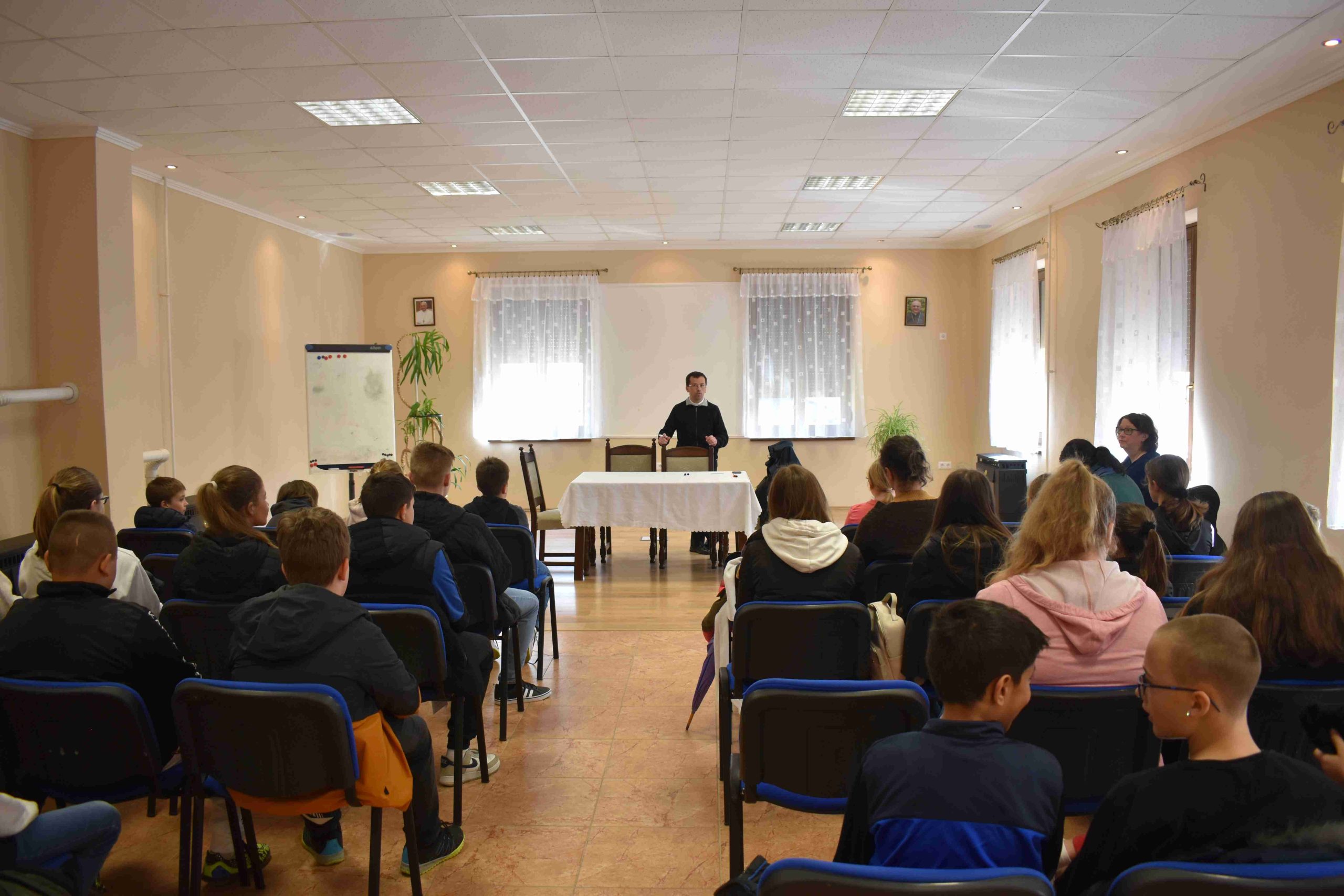 A program 15 órakor a hittanos diákoknak tartott előadással kezdődött az X-ház nagytermében, ahol Dr. Gyulainé Domján Zsuzsanna hitoktatónő köszöntése után Németh József kéthelyi plébános beszélt a gyermekeknek az ünnepi előkészületekről, a nagyböjttől a húsvétig tartó út jelentőségéről.