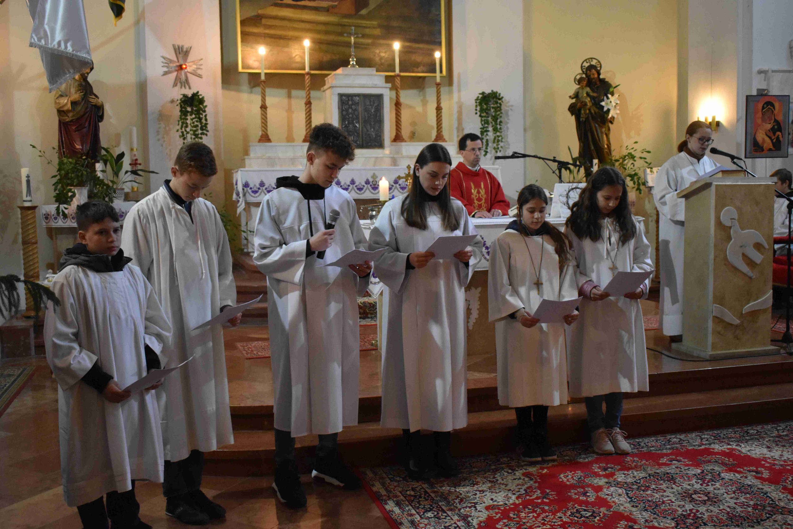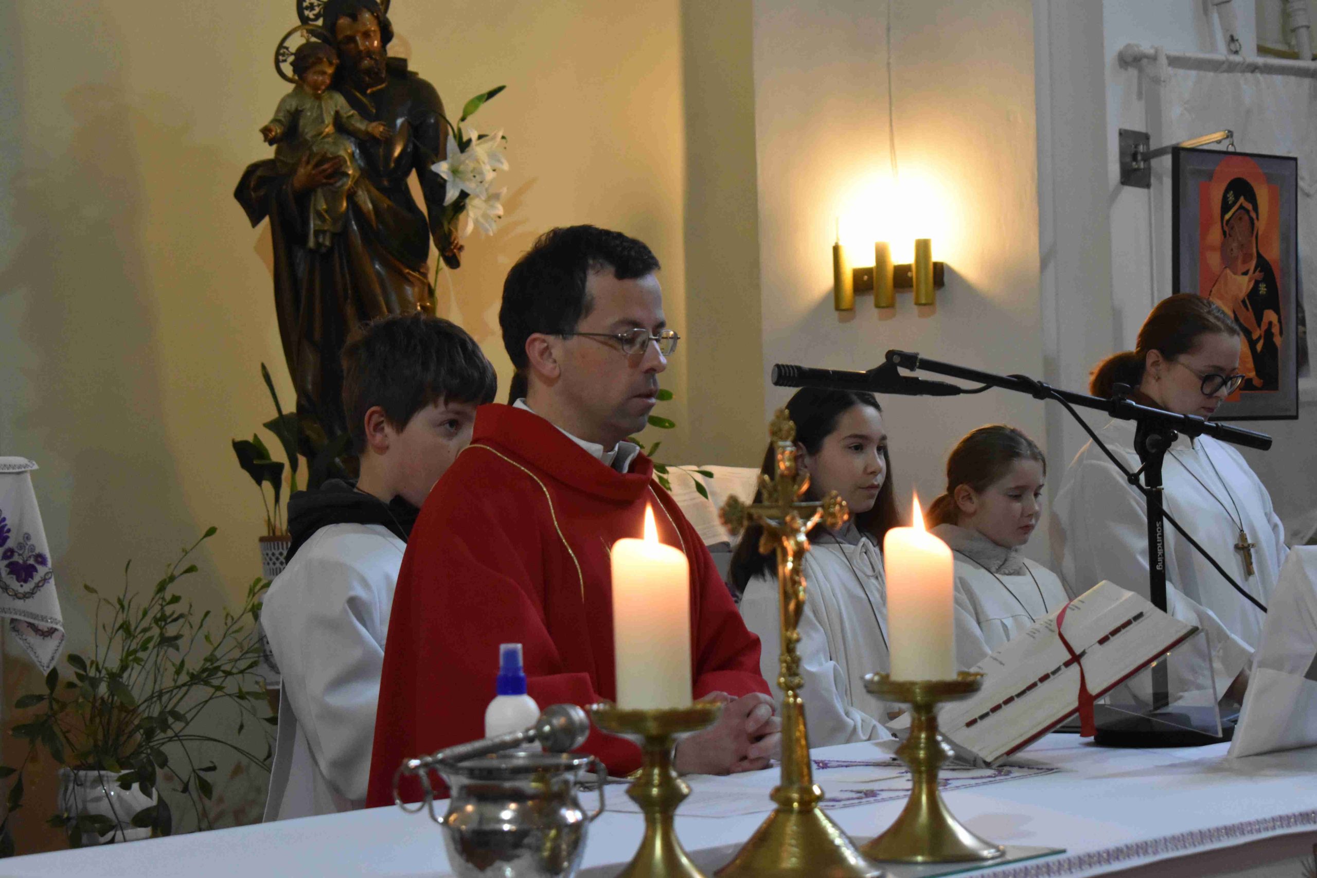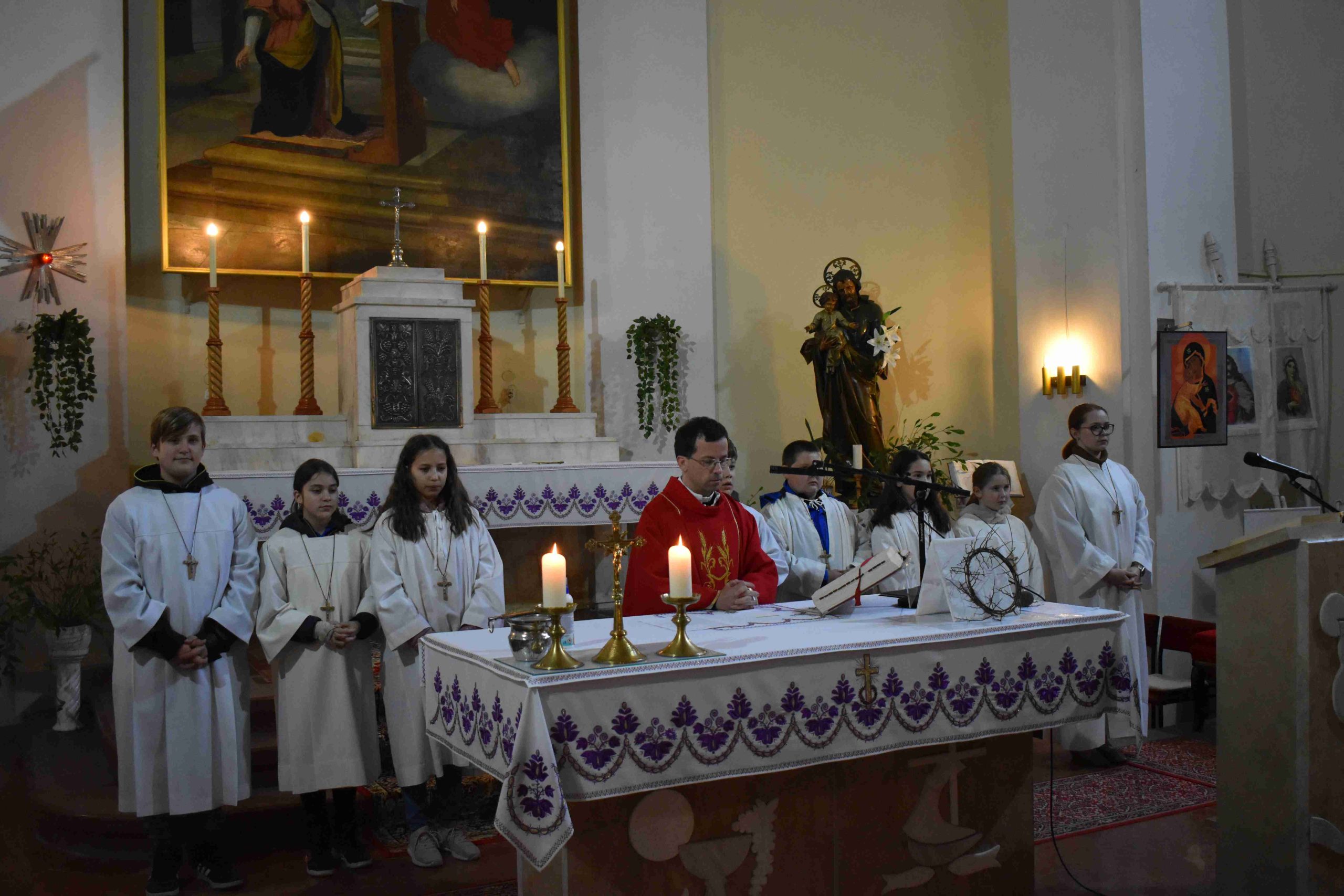 Ezután 18 órakor a lelkigyakorlatos szentmisével folytatódott a Lelki Nap, melyet Németh József atya celebrált és mondott szentbeszédet, miközben a közelgő nagyhét, illetőleg húsvét fontosságára hívta fel a résztvevők figyelmét.