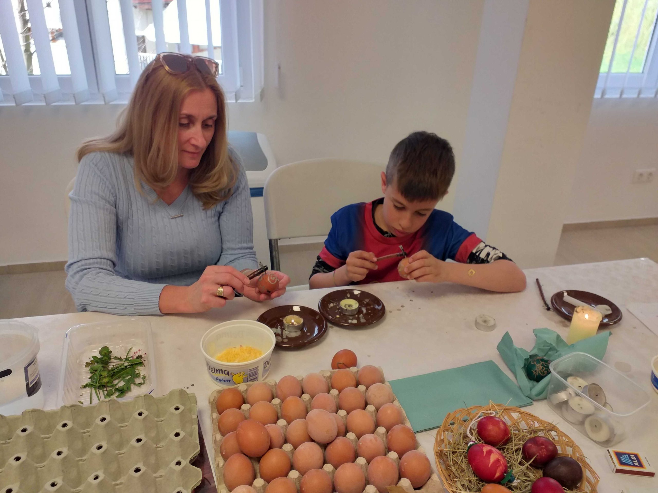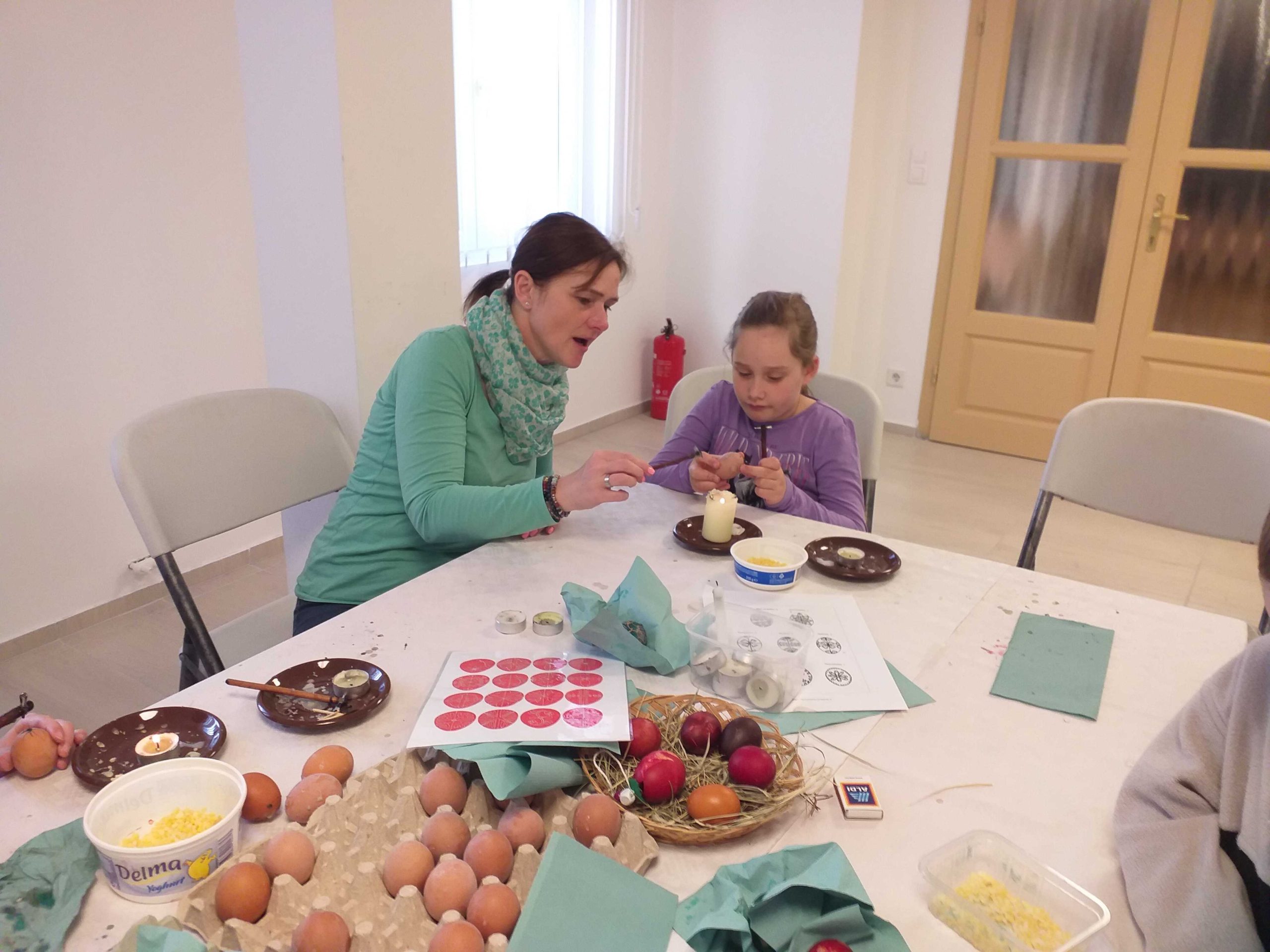 Ezen a családi délutánon hagyományos tojásdíszítési technikákkal hímes tojásokat és egyéb kedves húsvéti ajándékokat barkácsolhattak szüleik és a múzeumi segítők irányításával a községháza időszaki kiállítótermébe érkező kicsik és nagyok.