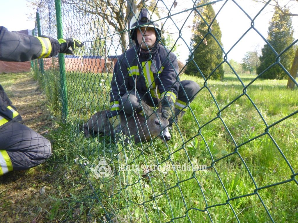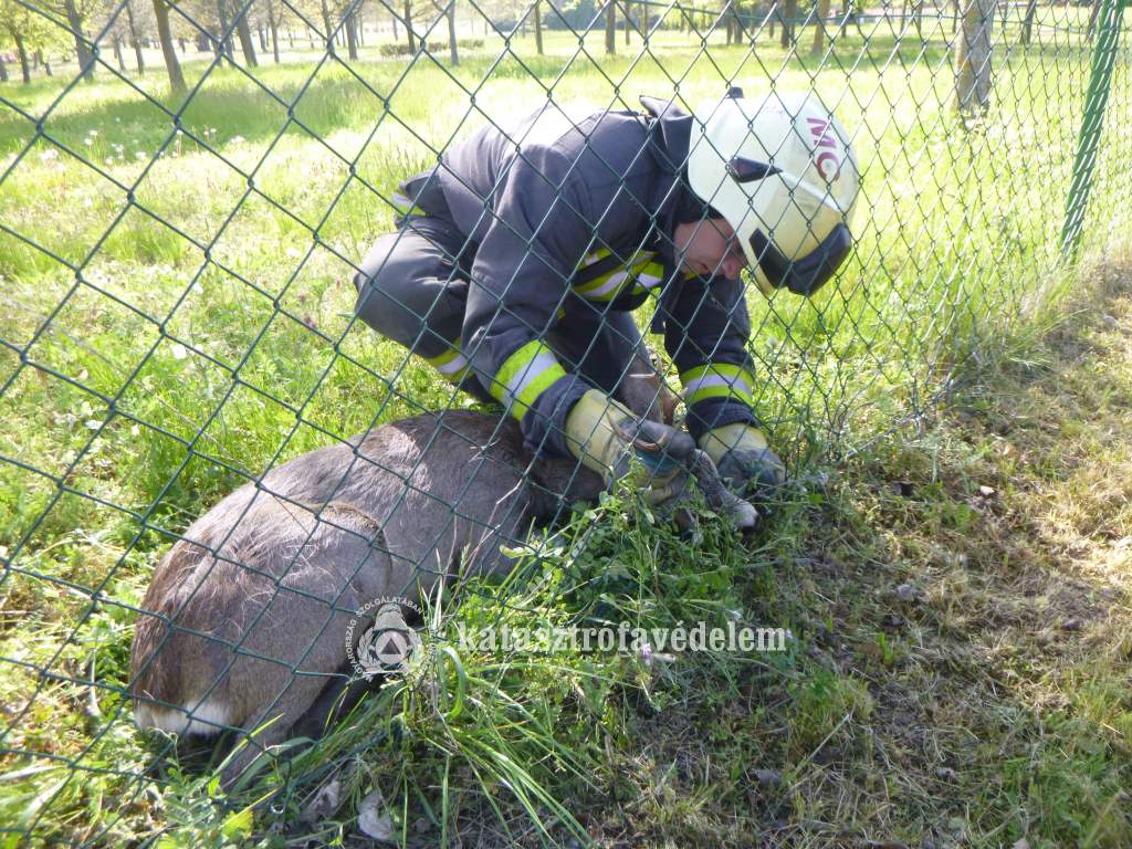 Őz szorult a marcali városi fürdő drótkerítésébe, a Rózsa utcában. A város hivatásos tűzoltói szabadították ki az állatot, majd a sérült őzet átadták a vadőrnek.