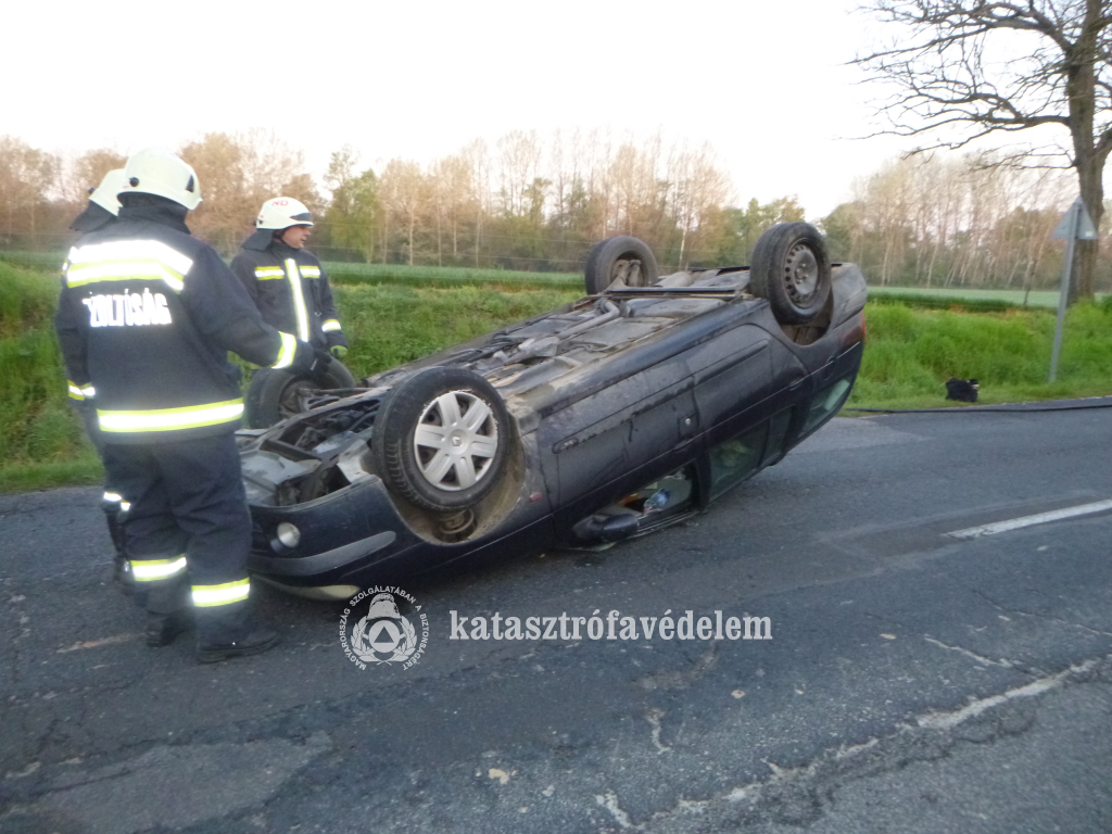 Felborult egy személyautó szombat reggel a 68-as főúton, Görgetegen. A balesethez a nagyatádi hivatásos és a görgetegi önkéntes tűzoltók vonultak ki, akik kerekeire állították és áramtalanították a járművet.