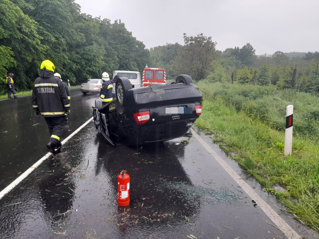 Felborult egy személyautó vasárnap délután a 61-es főúton, Iharosberény és Pogányszentpéter között. A jármű a tetején állt meg. A műszaki mentést végző csurgói önkormányzati és iharosberényi önkéntes tűzoltók áramtalanították a gépkocsit, majd segítettek az autómentőre helyezni.
