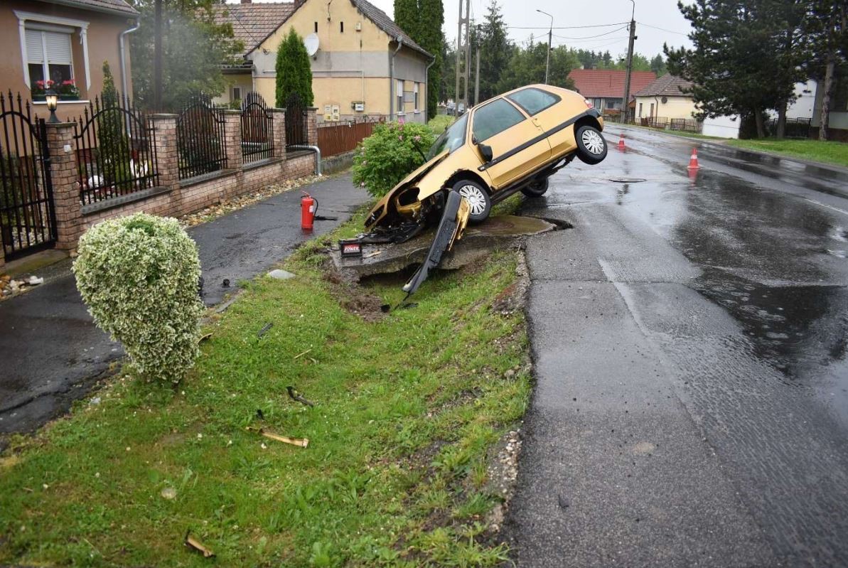 Marcali – Bize belterületén az úttestről letérve egy betonozott aknafedélnek ütközött a 48 éves férfi.