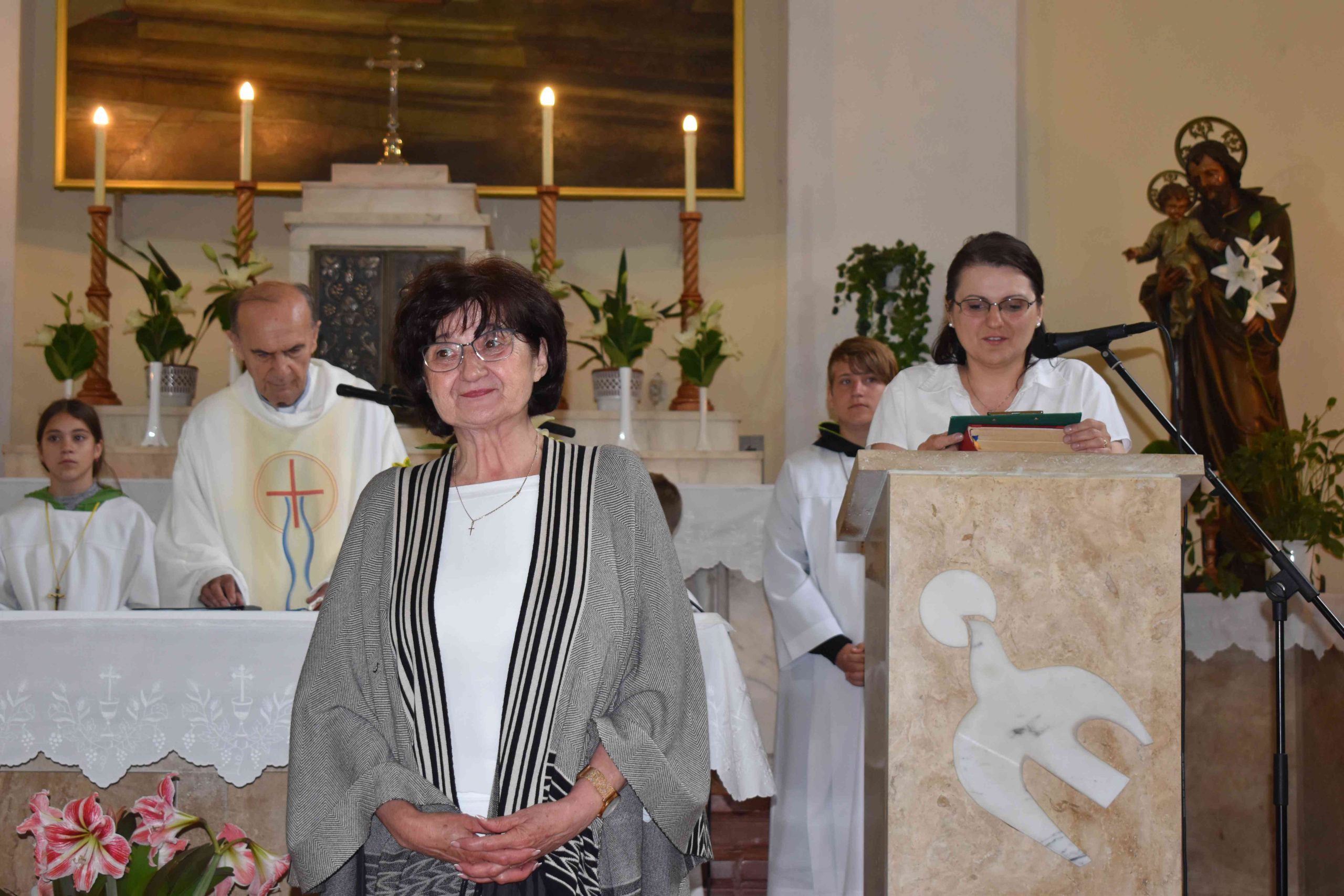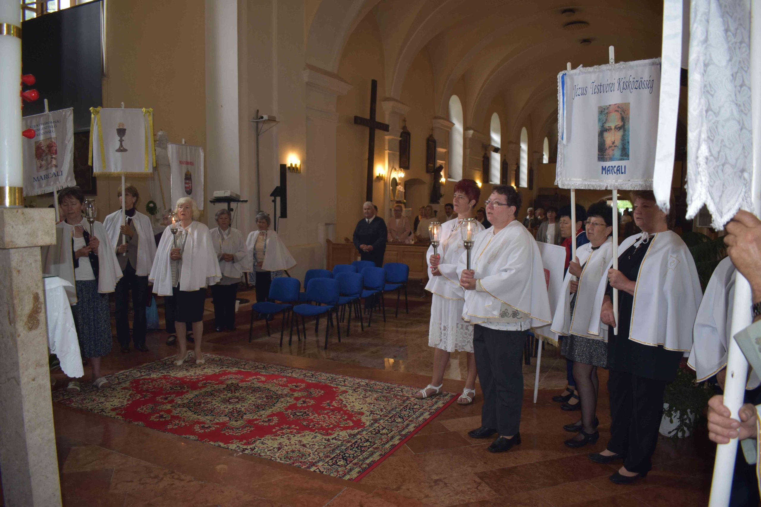 A szentmisevégén Kiss Iván plébános megköszönte a nyugdíjba vonuló Tombor Erzsébet hitoktatói munkáját, melyet, hosszú éveket át áldozatosan végzett a gyermekek javára. Dr. Gyulainé Domján Zsuzsanna hitoktató olvasta fel a méltatás szövegét. Kihangsúlyozta, hogy Erzsébet több mint 40 év tanítói munkát tudhat maga mögött a Noszlopy Iskolában, miközben 30 esztendőig hitoktatói tevékenységet is végzett. Ezalatt több ezer gyermeket vezetett el Isten ismeretére és szeretetére. Kiemelte, hogy számtalan műsor, versenyfelkészítés, templomi pásztorjáték fűződik az ő szorgalmának, kitartásának, kreativitásának és töretlen lelkesedésének köszönhetően. További életére pedig sok örömöt és Isten áldását kívánta a jelenlévők nevében is. A Marcali Római Katolikus Egyházközség nevében egy csokor virágot Dr. Gyulai Botond akolitus nyújtott át, míg a könyvcsomagot pedig Iván atya adta át a meghatódott hitoktatónak.