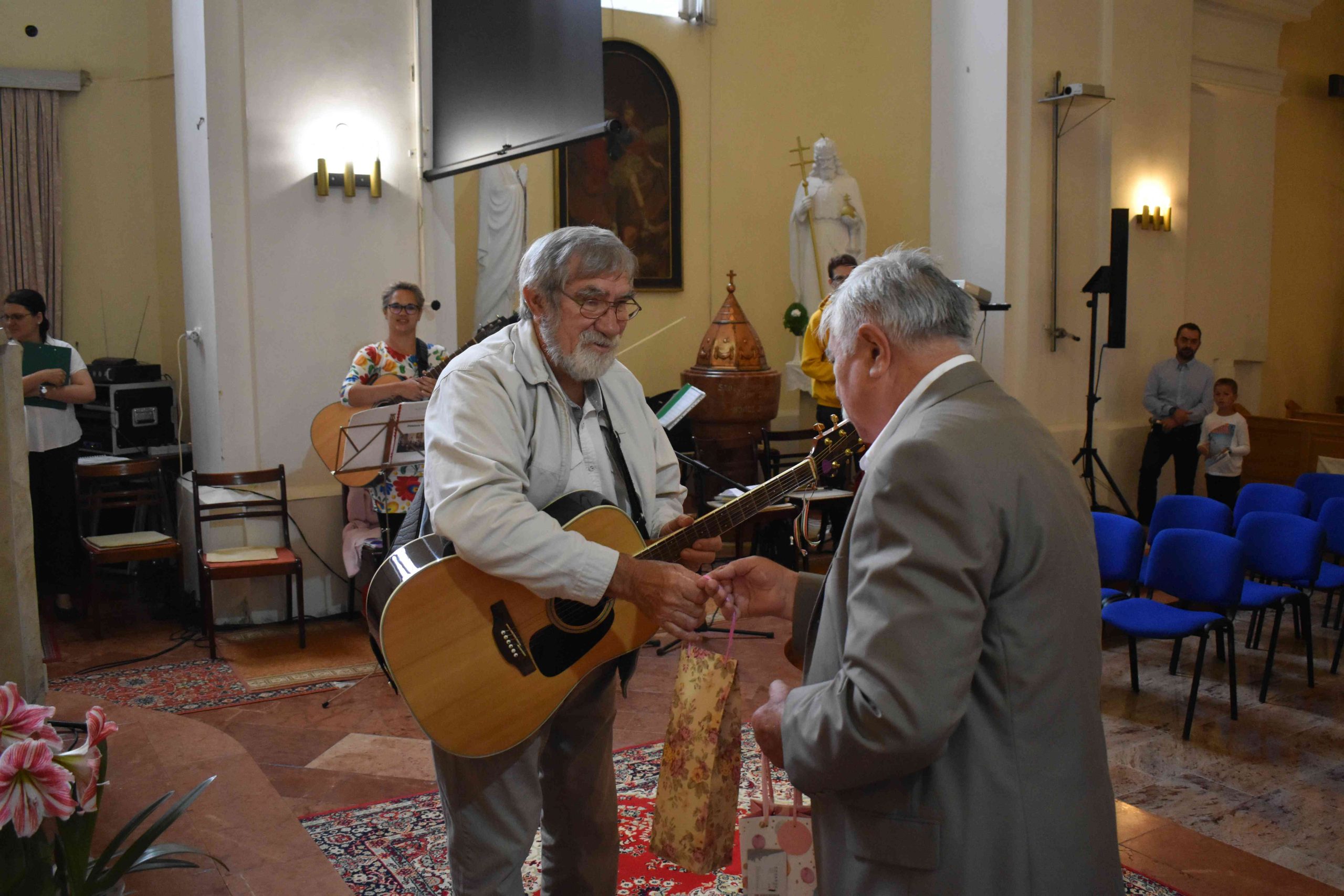Ugyancsak ekkor köszöntötték Gelencsér Róbert világi elnököt és Ságvári Róbert zenekarvezetőt is névnapja alkalmából, akiknek a plébános és Király Jenő templomatya egy-egy üveg bort adott át, valamint a hívekkel együtt ároni áldásban részesítették őket.