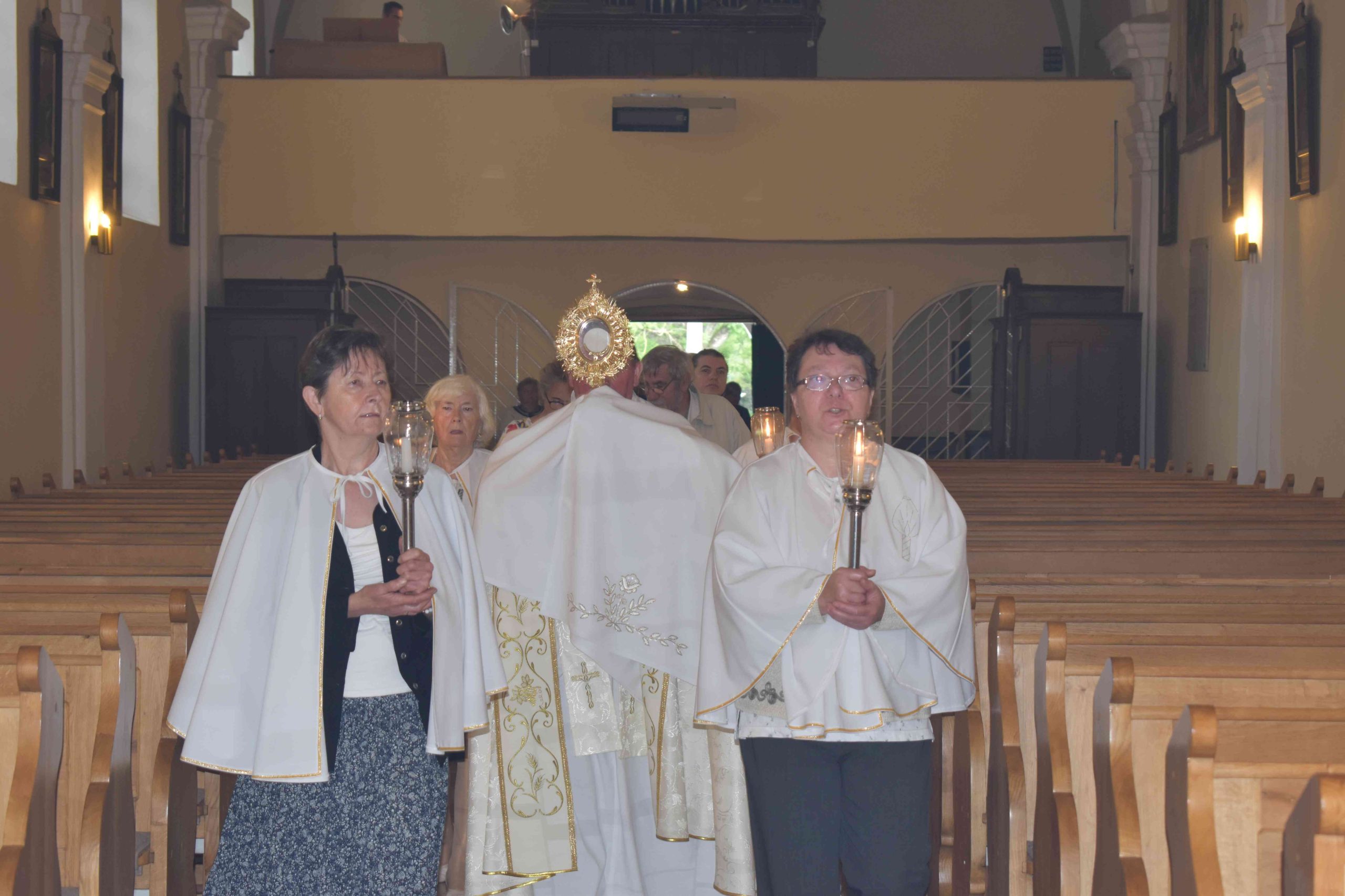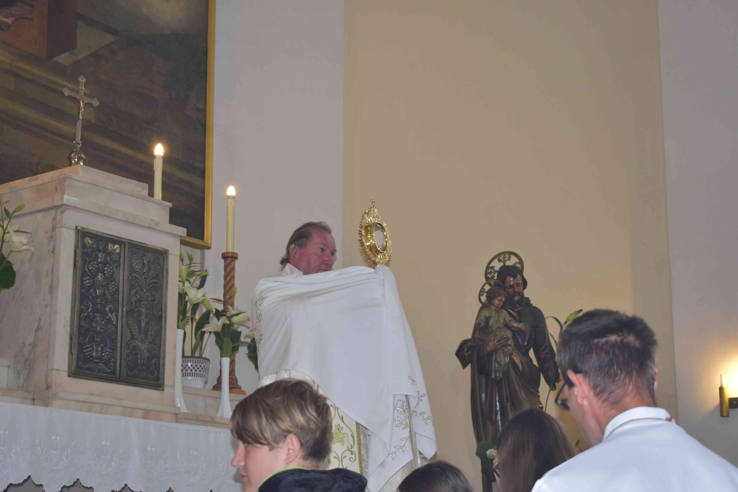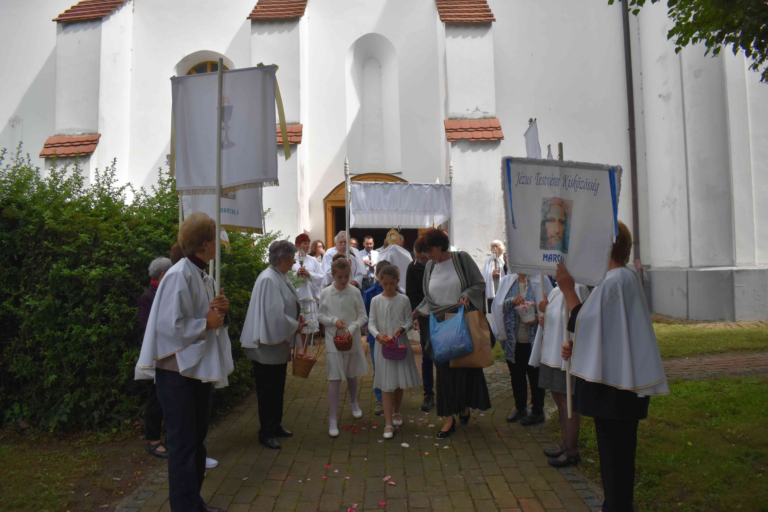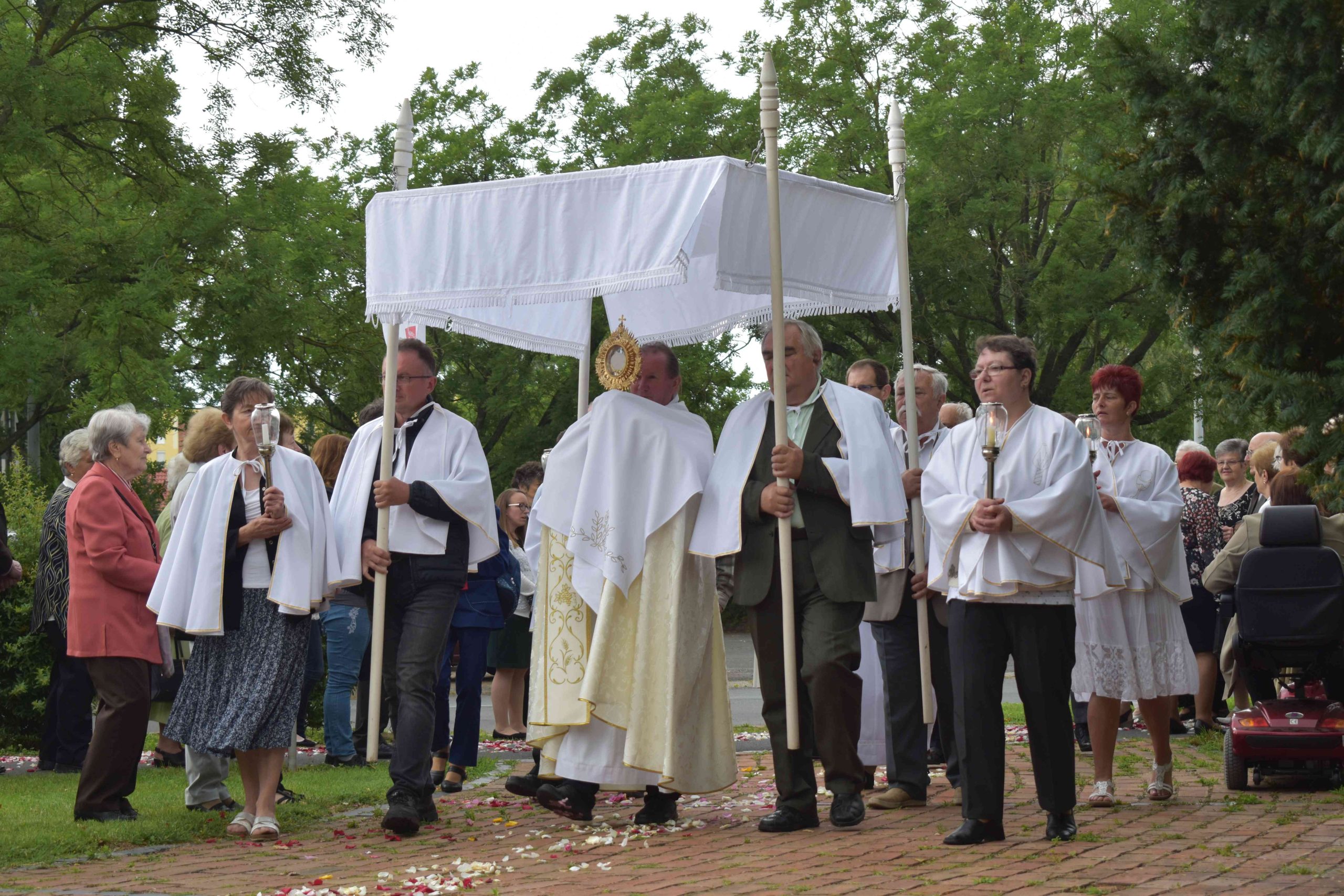 Az istentisztelet főcelebránsa Kiss Iván c. prépost, plébános volt, akiszentbeszédében az Oltáriszentség (Eucharisztia) jelentőségé hangsúlyozta. Az egyház tanítása szerint ugyanis az Oltáriszentség Jézus Krisztus valóságos teste és vére. Éppen ezért ezen az ünnepen – szerte a világban – kiviszik az utcákra és a terekre, hogy Isten szeretetét hirdessék mindenki számára.