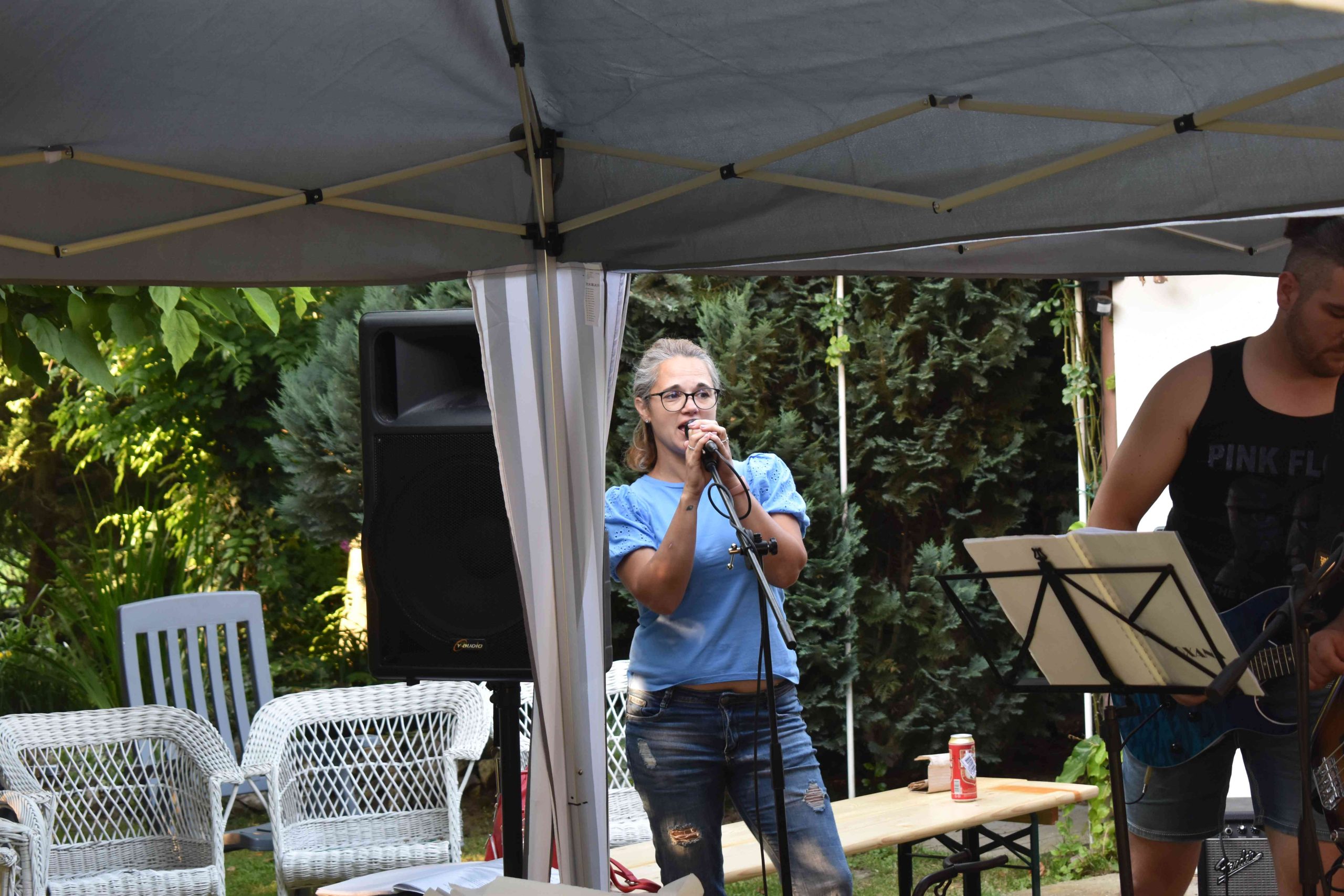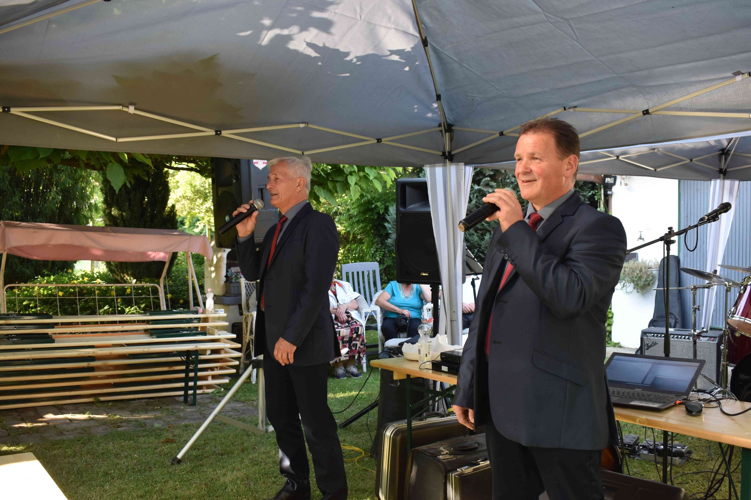 Ezután egy zenei blokkal folytatódott a rendezvény a székház udvarán, ahol először a Marcali 3 Tenor – két énekese – lépett fel közismert slágerekkel, majd pedig az Oxana zenekar szórakoztatta a közönséget magyar és külföldi dalokkal.
