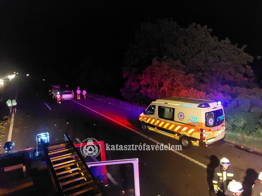 A szalagkorlátot átszakítva másik két autónak ütközve, az oldalára borulva állt meg egy Budapest felől érkező gépkocsi. A járművekben összesen öt ember utazott. A siófoki hivatásos tűzoltók az egyik gépkocsi vezetőjét feszítővágóval szabadították ki az összeroncsolódott autóból. Ezt követően az egység megszüntette a forgalmi akadályt. A mentés idejére teljes útlezárás volt érvényben.