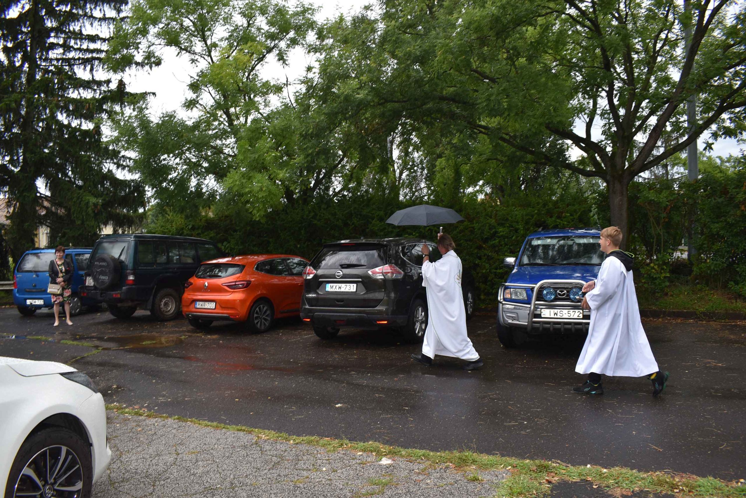 A szemerkélő eső miatt, az istentiszteleten Ferenc atya a plébániatemplomban megtartotta az áldás általános szertartását. Majd ezt követően a plébániatemplom előttiparkolóban, a szép számban elhozott járműveket és vezetőiket is szenteltvízzel is megáldotta. Az idei évben az idősek mellett a fiatalok is eljöttek, hogy Szent Kristóf oltalmát kérjék a balesetmentes közlekedés érdekében.