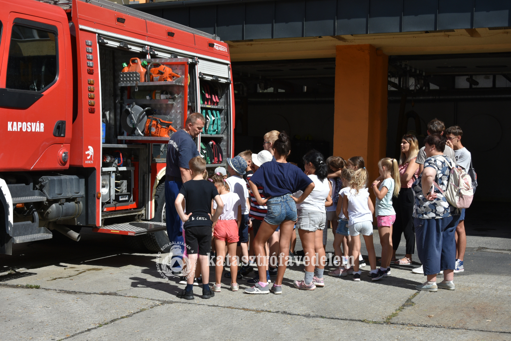 A kaposvári tűzoltók laktanyáját a kormányhivatal dolgozóinak gyermekei vették górcső alá. Ezer kérdés kereszttüzébe került a napi szolgálat. A gyerekek óriási érdeklődést mutattak a tűzoltók 24 órás szolgálata iránt. Kíváncsiak voltak, milyen esetekhez riasztják őket, mennyi volt a legtöbb riasztás egy nap és, hogy a magasból mentő milyen magasból képes menteni.