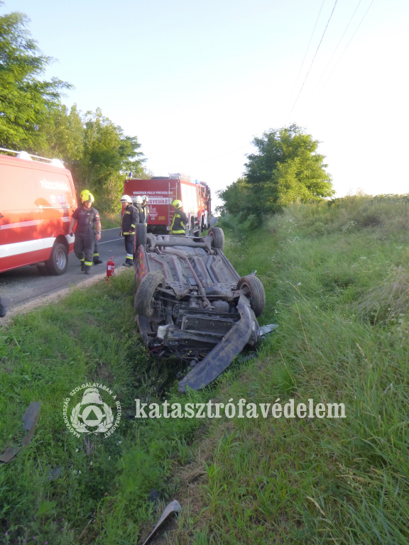 Árokba hajtott és a felborult egy személyautó csütörtök hajnalban, Somogyvárnál.
