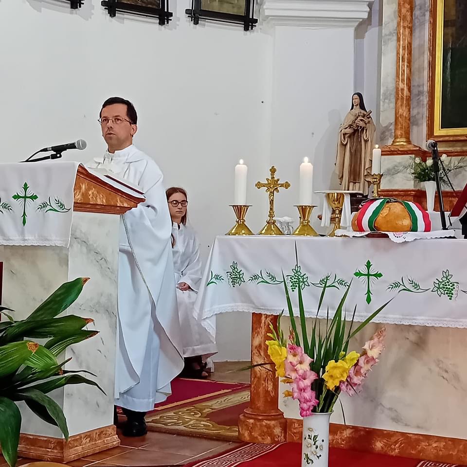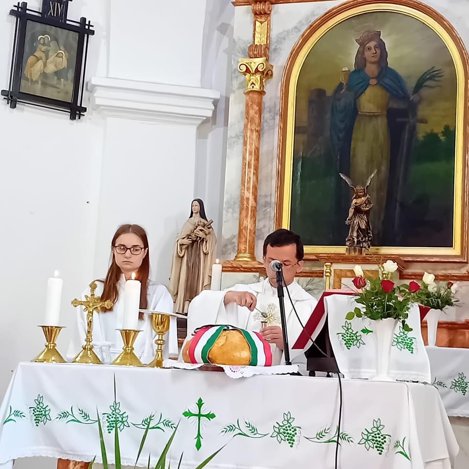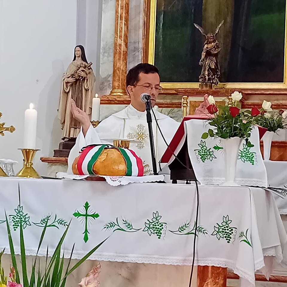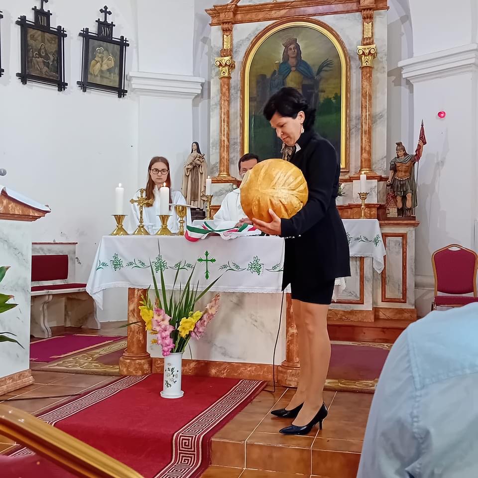 Boronkán ünnepi szentmise keretében áldotta meg Németh József atya a kenyeret, melyet Kutor Veronika önkormányzati képviselő szegett meg.