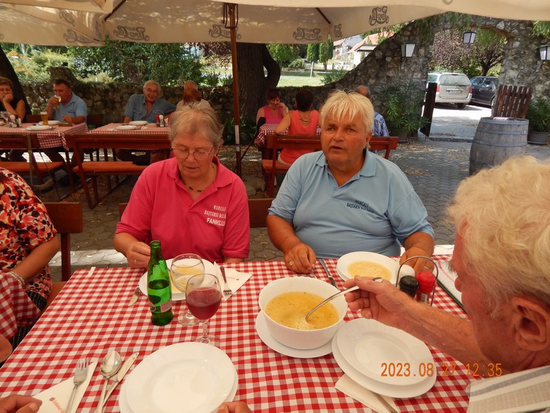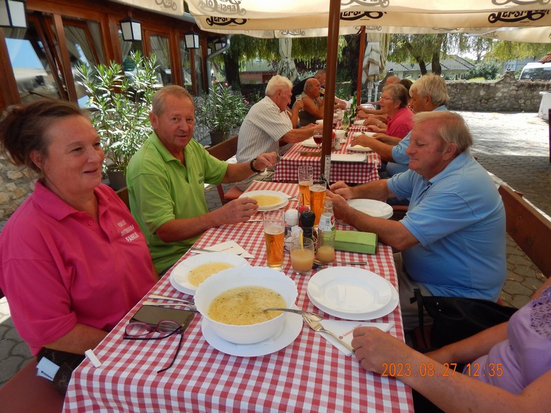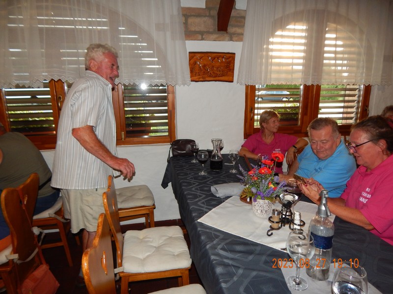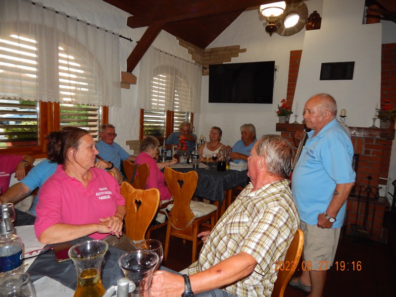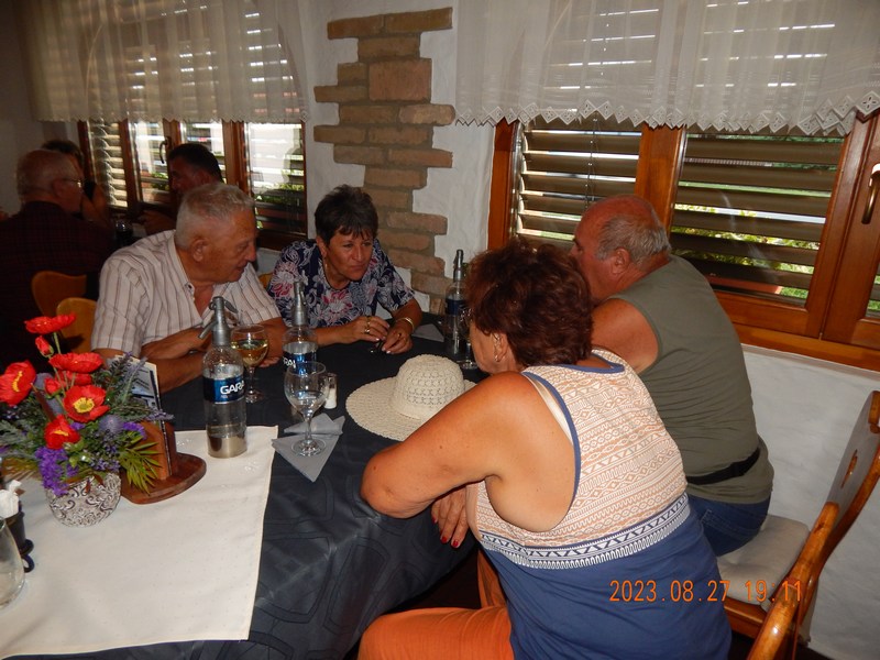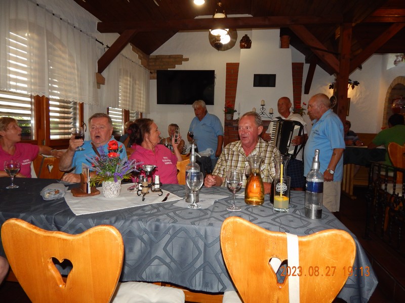 A programok végén a finom vacsorát a Balatonújlaki „Kukorica Csárdában” fogyasztottuk el, majd baráti beszélgetéssel közös énekléssel zártuk a tartalmas, de fárasztó egész napos rendezvényt.