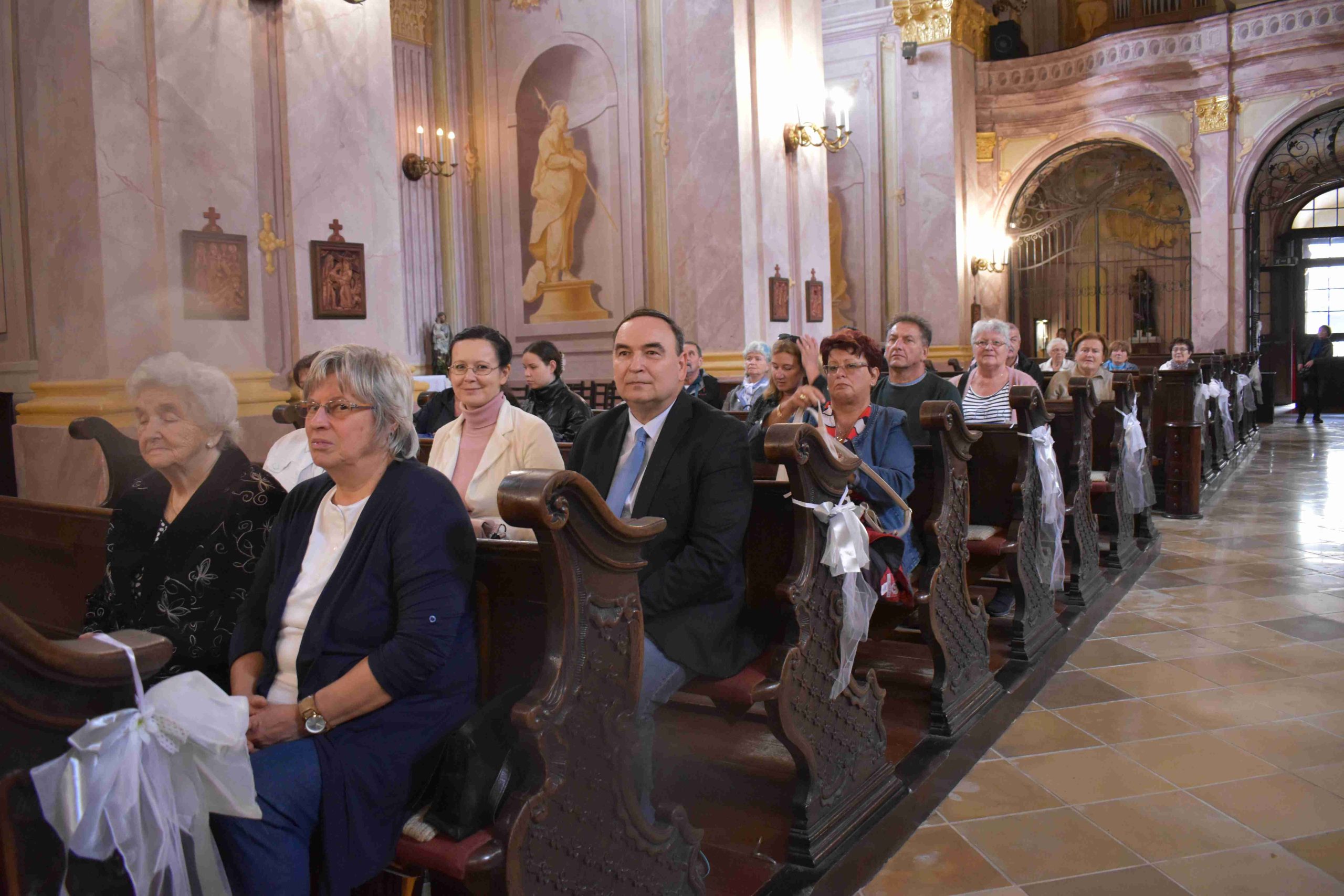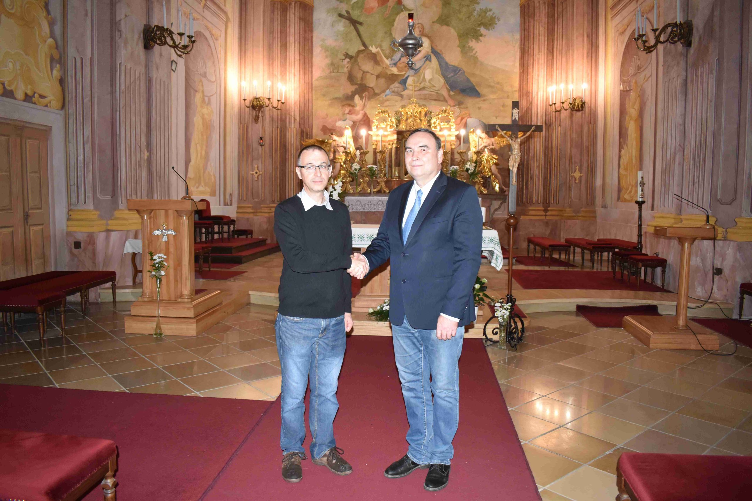 A marcali zarándokok következő állomása Zalaegerszeg volt, ahol a Szent Mária Magdolna főplébánia-templom bejáratánál Stróber László kanonok, esperes, apát-plébános és Illés Csaba, a KÉSZ Zalaegerszegi Csoportjának elnöke nagy örömmel várta és köszöntötte a somogyi csapatot. Elsőként a plébános úr elmondta az impozáns templom történetét, majd pedig közös szentmisén vettek részt a két testvérszervezet képviselői, melyet Tomanek Ferenc Áron marcali plébános celebrált. Az ünnepi istentisztelet és a találkozás jó alkalom volt arra, hogy a KÉSZ vidéki csoportjai megismerjék egymást, és eszmecserét folytassanak egymással a tevékenységükről, célkitűzéseikről, valamint a jövőbeli együttműködés lehetőségéről. Köszönjük szépen Illés Csaba elnök úrnak, és szervezete képviselőinek a szívélyes fogadtatását, további áldásos munkát kívánunk nekik.