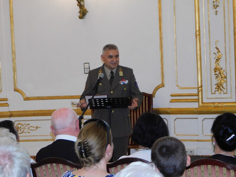 Galló István ny. ezredes a Balassi BálintBajtársi Egyesület köszöntője után Dr. Keszthelyi Gyula ny.mérnök dandártábornok, a Honvédségi Nyugdíjas Klubok Országos Szövetségének elnöke szólt a jelenlévőkhöz.