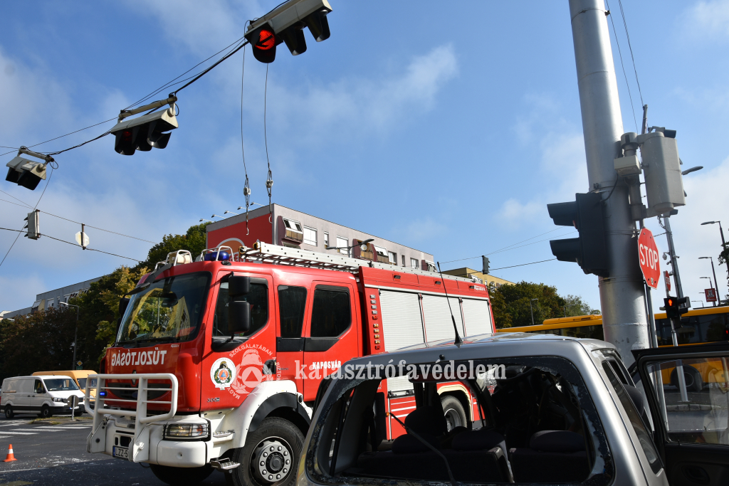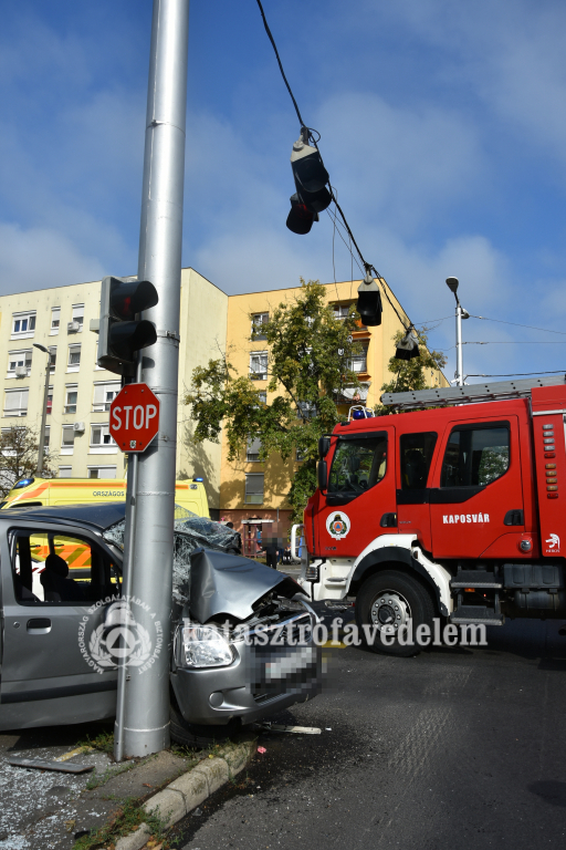 A csomópont közlekedési lámpájának ütköző személyautó két utasa a kaposvári hivatásos tűzoltók kiérkezése előtt ki tudott szállni az autóból. A sérülteket a mentők kórházba szállították. A tűzoltók áramtalanították az összeroncsolódott gépkocsit, a műszaki mentést követően pedig a leszakított közlekedési lámpák helyreállítása is megkezdődött.