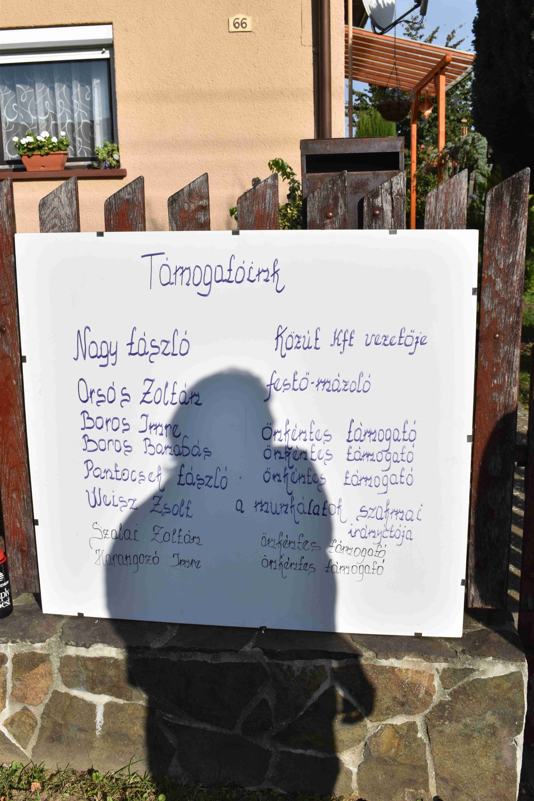 A felújítási fő támogatója: Nagy László, a Közút Kft. vezetője, továbbá Orsós Zoltán festő és mázoló, Boros Imre, Boros Barnabás, Pantocsek László, valamint Szalai Zoltán és Harangozó Imre önkéntes támogatók, valamint Weisz Zsolt szakmai irányításával készült el a munka.