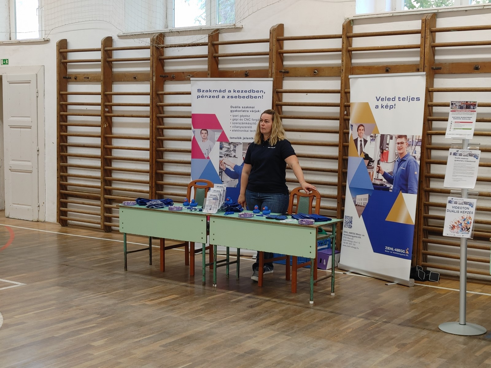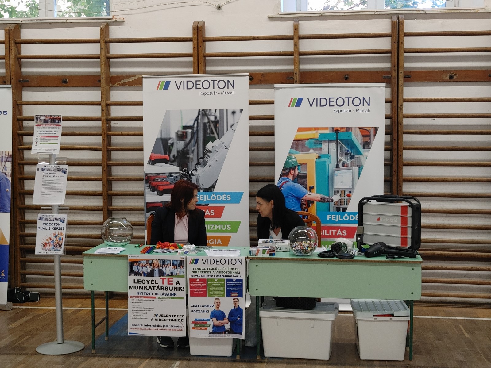 A szőcsényi szakképző iskola az udvaron volt diákjaink részvételével szakmai bemutatót tartott, a Videoton dolgozói nyereményeket sorsoltak a látogatók között.