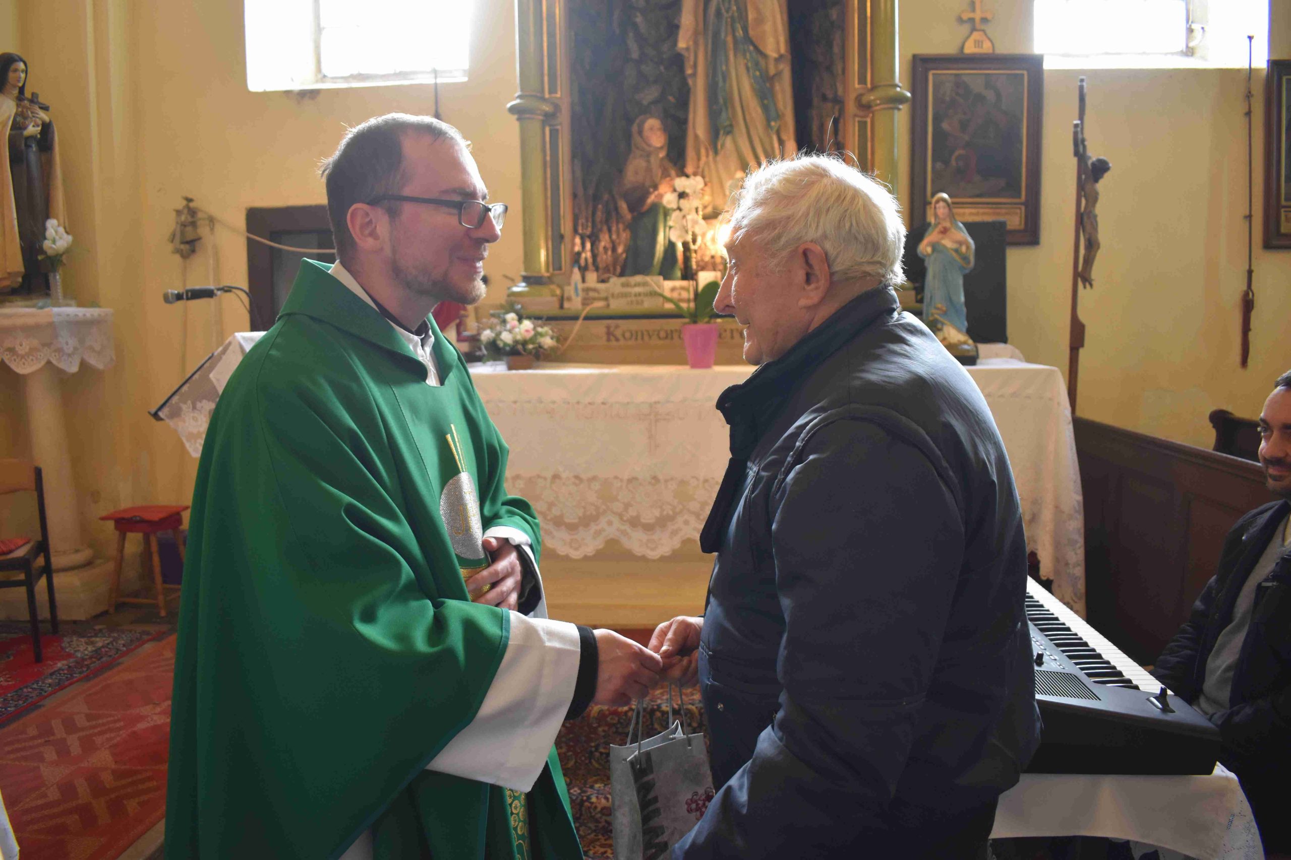 Az ünnepi istentiszteleten– többek között – a Marcali Római Katolikus Egyházközség Képviselő Testülete részértől Király Jenő marcali templomatya, valamint a testület több tagja, továbbá Sávoly Andrea Karitászvezető, és a templom egykori kántora vett részt. Közreműködött: Balogh Bálint marcali kántor.