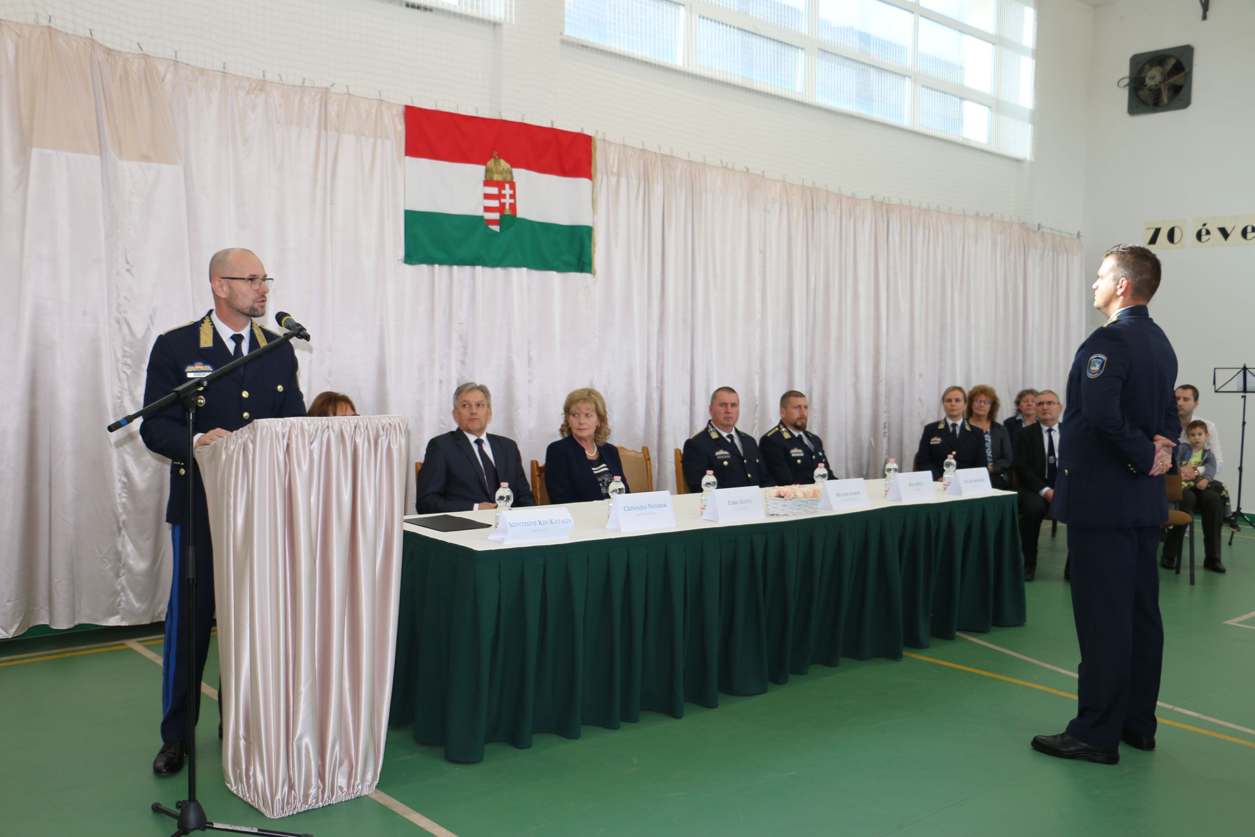 Az ünnepség elöljárója Molnár Gábor r. dandártábornok, vármegyei rendőrfőkapitány köszöntőjében kiemelte, hogy a nehéz idők olyan különleges embereket igényelnek, mint azok a fiatalok, akik rendőrségi szolgálatra készülve elkötelezték magukat a haza szolgálatára, és embertársaik védelmére.
