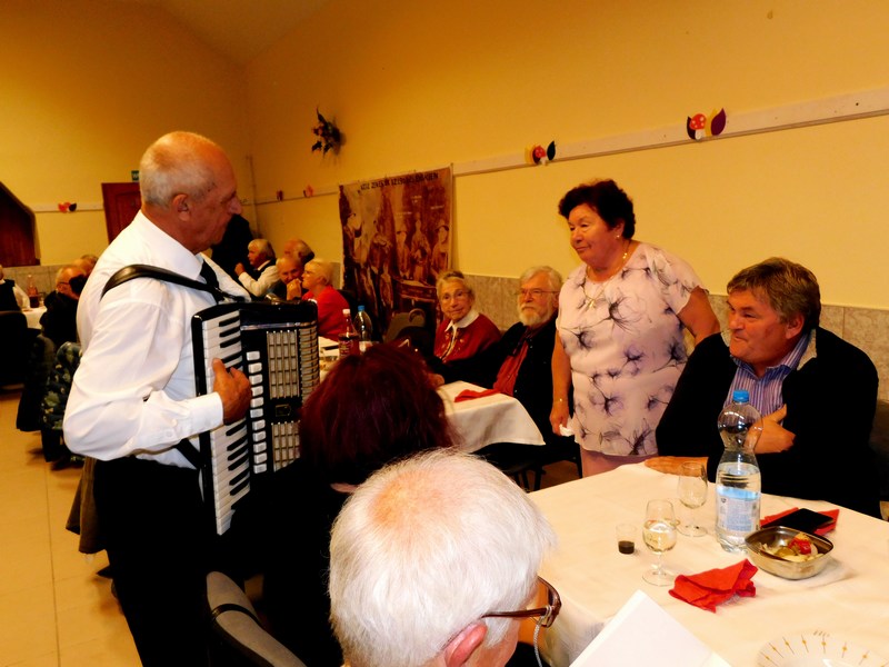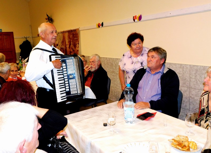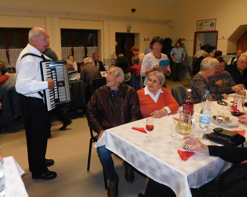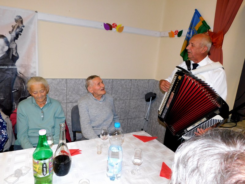 Az előadás után a tangóharmonikásunk jóvoltából sikerült megénekeltetni a település idős lakóit.