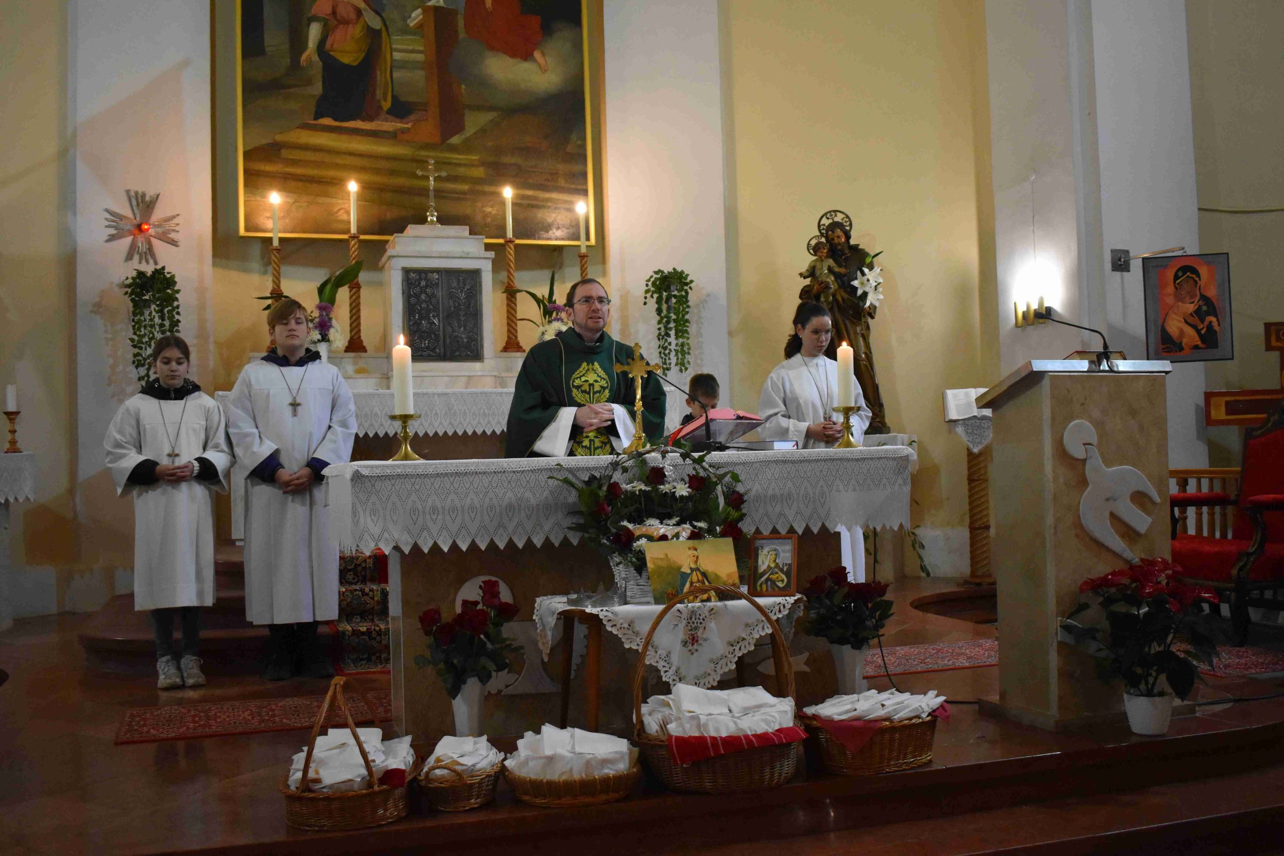 Másnap, november 19-én, a vasárnapi 9 órakor kezdődő istentiszteleten ugyancsak kenyérmegáldás történt. Ezúttal Ferenc atya vezetésével és a ministránsok közreműködése mellett, a hittanos diákok piros rózsákkal (emlékeztetve Szent Erzsébet rózsa-csodájára), a karitász aktivisták pedig kenyérrel vonultak be körmenetileg együtt a templomba.
