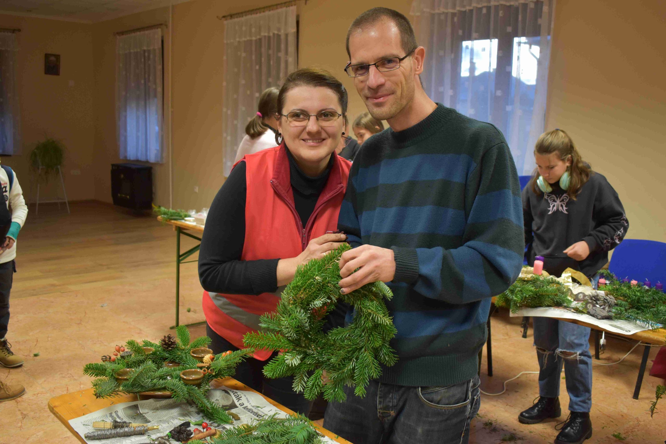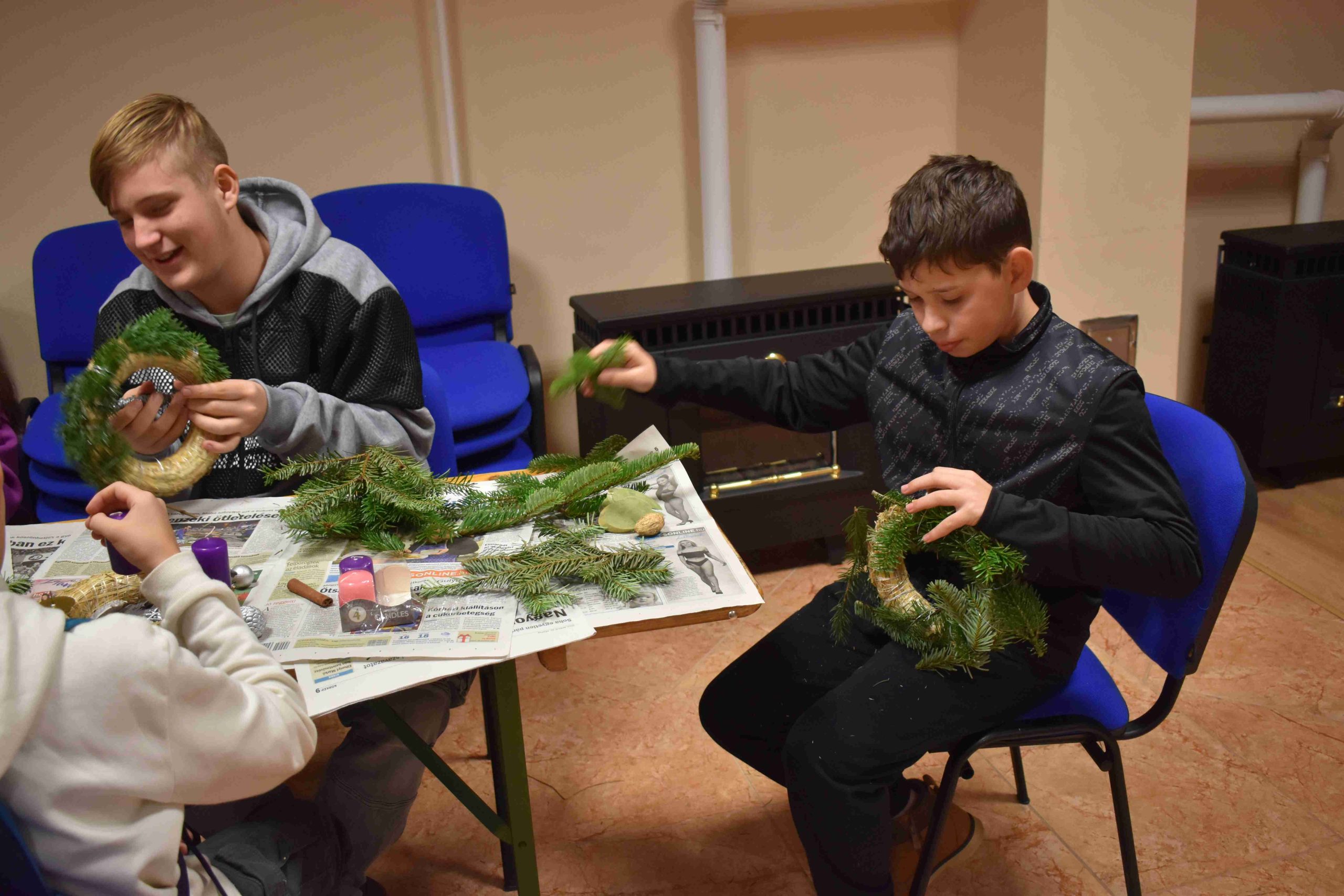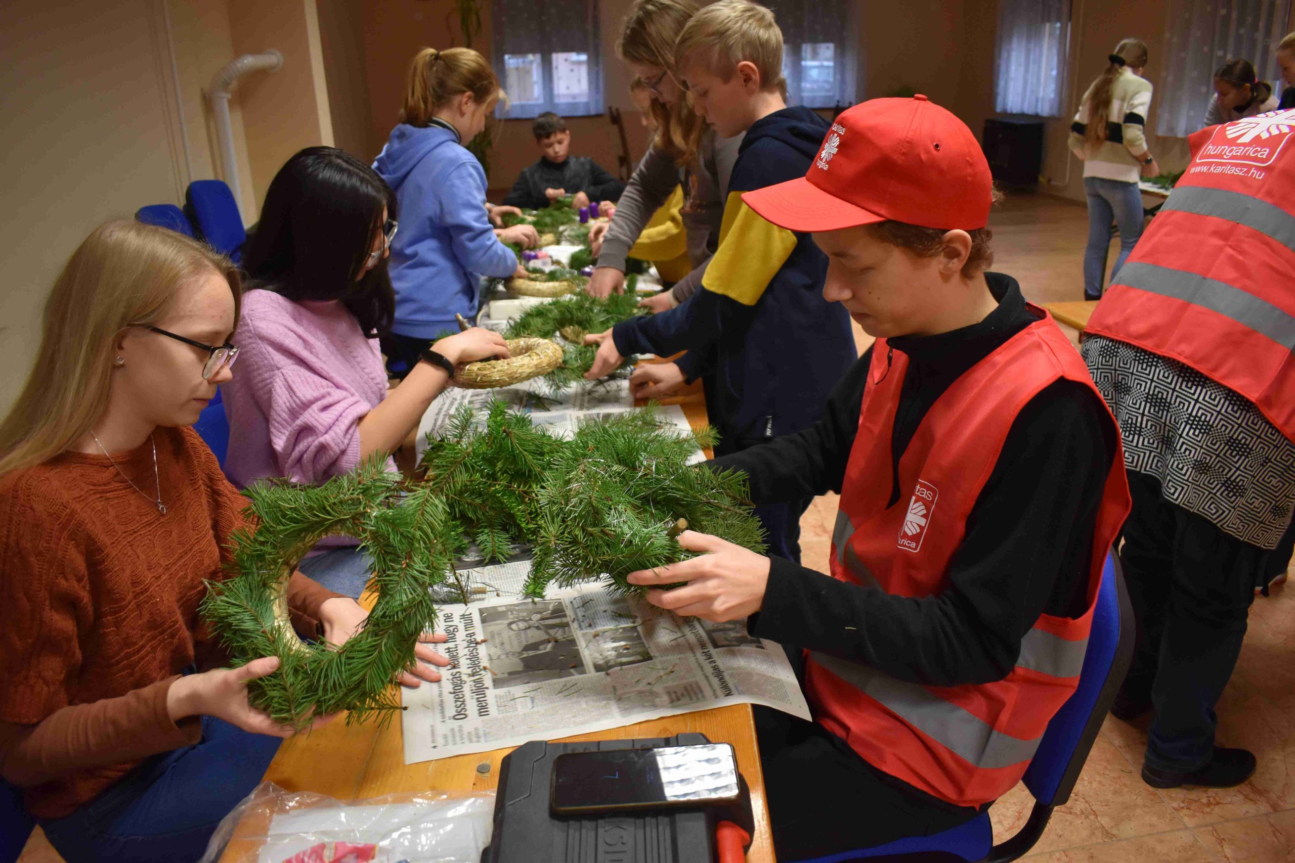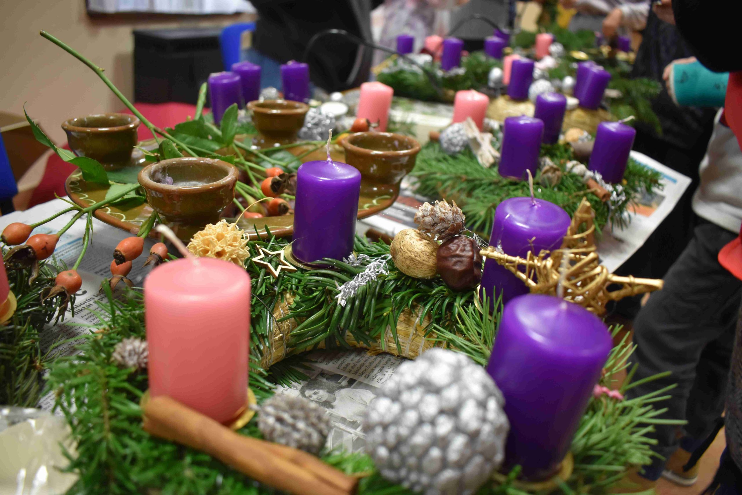 2023. december 2-án, szombaton, délután 14.30 órától az X-ház (Dózsa u. 3.) nagytermébe ádventi koszorúkészítésre hívták a hittanos diákokat a karácsonyra való előkészület részeként.