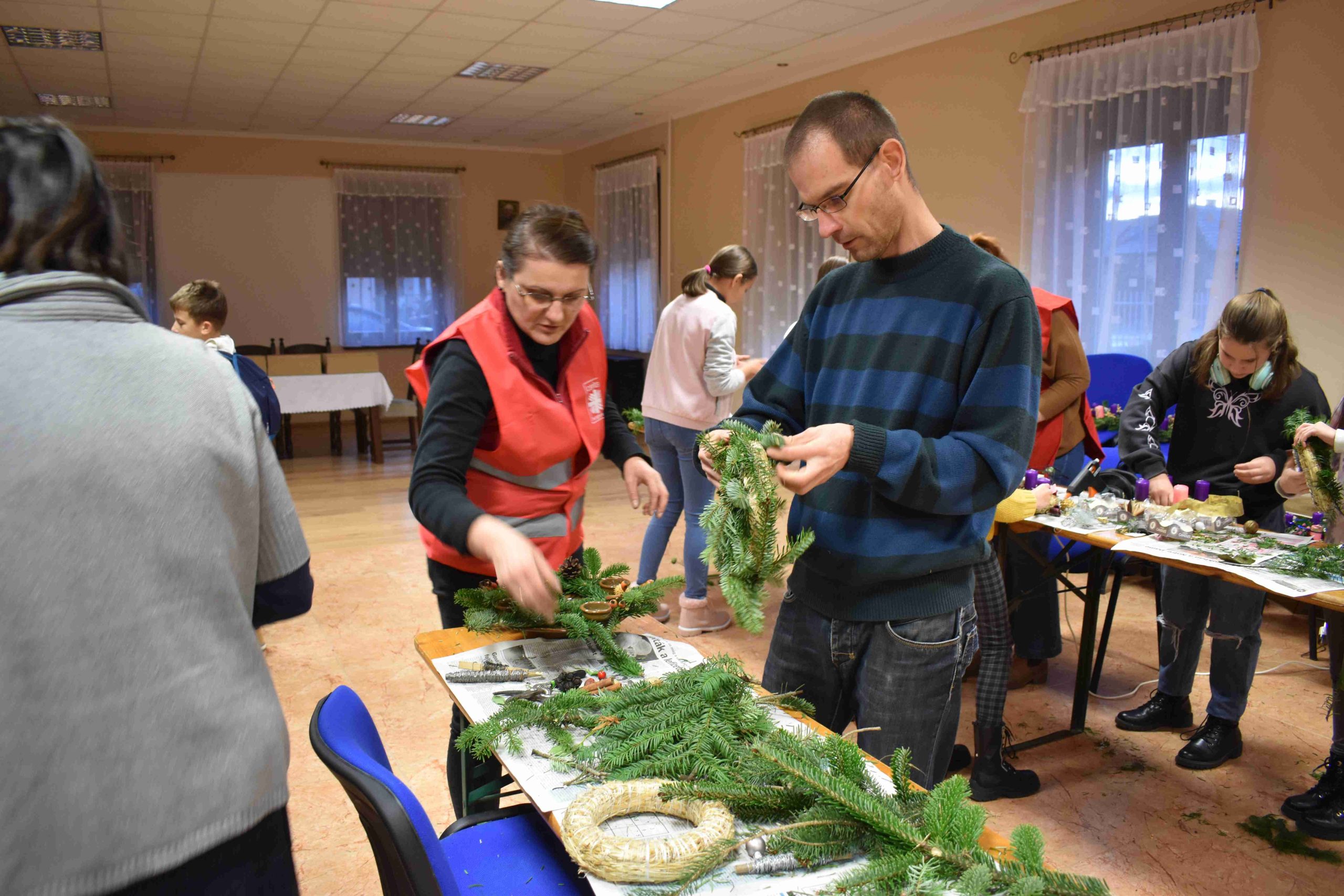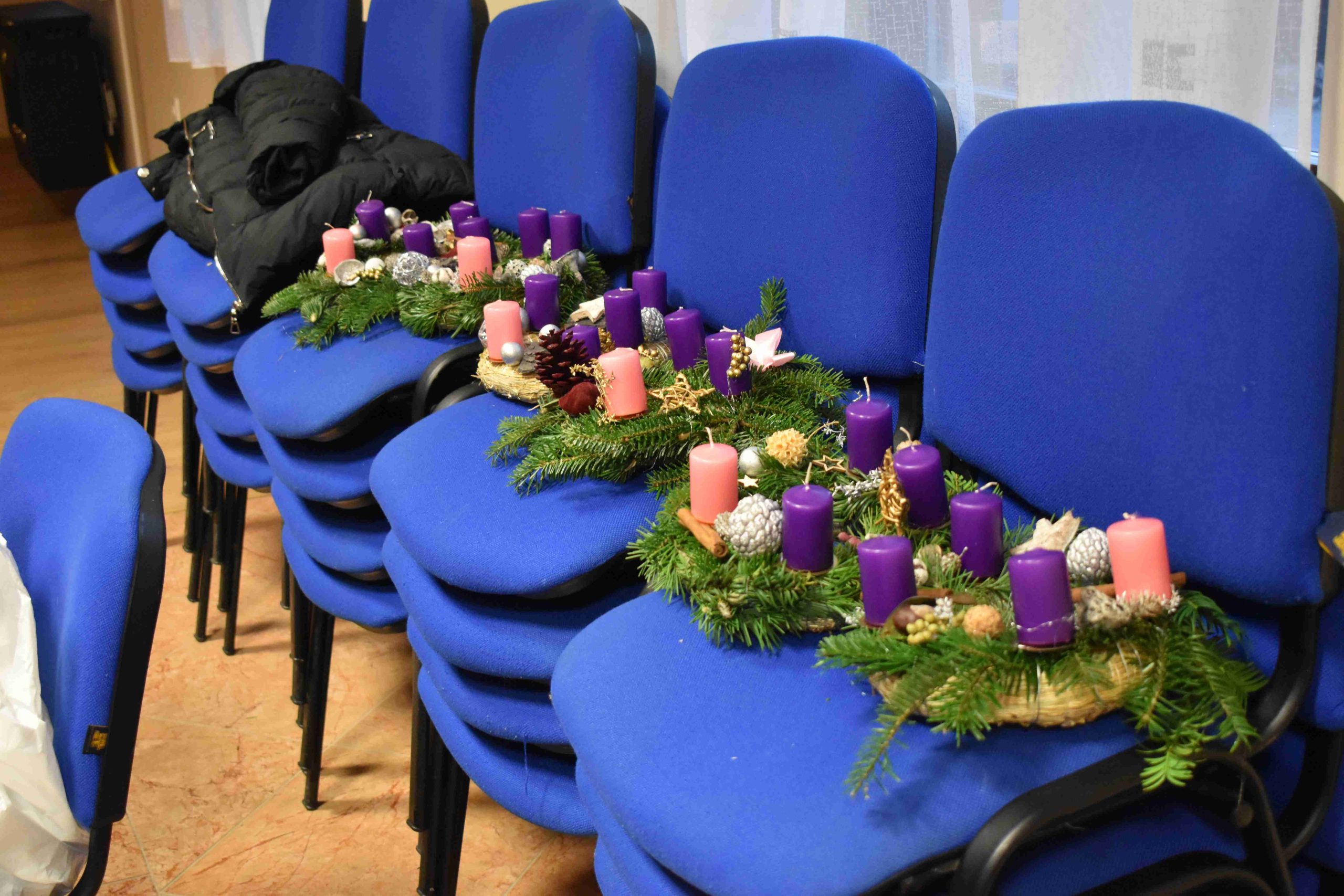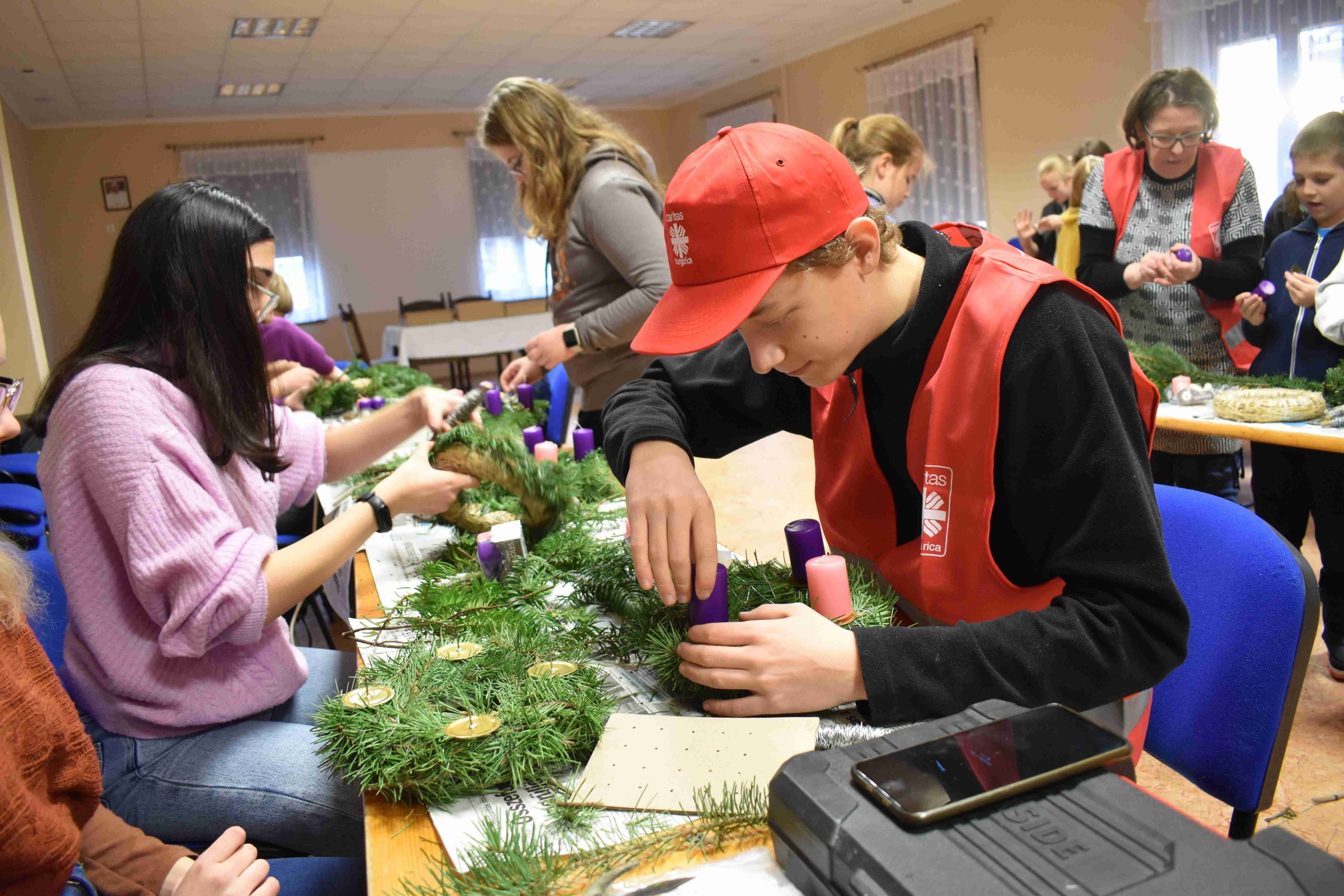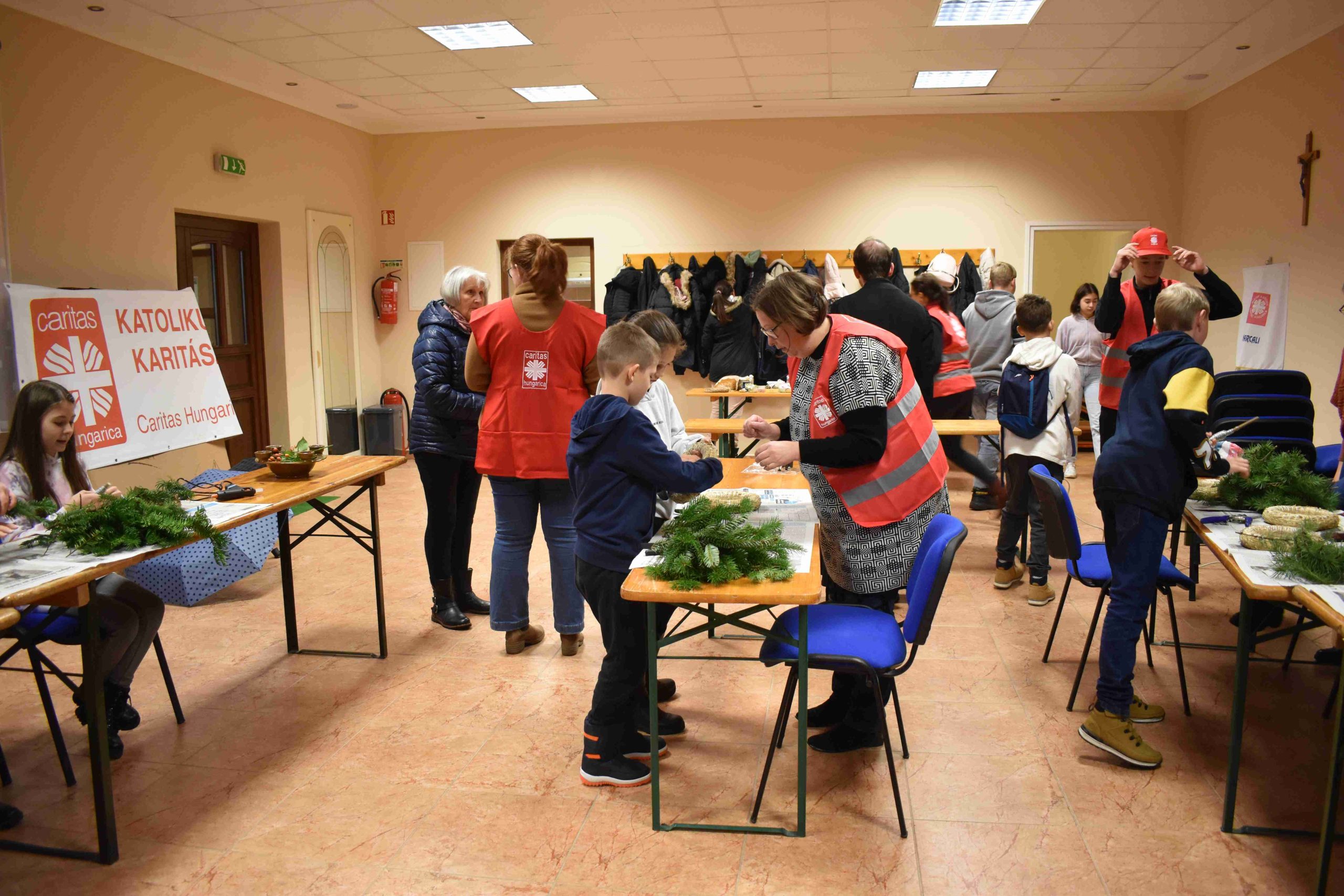 2023. december 2-án, szombaton, délután 14.30 órától az X-ház (Dózsa u. 3.) nagytermébe ádventi koszorúkészítésre hívták a hittanos diákokat a karácsonyra való előkészület részeként.