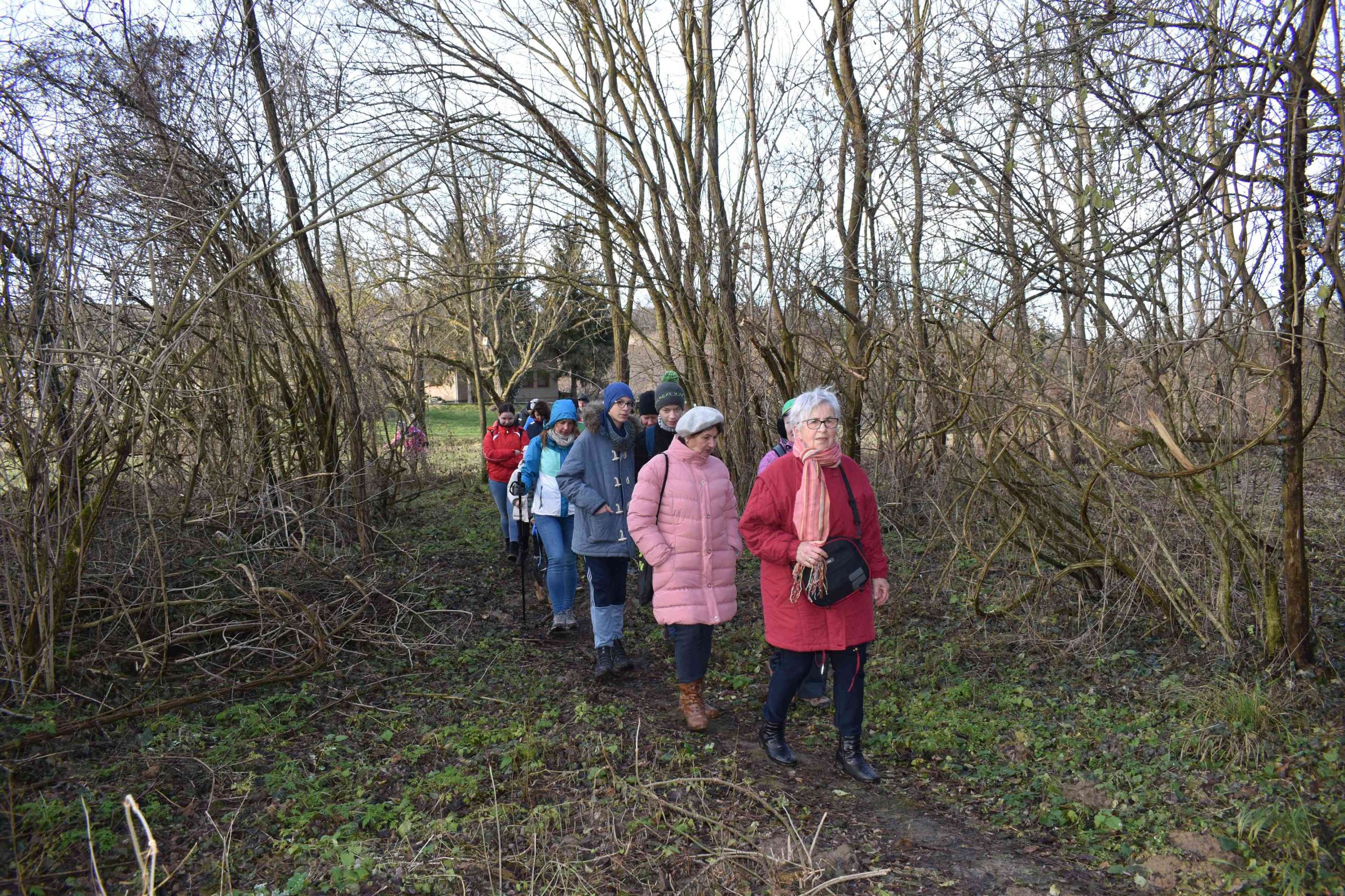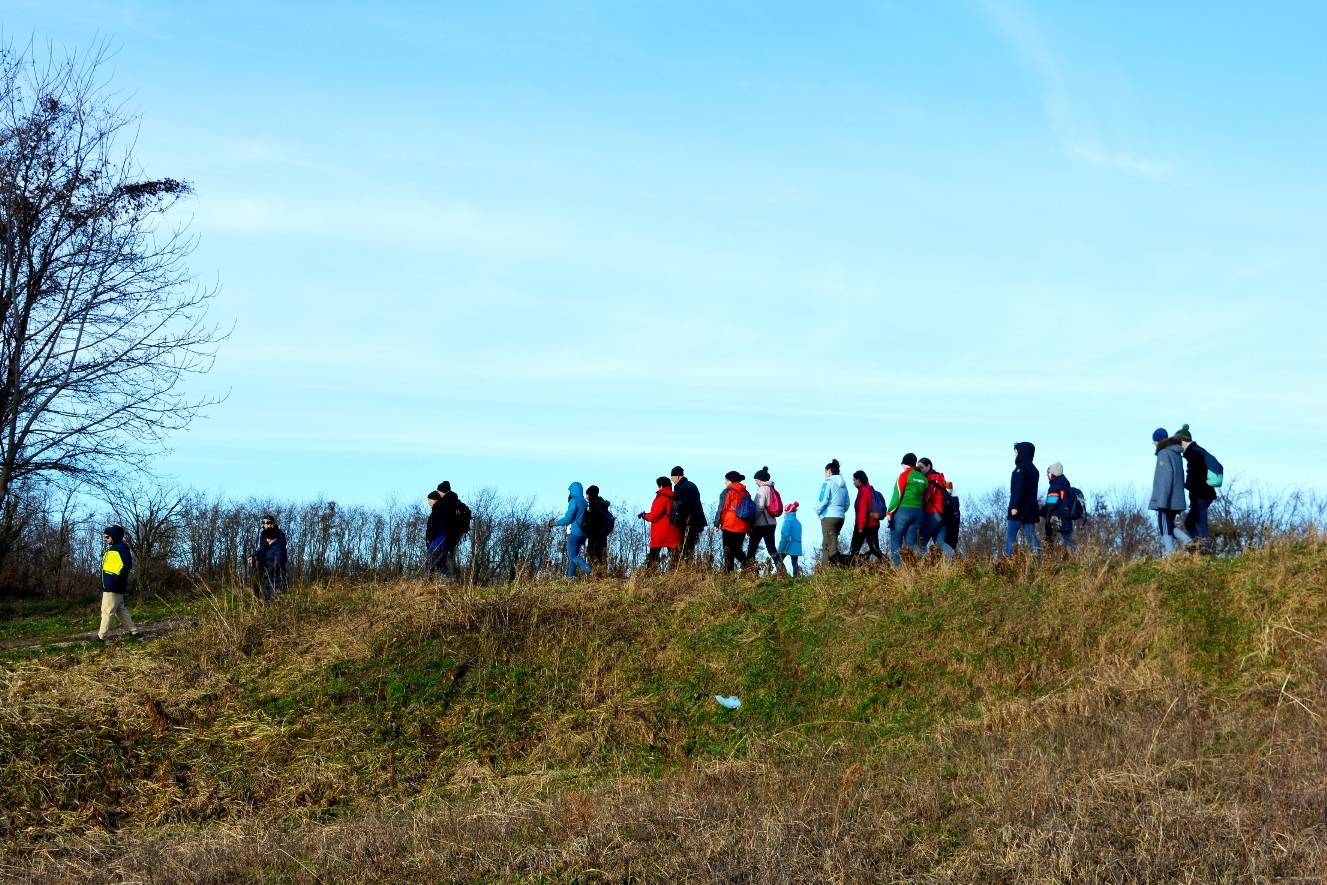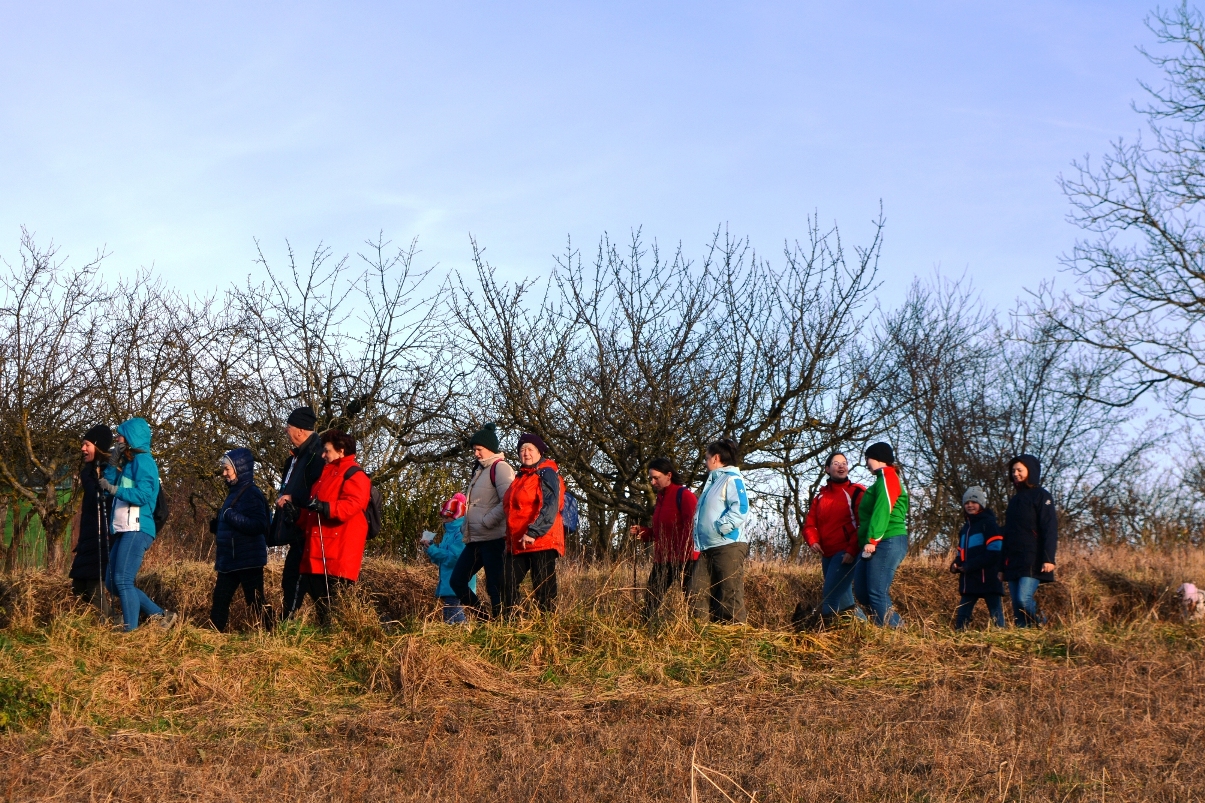 Közel félszáz elszánt természetbarát gyűlt össze a Boldog Gizella templom parkolójában Újév délutánján és útközben is többen csatlakoztak hozzánk. Néhányan hozták magukkal a szilveszteri őrület után szabadba vágyó négylábú társaikat is.