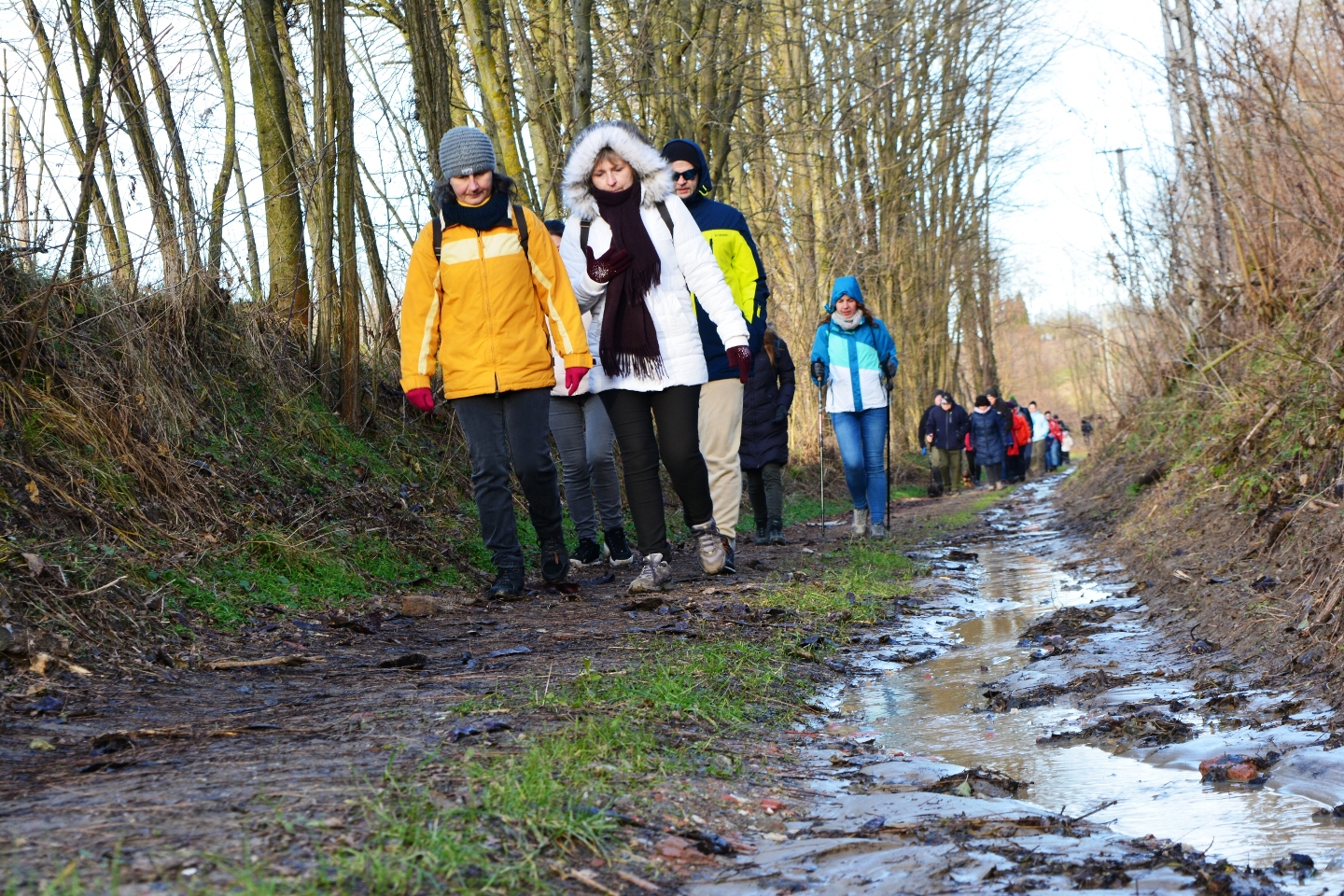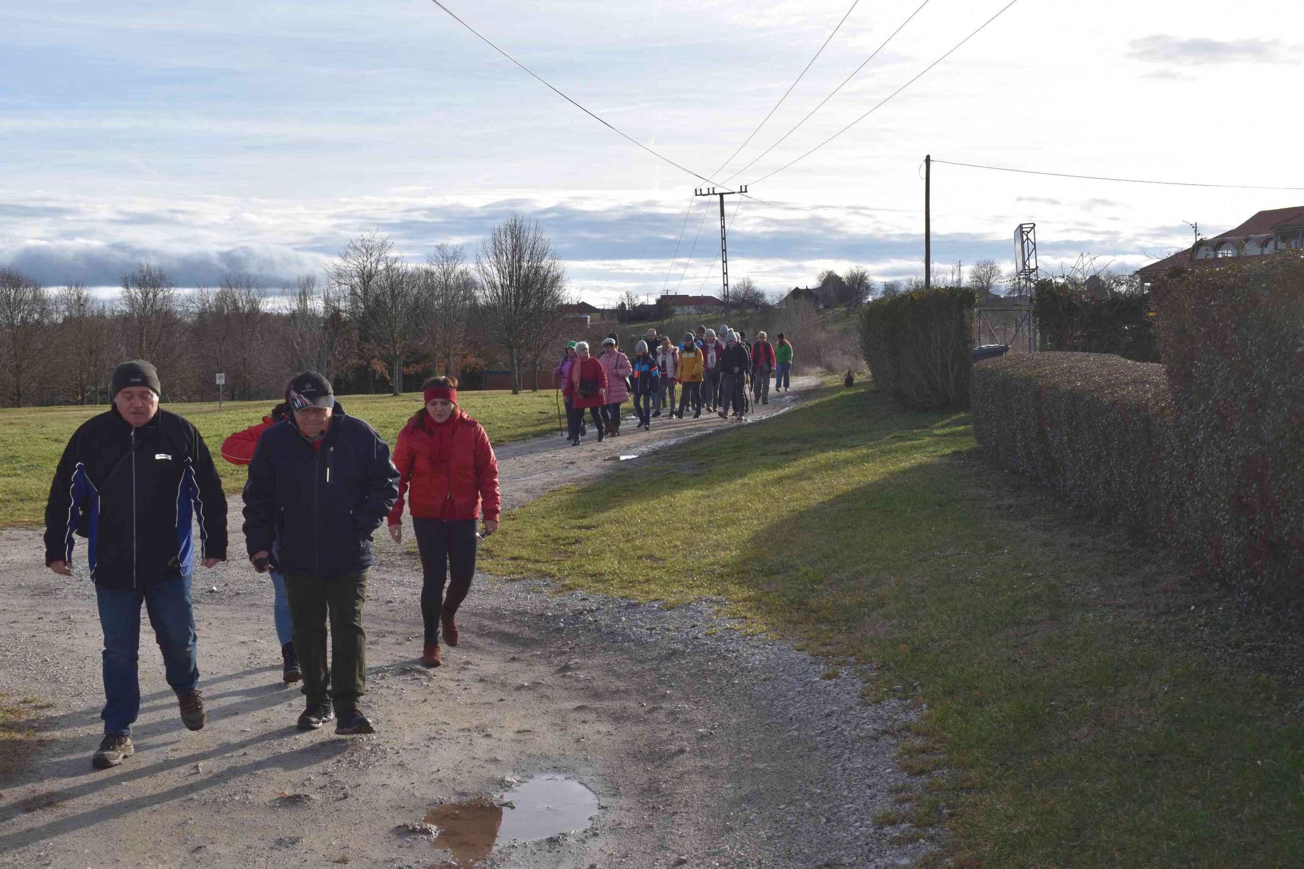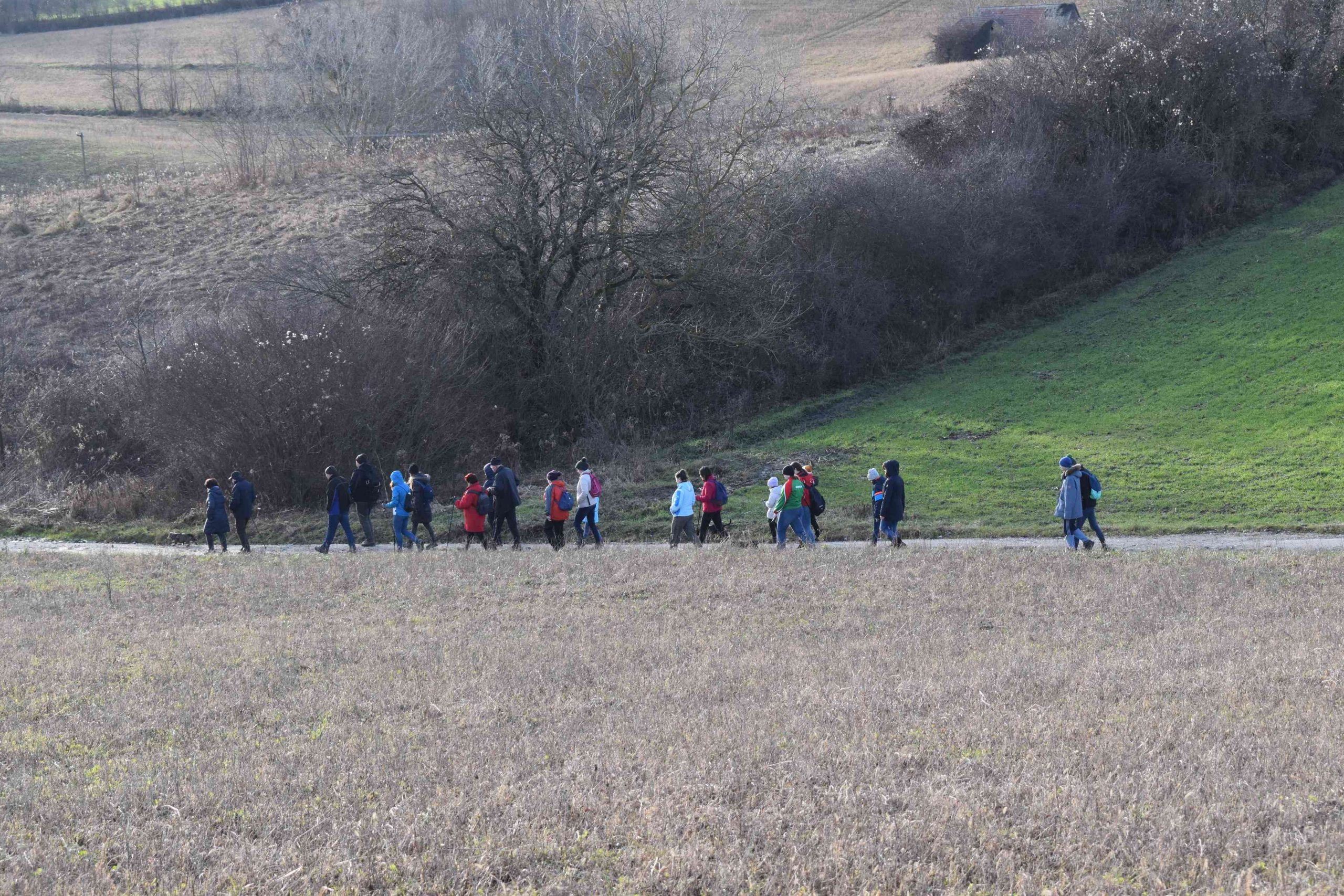 Közel félszáz elszánt természetbarát gyűlt össze a Boldog Gizella templom parkolójában Újév délutánján és útközben is többen csatlakoztak hozzánk. Néhányan hozták magukkal a szilveszteri őrület után szabadba vágyó négylábú társaikat is.