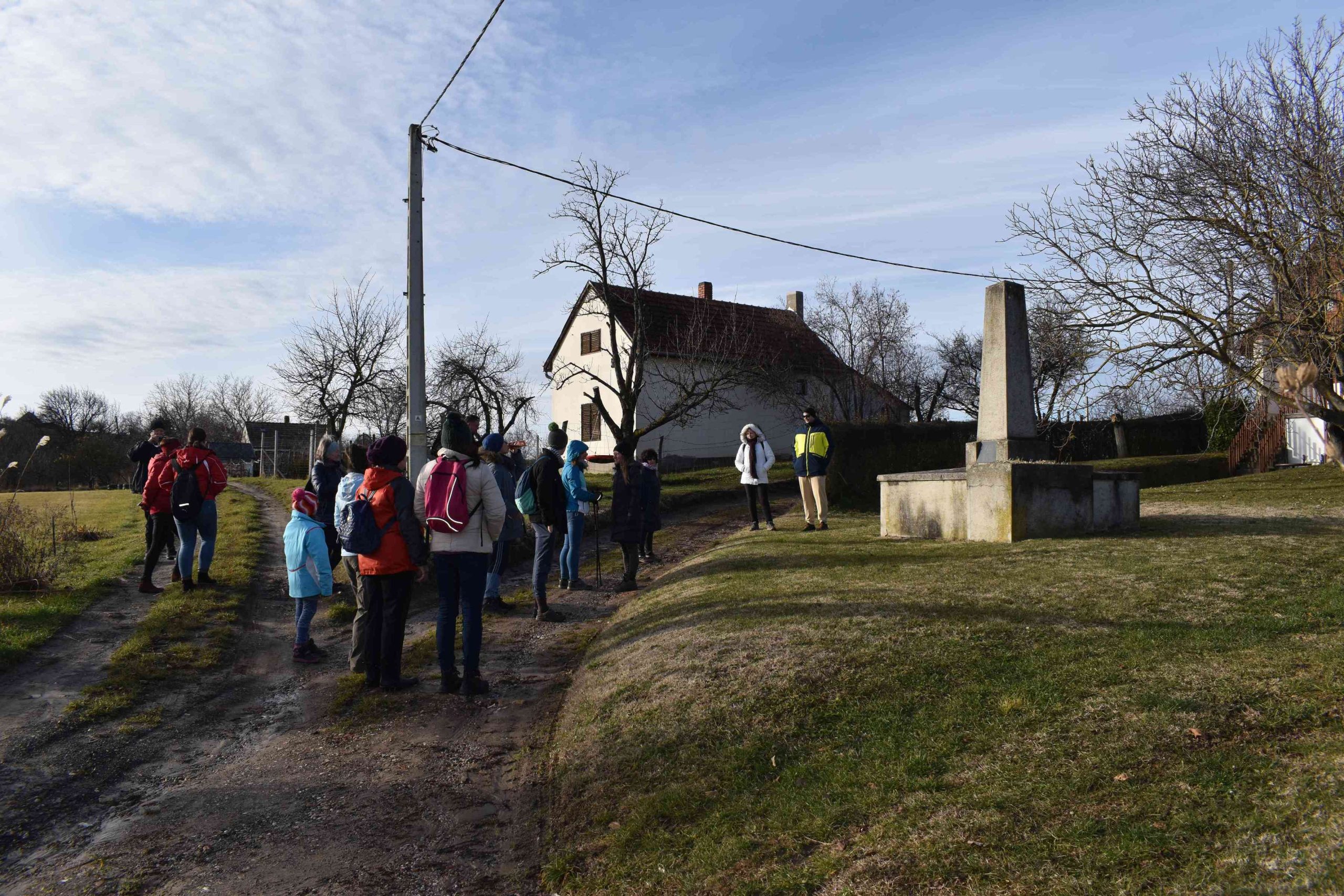 6 km gyaloglást terveztünk, a szőlőhegy frekventált, lakott (így jól járható utakkal ellátott) területein és többek által ismeretlen tájakon keresztül.Hagyományos újévi túránk célja a Berzsenyi-obeliszk és az újjáépített Sóhajok-hídja felkeresése volt – és persze az, hogy a résztvevők jókat tudjanak beszélgetni.