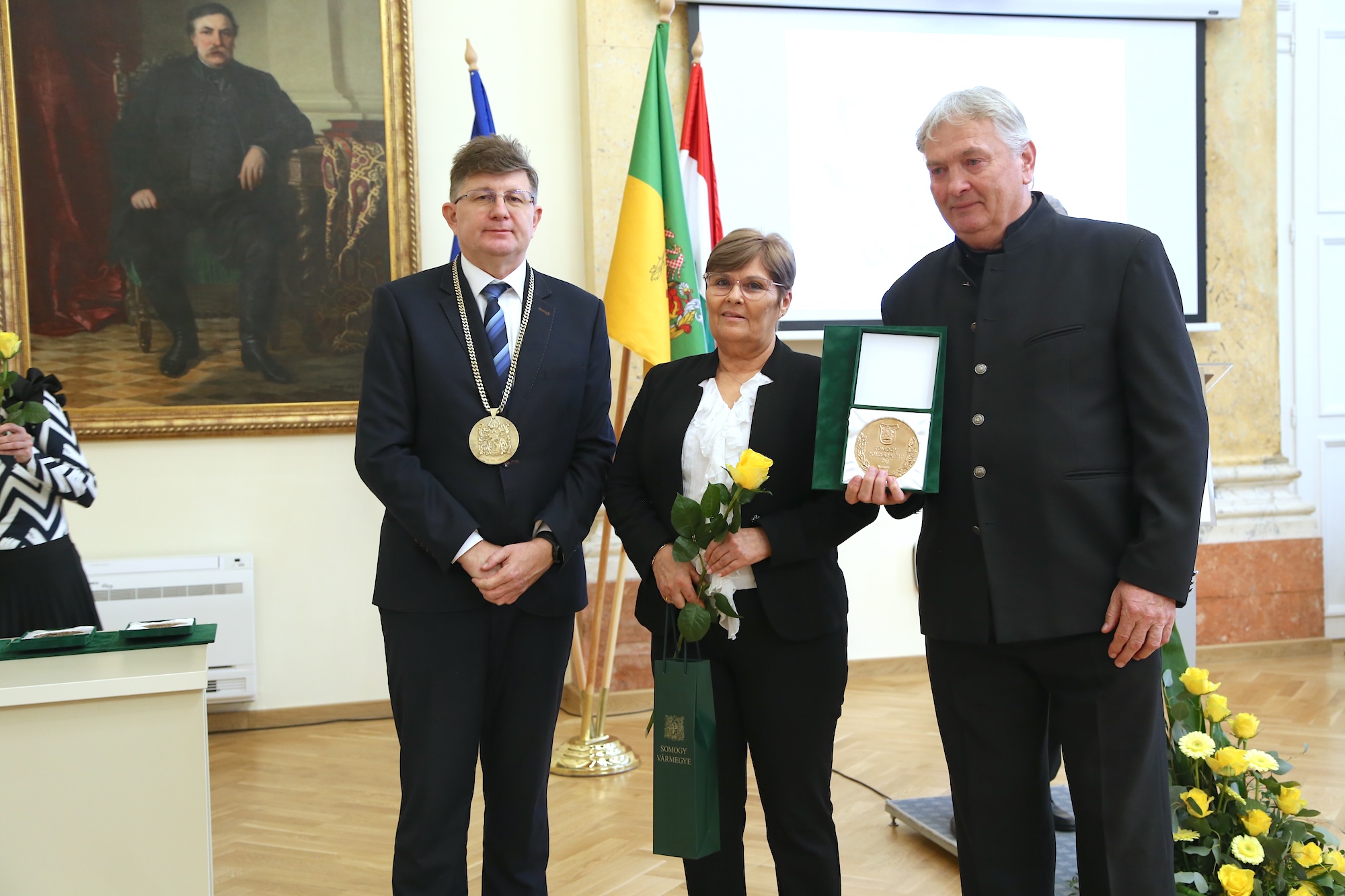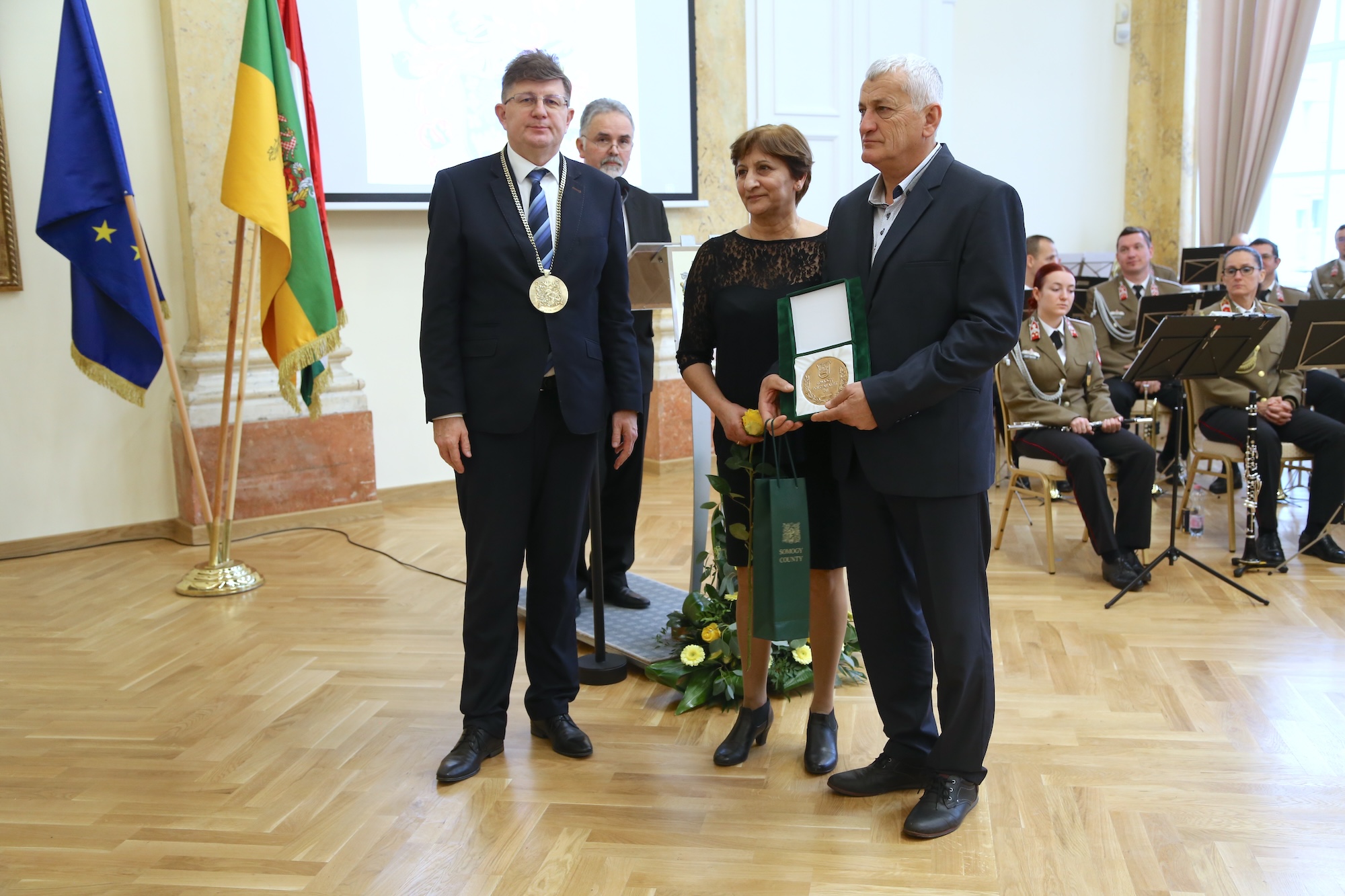 Az ünnepi beszédeket követően került sor az elismerő címek átadására. A Somogy Vármegyei Közgyűlés azon személyek és kollektívák elismerésére, akik kiemelkedő tevékenységükkel a vármegye fejlődését szolgálták, illetve munkájukkal kimagasló érdemeket szereztek, elismeréseket alapított. A Somogy Vármegyei Közgyűlés 2023 szeptemberi döntése értelmében a vármegye legmagasabb szintű elismerését, Pro Comitatu Somogy kitüntetést adományozott Prof. Dr. Szakály Sándornak, a VERITAS Történetkutató Intézet és Levéltár főigazgatójának. Somogy Polgáraiért Díjjal ismerte el Bodó László, a „KÖTÉL” Kaposvári Önkéntes Tűzoltó és Életmentő Egyesület elnöke, Dr. Puskásné dr. Brigovácz Anna Éva, a Somogy Vármegyei Kaposi Mór Oktató Kórház nyugalmazott osztályvezető főorvosa, Gádor Dénes Lajos nyugalmazott borász, Prof. Dr. Gyuricza Csaba, a Magyar Agrár- és Élettudományi Egyetem rektora, Marcali Bajtársi Egyesület Dalárdája, Mestyán Valéria, a Balatonkeresztúri Közös Önkormányzati Hivatal címzetes főjegyzője, Neisz Péter Ferenc nyugalmazott tanár, Németh Kornél, a balatonszemesi Danuvia 125 Sport és Közösségfejlesztő Egyesület elnöke, Pintér László József, a Siófoki Férfi Dalkör Egylet elnöke, Spanics Ágnes nyugalmazott somogyszobi pedagógus és Wéber Antal tűzoltó dandártábornok, a Somogy Vármegyei Katasztrófavédelmi Igazgatóság nyugalmazott igazgatója tevékenységét.