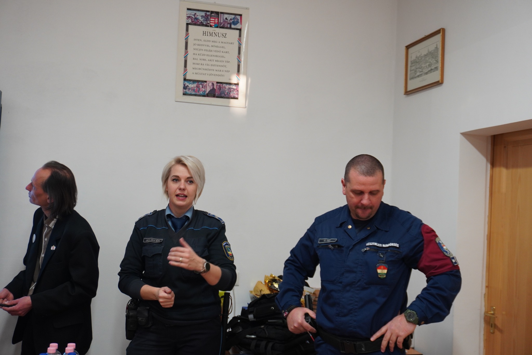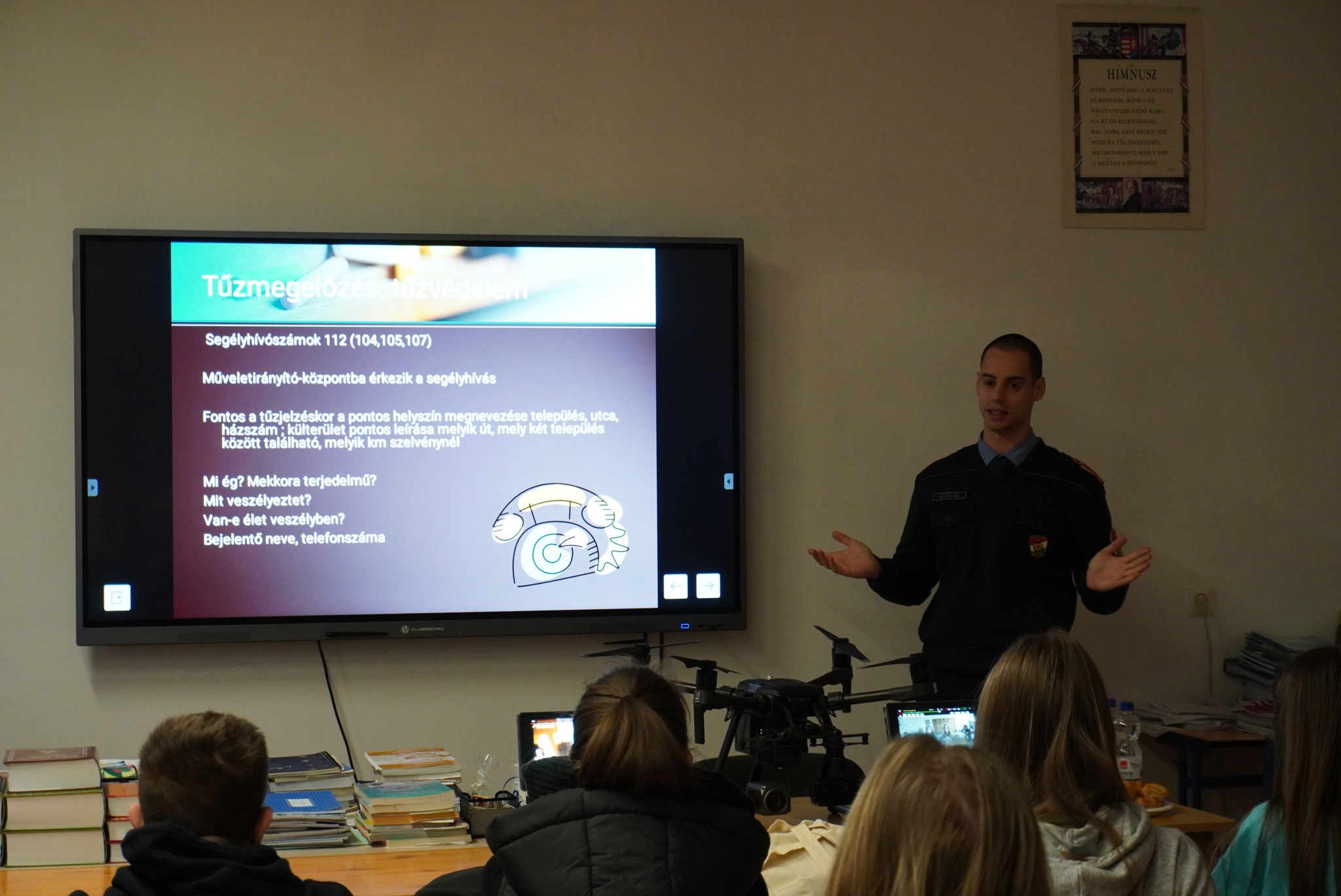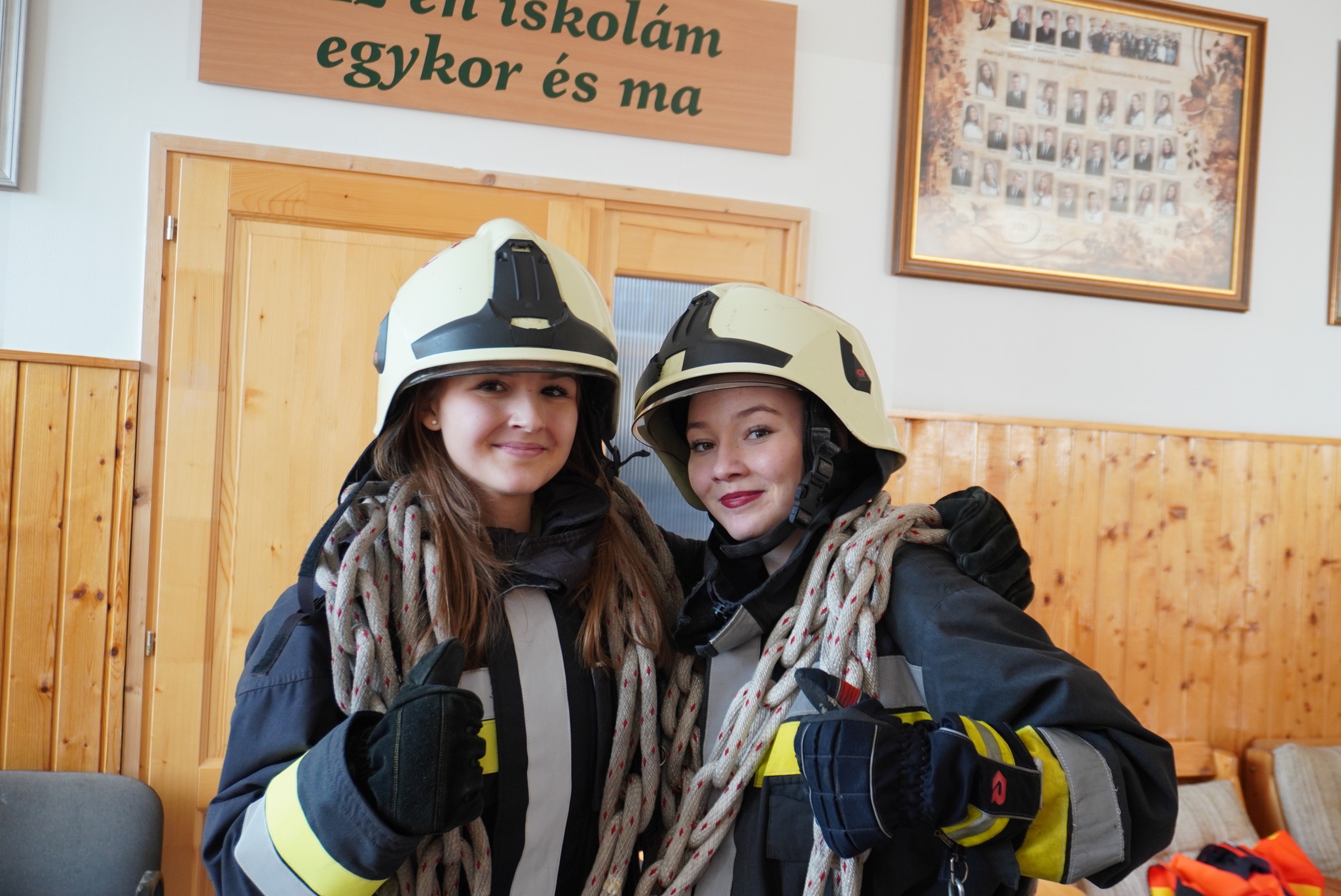 A katasztrófavédők az elméleti ismeretek átadása és a közösségi szolgálati lehetőségek bemutatása mellett beöltöztettek tanulókat és pedagógusokat egyaránt a tűzoltók védőruháiba, rögtönzött lépcsőfutási versenyeket szerveztek a felszerelést magukra próbálóknak és bemutatták az eszköztáruk könnyen mobilizálható részét.