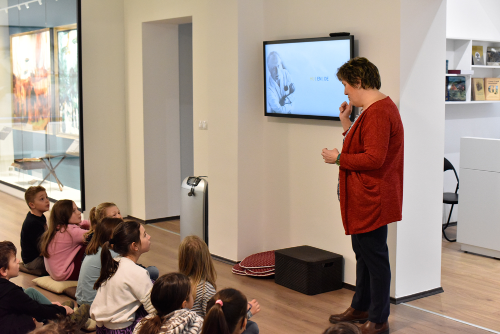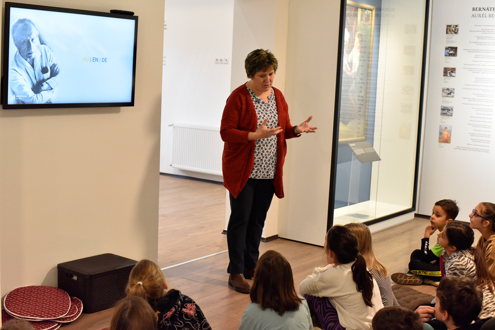 A csoportot Samuné Bogyó Hajnalka múzeumpedagógiai szaktanácsadó várta a galéria parkjában. A marcali születésű, Kossuth-díjas festőművész azon a telken született, ahol jelenleg a róla elnevezett épület áll, így elsőként ehhez kapcsolódóan hallhattak a gyerekek néhány gondolatot. A foglalkozás során a földszinti termekben lévő festményekkel ismerkedhettek meg, miközben helytörténeti és a művész életéhez kapcsolódó érdekességek is szóba kerültek. A kiállítás további egységeiben a Bernáth családdal és a Schusztek-villa (jelenleg Bernáth Aurél Galéria) építtetőivelkapcsolatos információkat is hallhattak a diákok.Film, rejtvények és páros feladatok is színesítették a foglalkozást.
