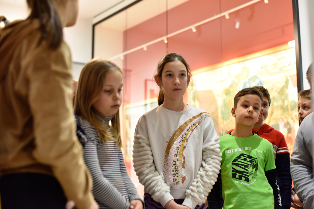 A Marcali Múzeum megújult állandó kiállításában, a Bernáth Aurél Galériában tett látogatást a Noszlopy iskola harmadikas osztálya tanítóik, Igaz Ferencné és Tóth Róbert vezetésével.