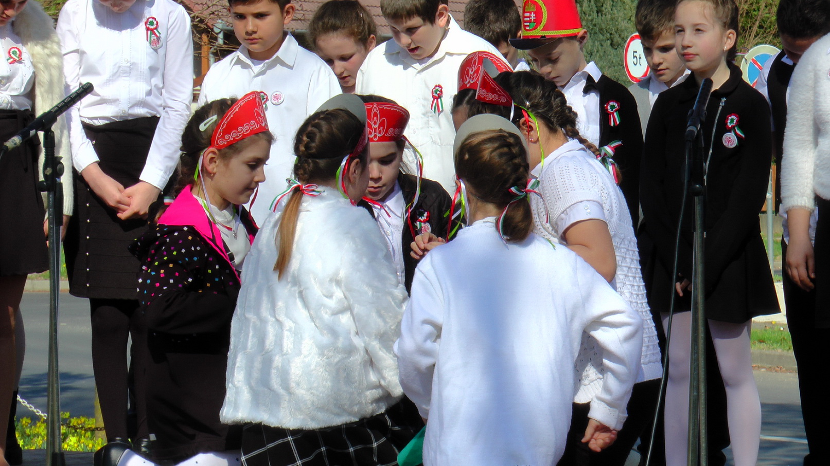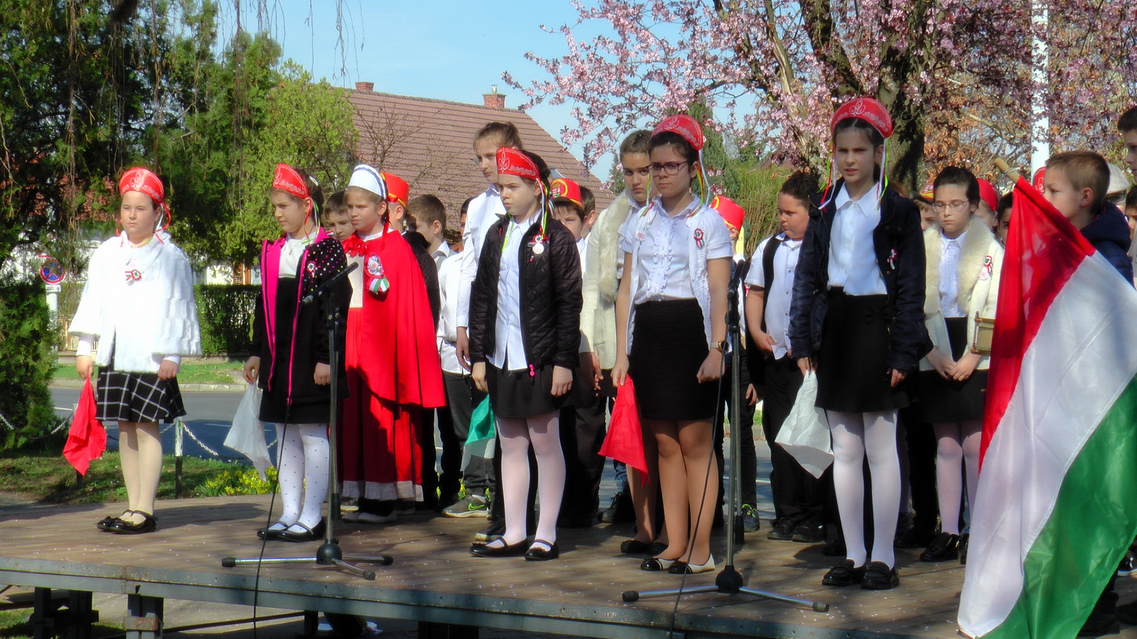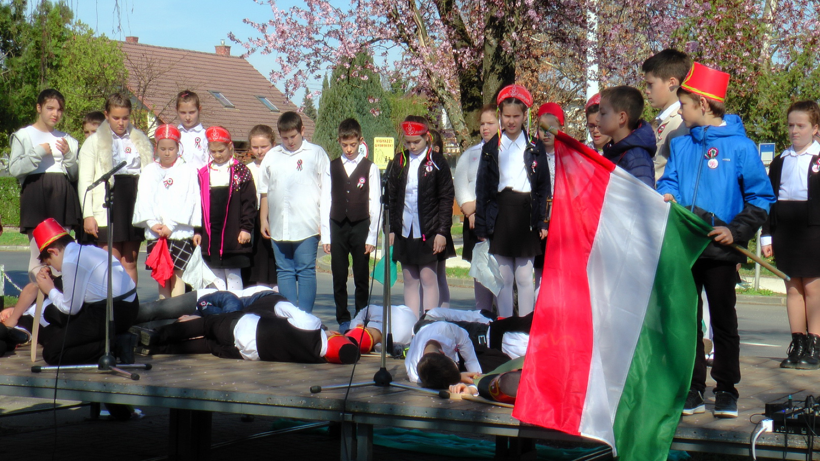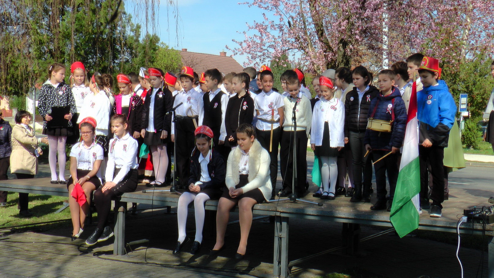 A megemlékezés 10 órakor vette kezdetét a Himnusz közös eléneklésével majd az ünnepi műsort ez évben a Mikszáth Kálmán Általános Iskola diákjai adták elő.