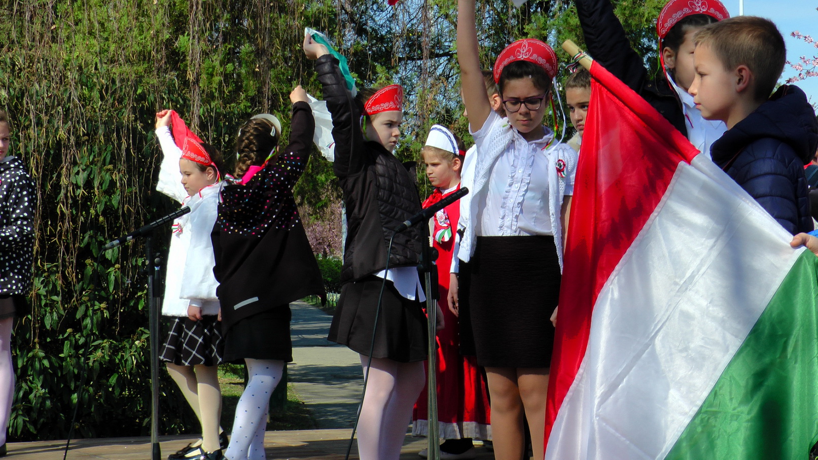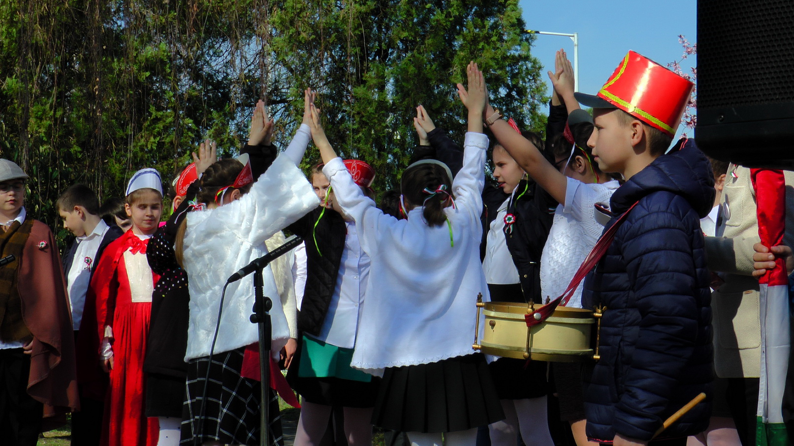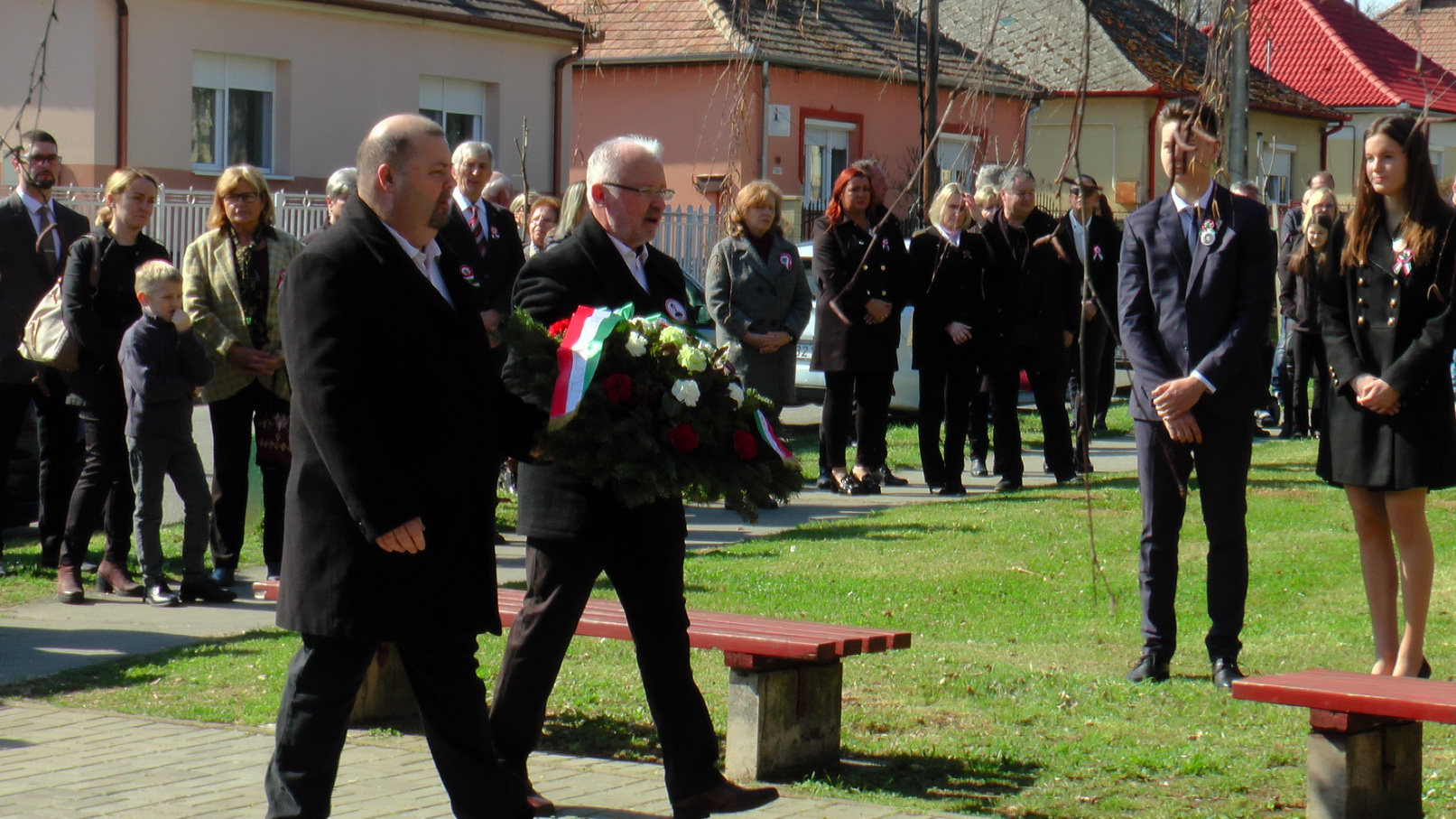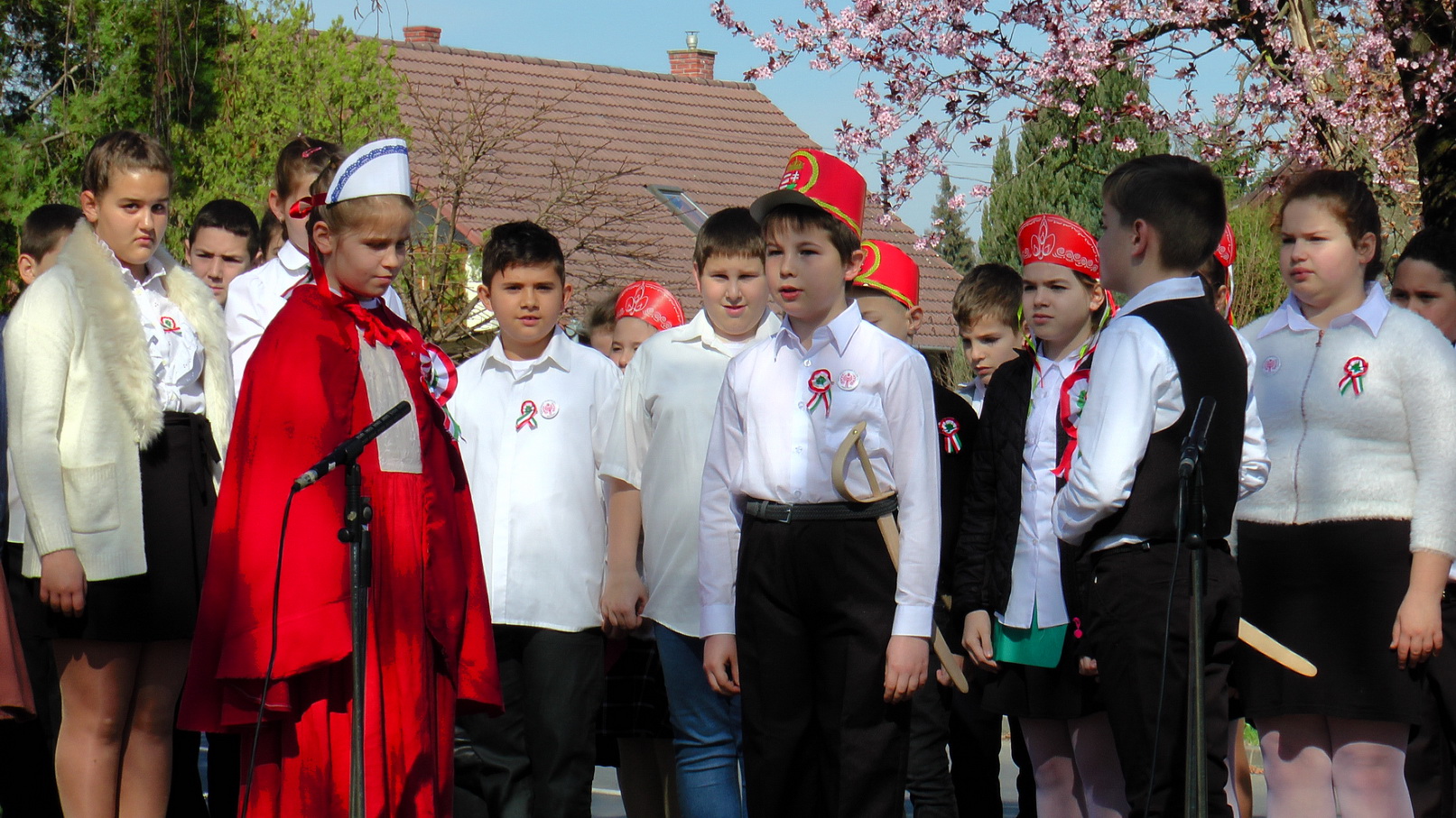 A megemlékezés 10 órakor vette kezdetét a Himnusz közös eléneklésével majd az ünnepi műsort ez évben a Mikszáth Kálmán Általános Iskola diákjai adták elő.