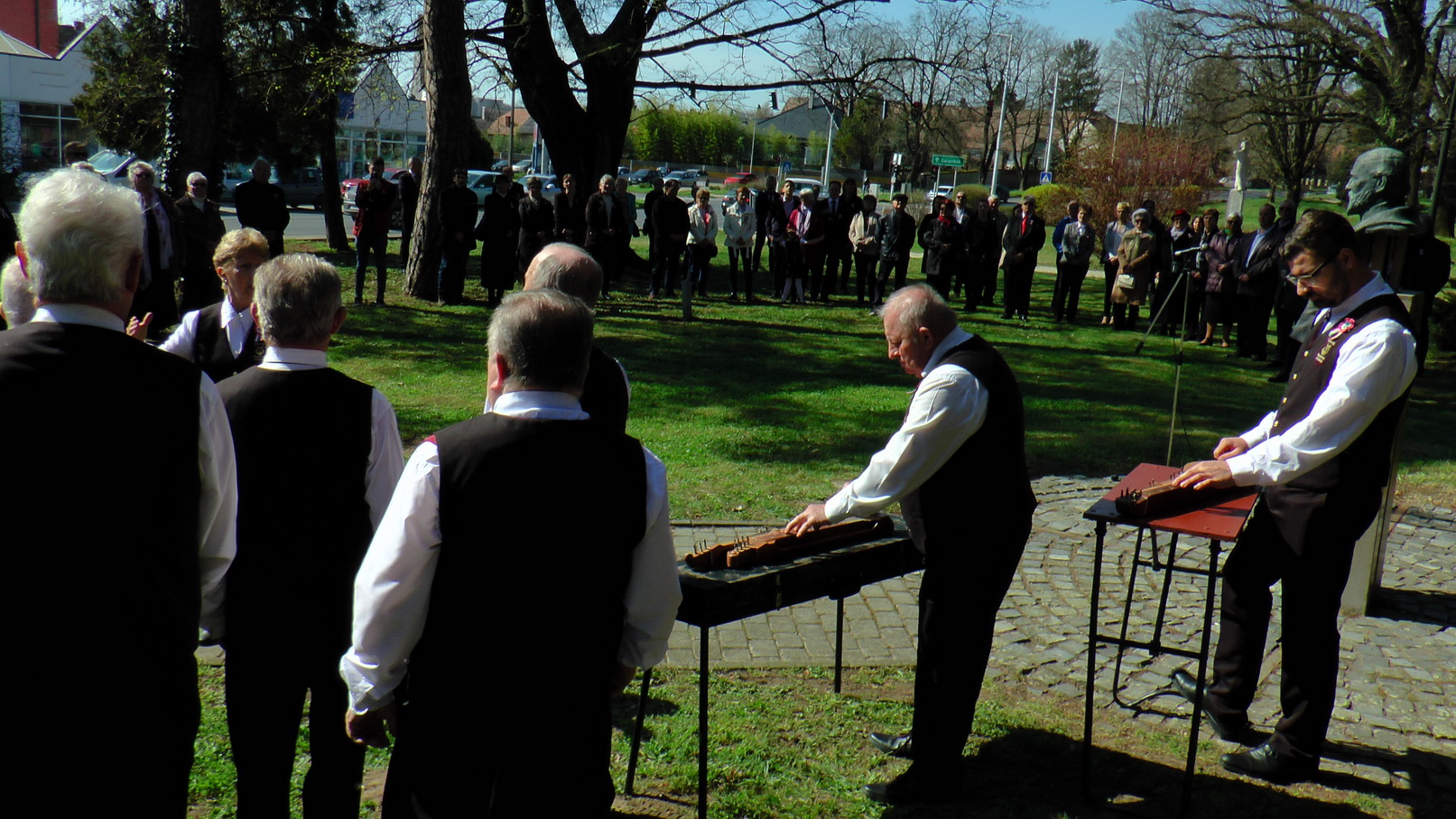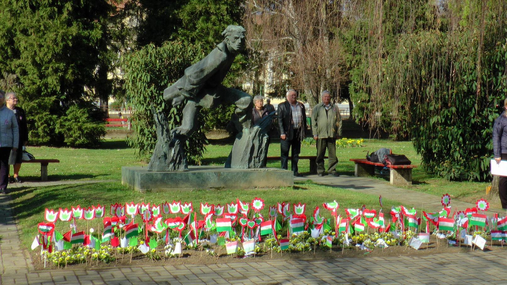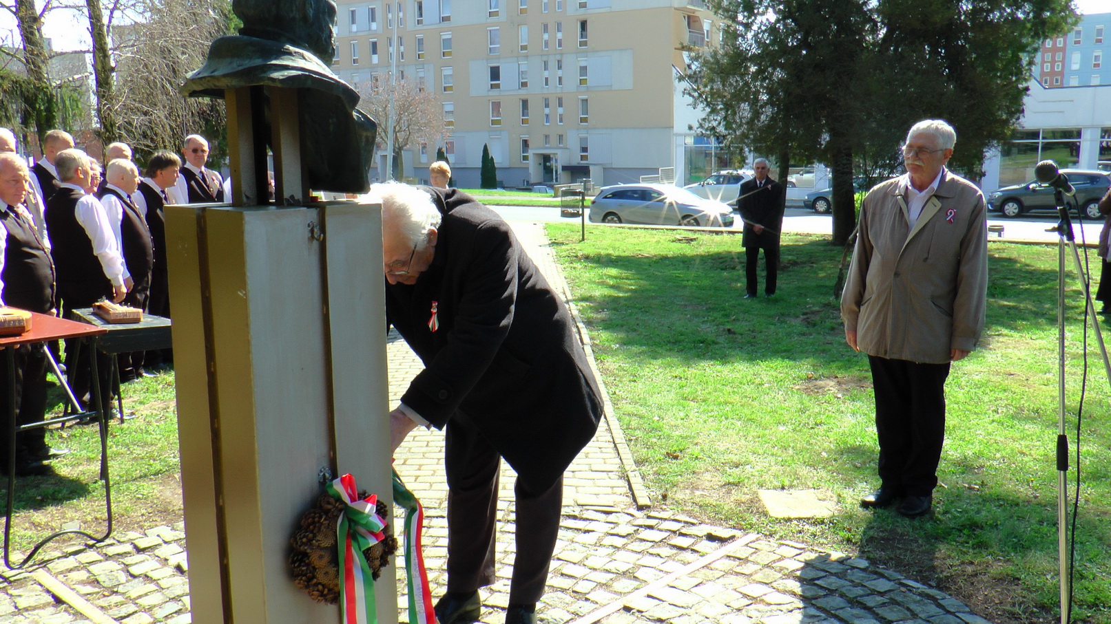 A városi ünnepség a Széchenyi parkban folytatódott, ahol Tóth Ágoston szobrát koszorúzták meg a résztvevők. A Bajtársi Dalárda, katonadalokkal idézte fel az 1848-49-es forradalom és szabadságharc eseményeit.