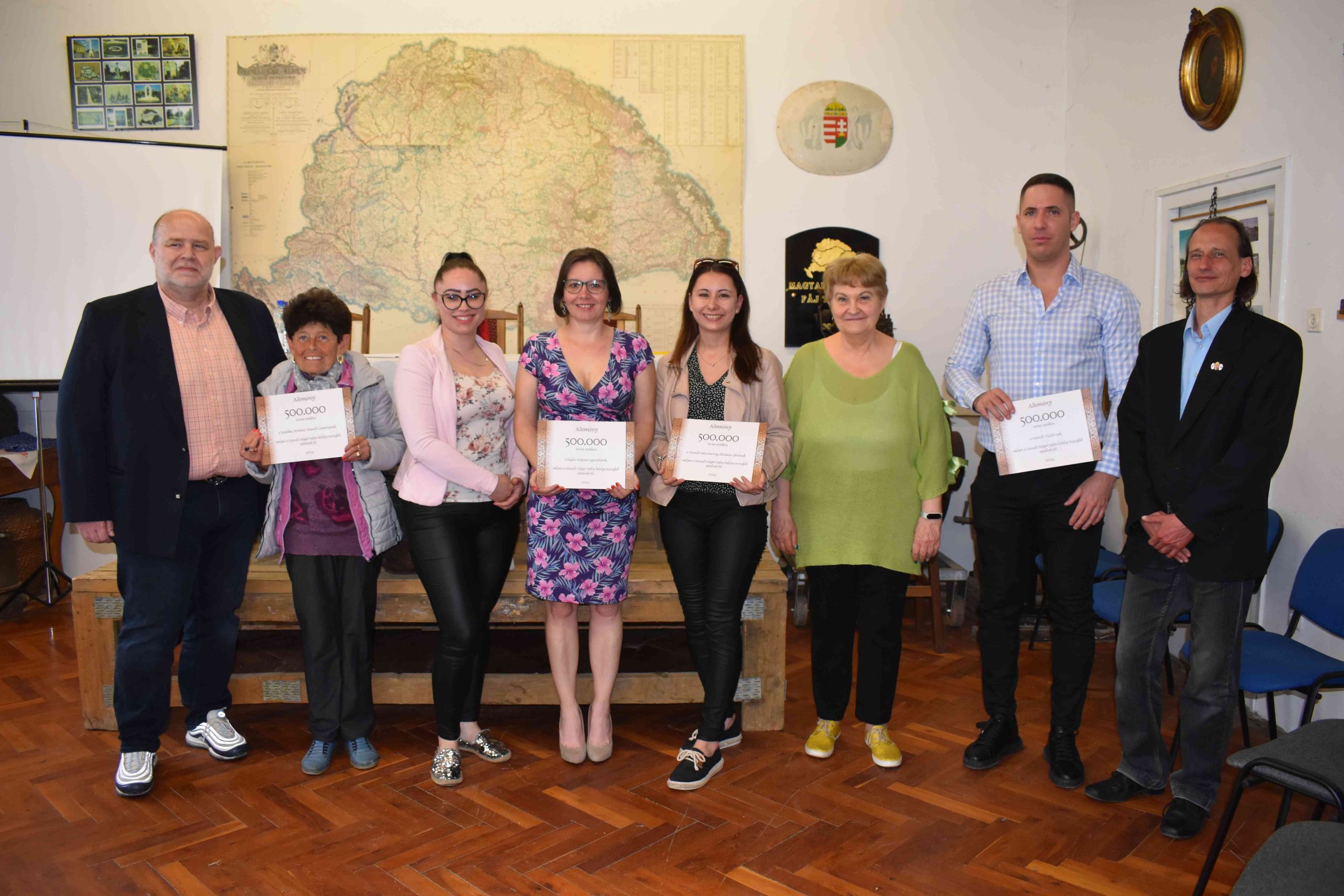 Az egyesület képviseletében Szaka Zsolt elnök, dr. Pozsonyi Márk, vezetőségi tag, polgármester-jelölt, és Ódor Barbara örömmel adták át négy civil szervezetnek az egyenként 500.000-500.000- Ft-os adományt, melyet a 2024. március 23-án megrendezett estély bevételéből gyűlt össze.