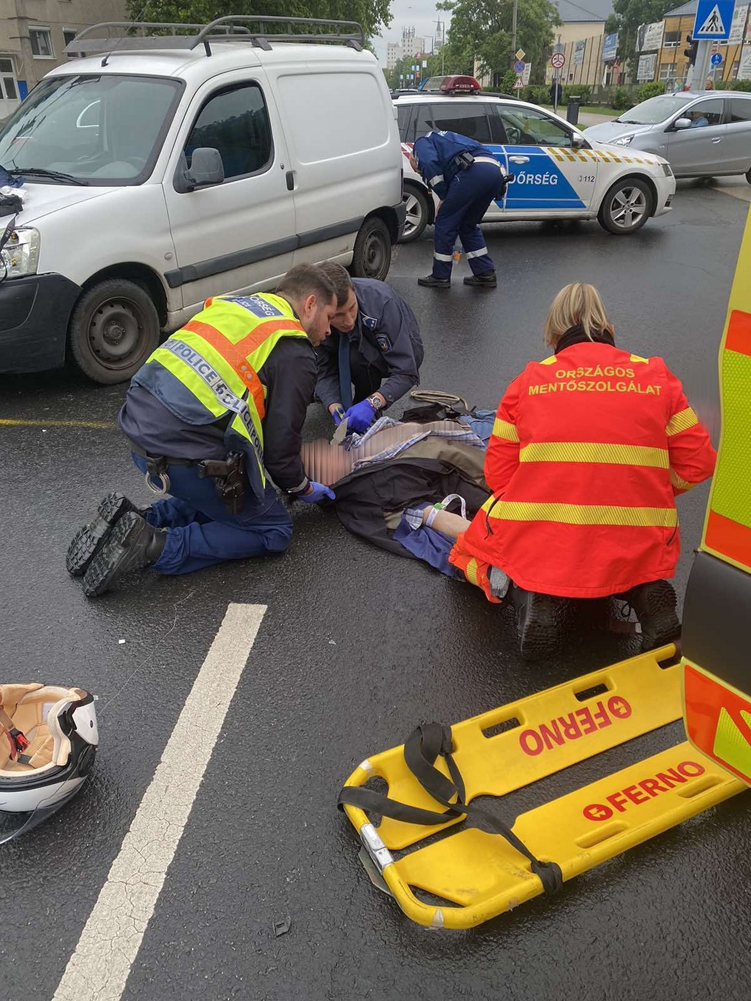 A helyszínre sietett Zergi András r. törzsőrmester is, aki Police Medic képzést végzett és a nyomókötést egy tourniquet-tel váltotta fel, így tudták elállítani a vérzést a mentőszolgálat megérkezéséig.