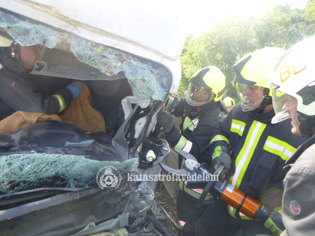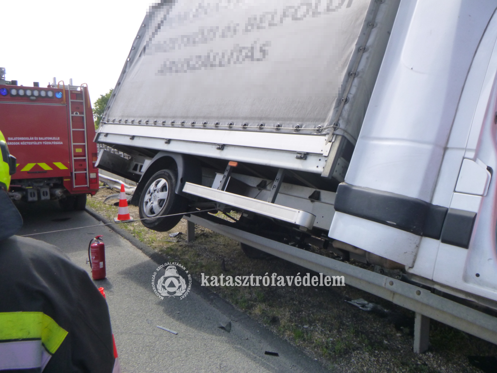 A jármű vezetője az összeroncsolódott autóba szorult, őt a balatonboglári önkormányzati és a marcali hivatásos tűzoltók szabadították ki. Az egységek megtámasztották a kisteherautót és rögzítették, megelőzve, hogy a sérült mentése közben elmozduljon. A sofőrt a mentők kórházba szállították. A mentés idejére teljes szélességében lezárták az autópályát.