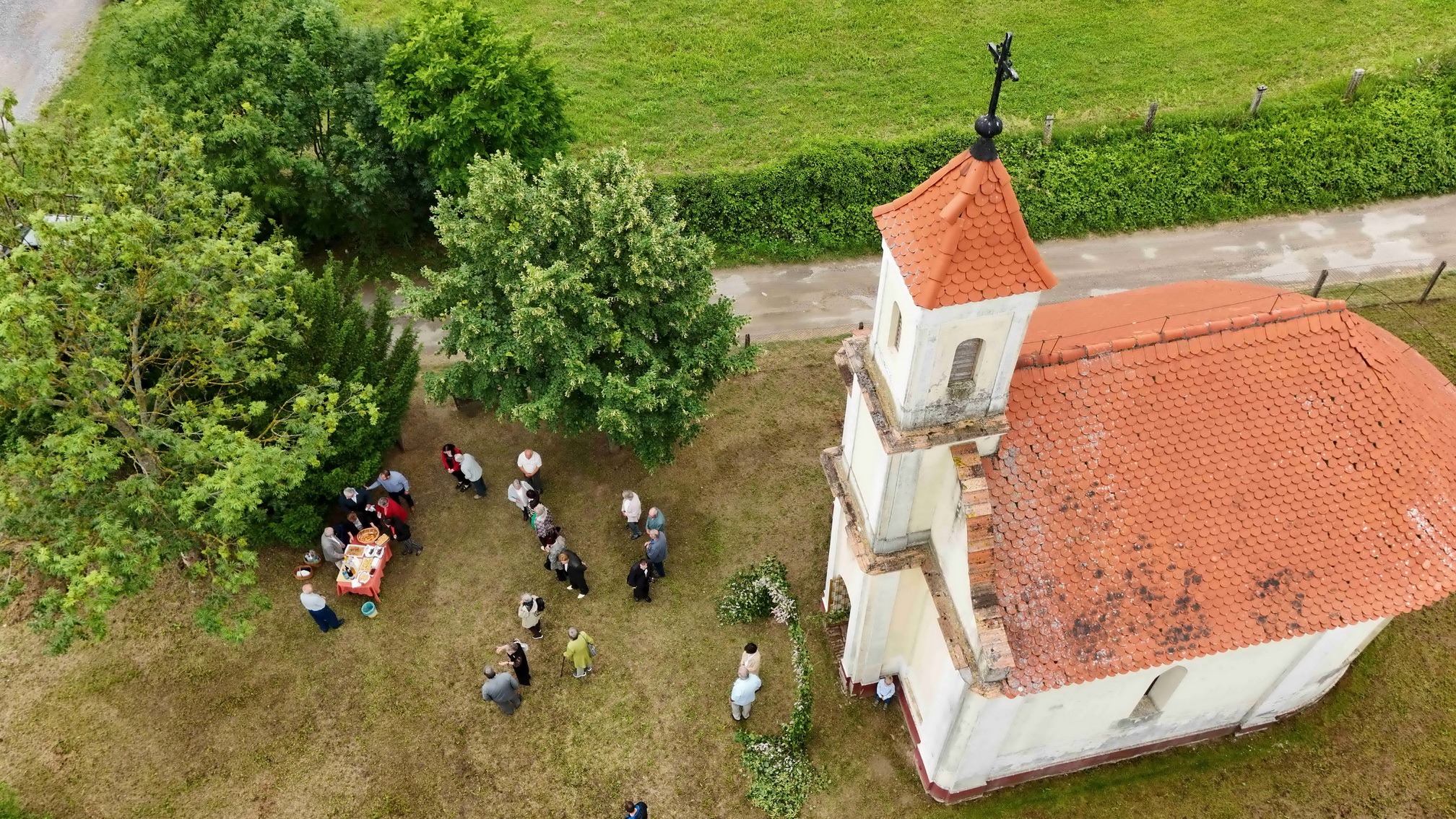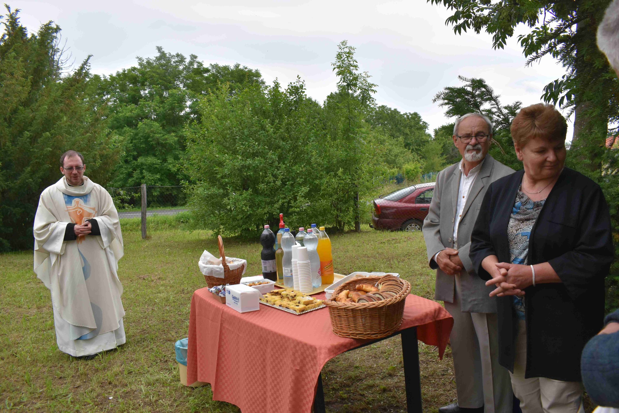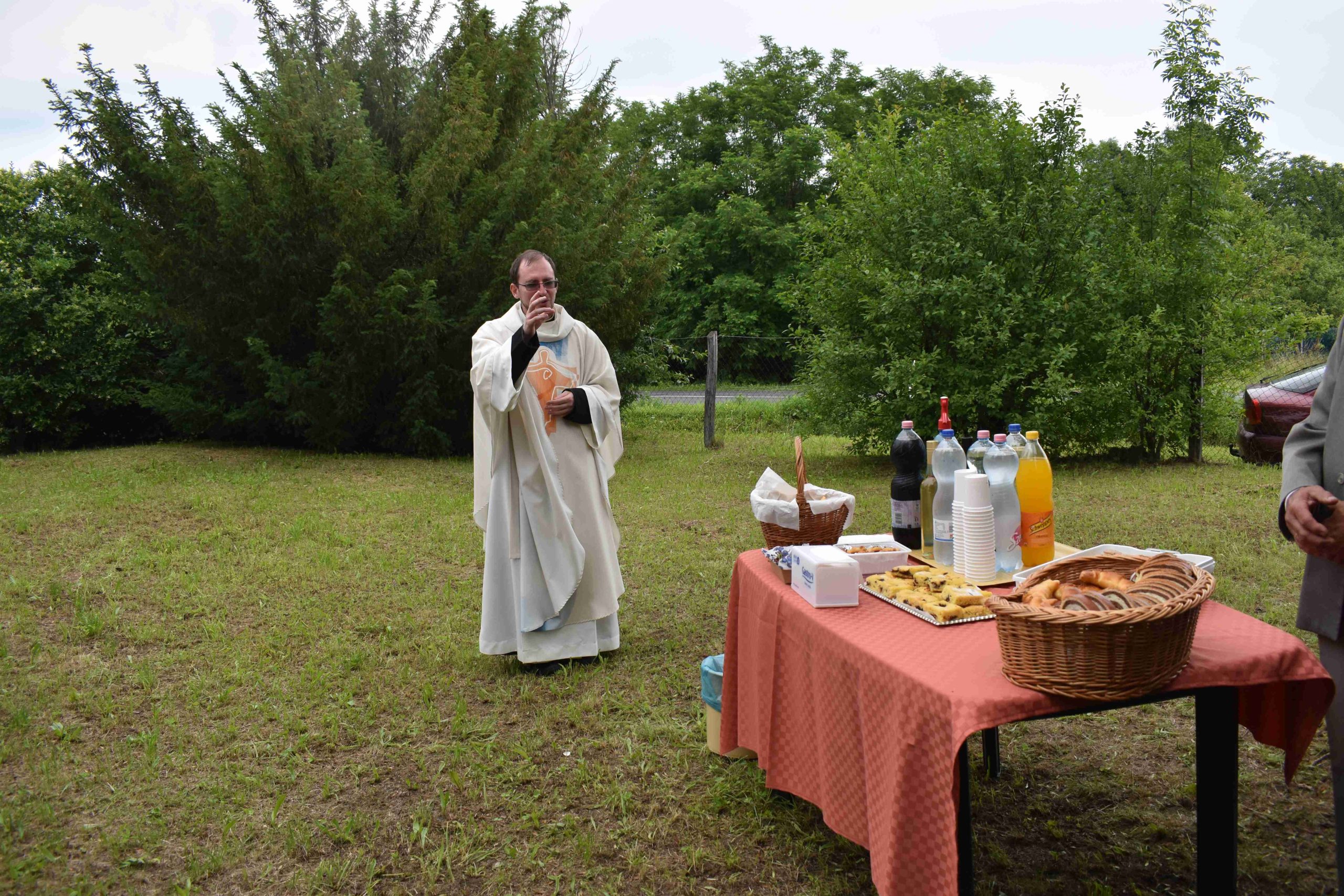 A szentmisét követően Ferenc atya megáldotta a kápolna előtt azokat az ételeket és italokat is, melyet Gelencsér Róbert világi elnök és felesége kínált a résztvevőknek. Az istentiszteleten Balogh Bálint kántor működött közre egyházi énekekkel.